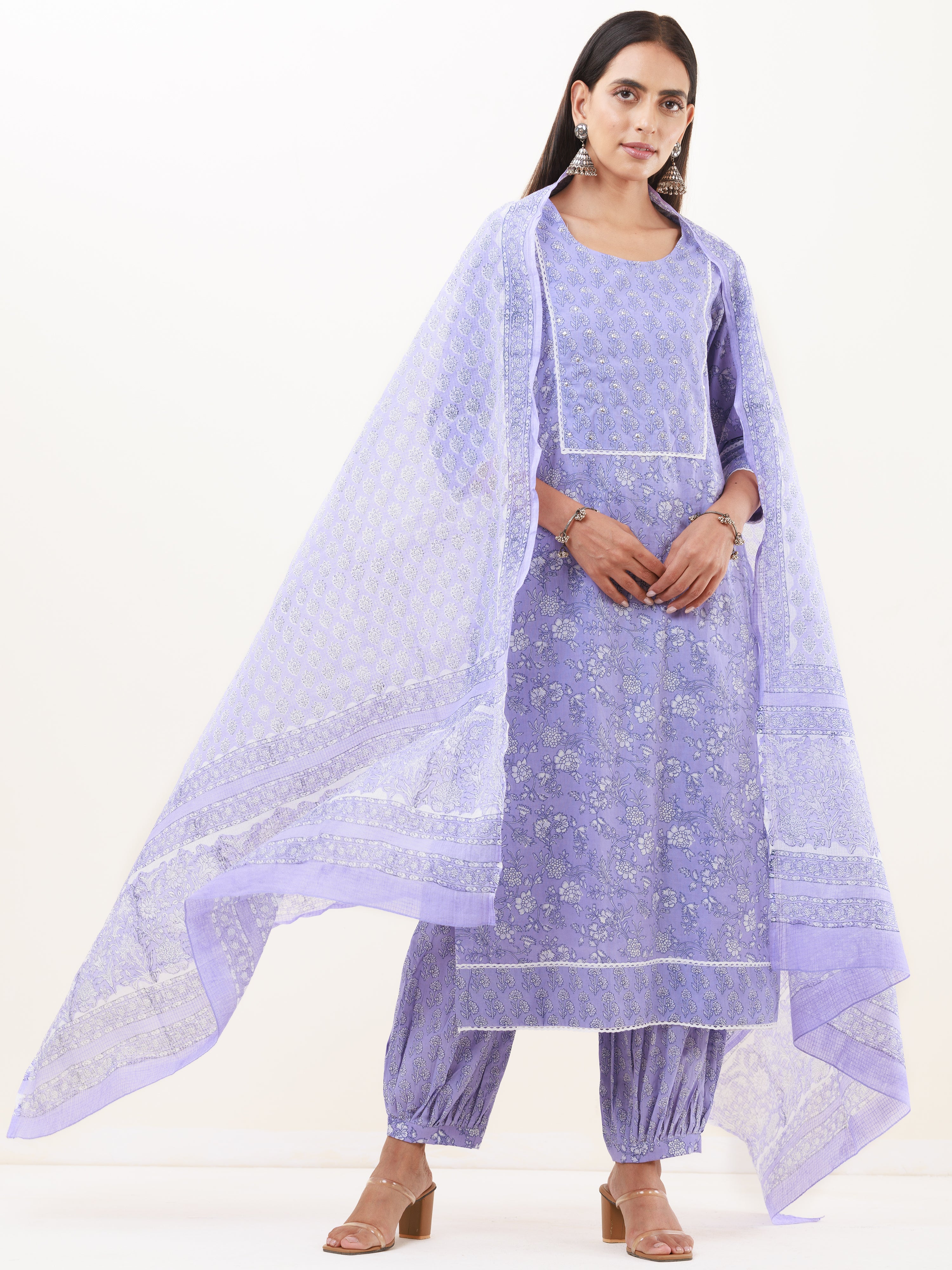 Fabric : Hand Block Printed. Kurta - Cotton . Pants - Cotton, Dupatta - Kota Doria