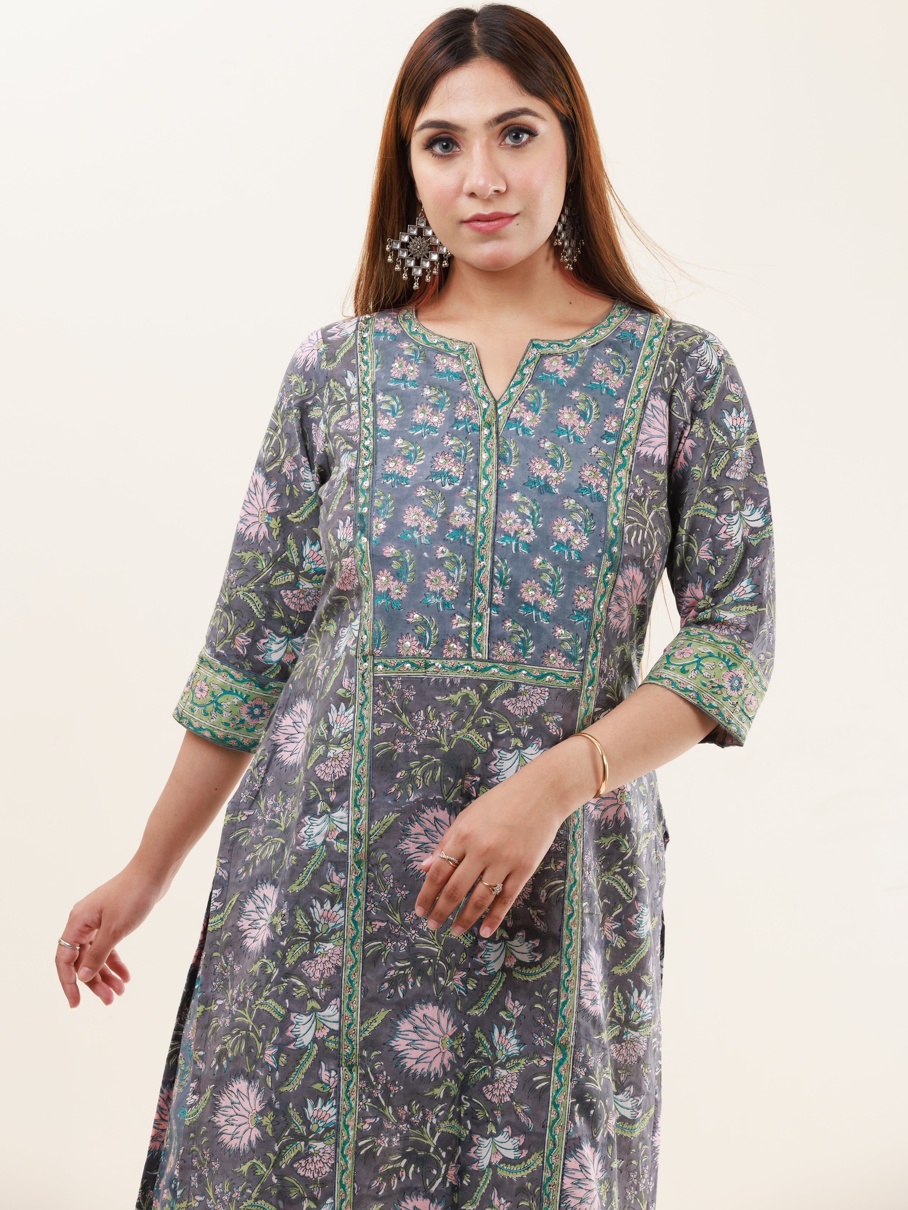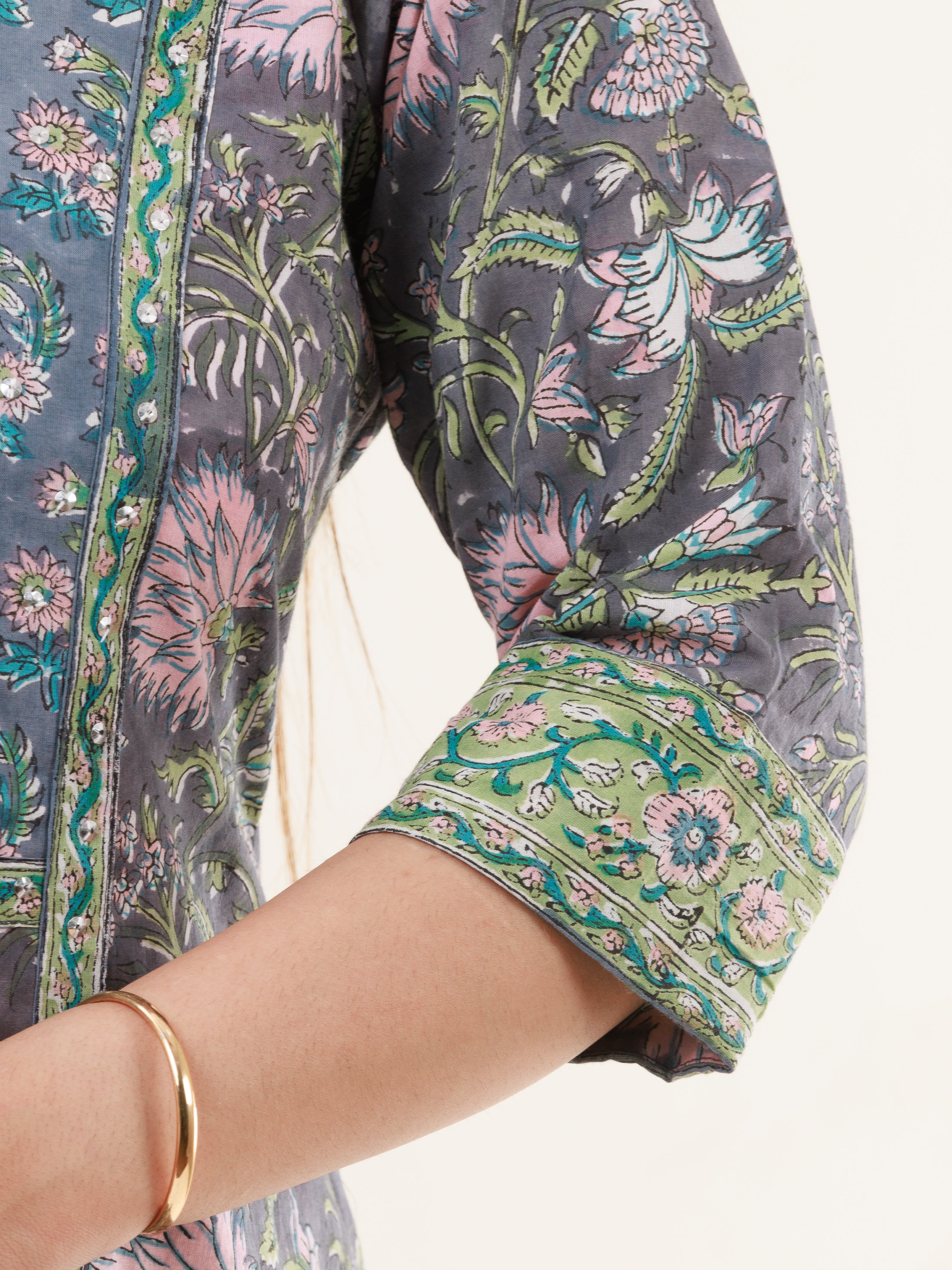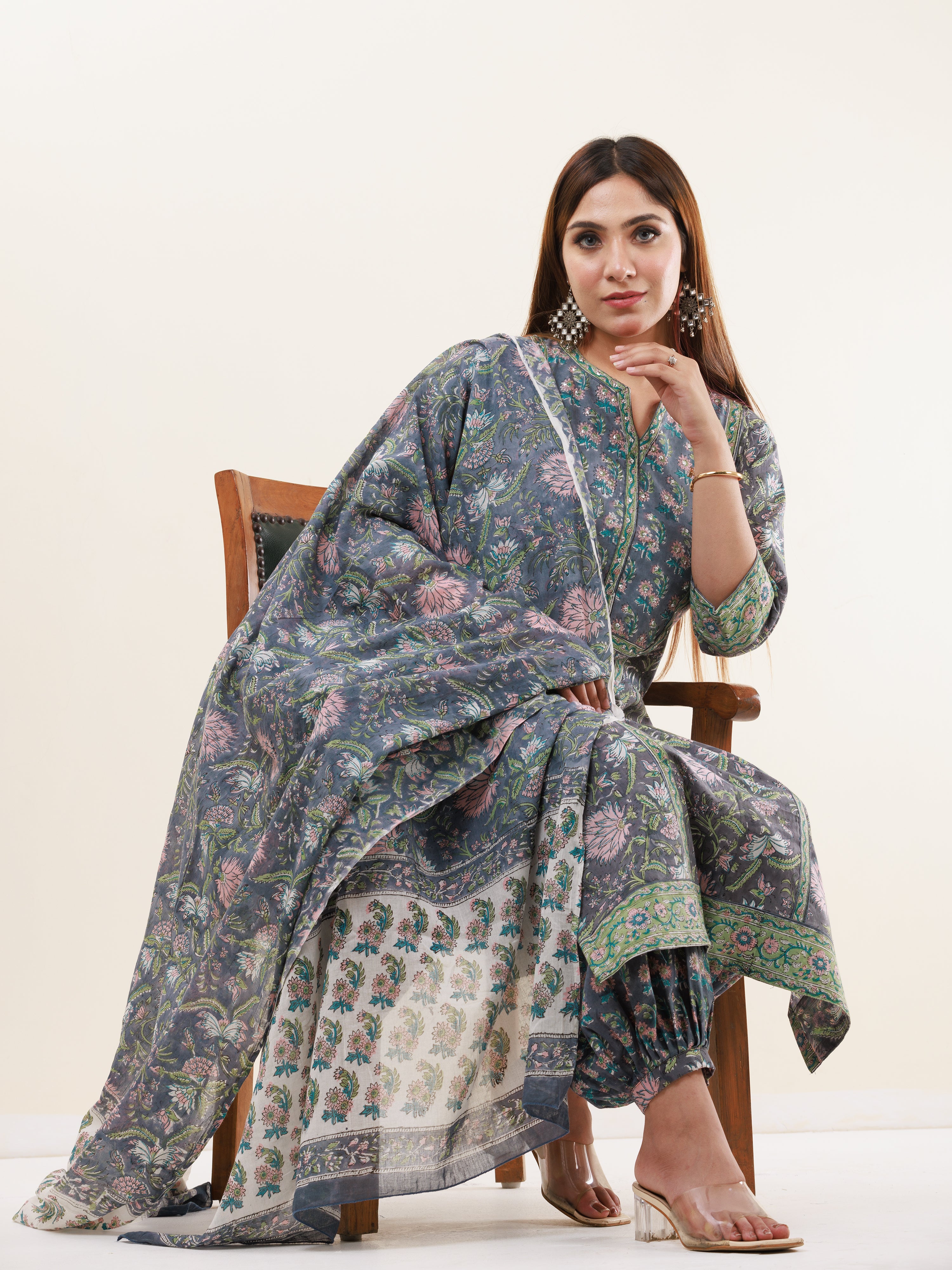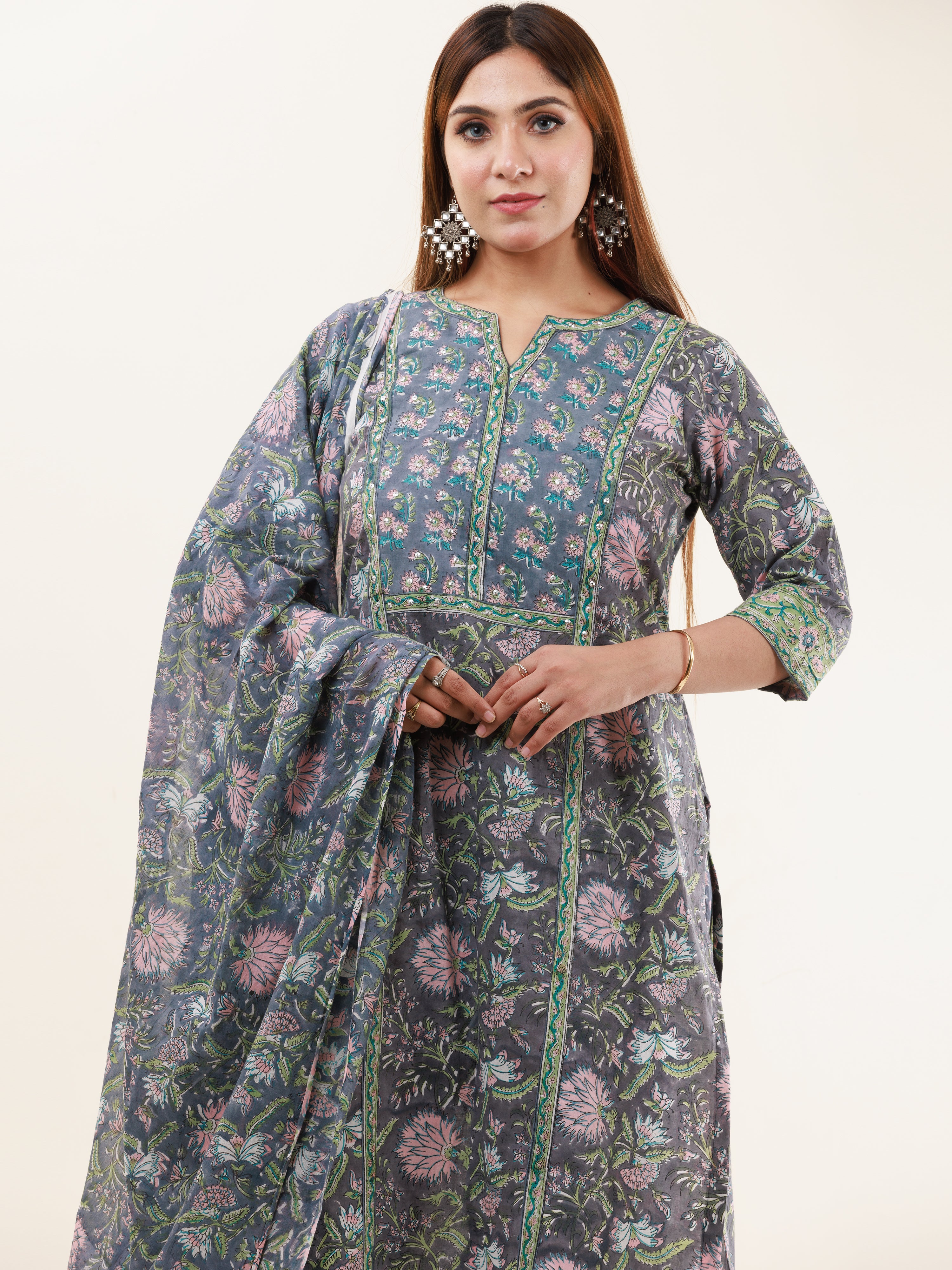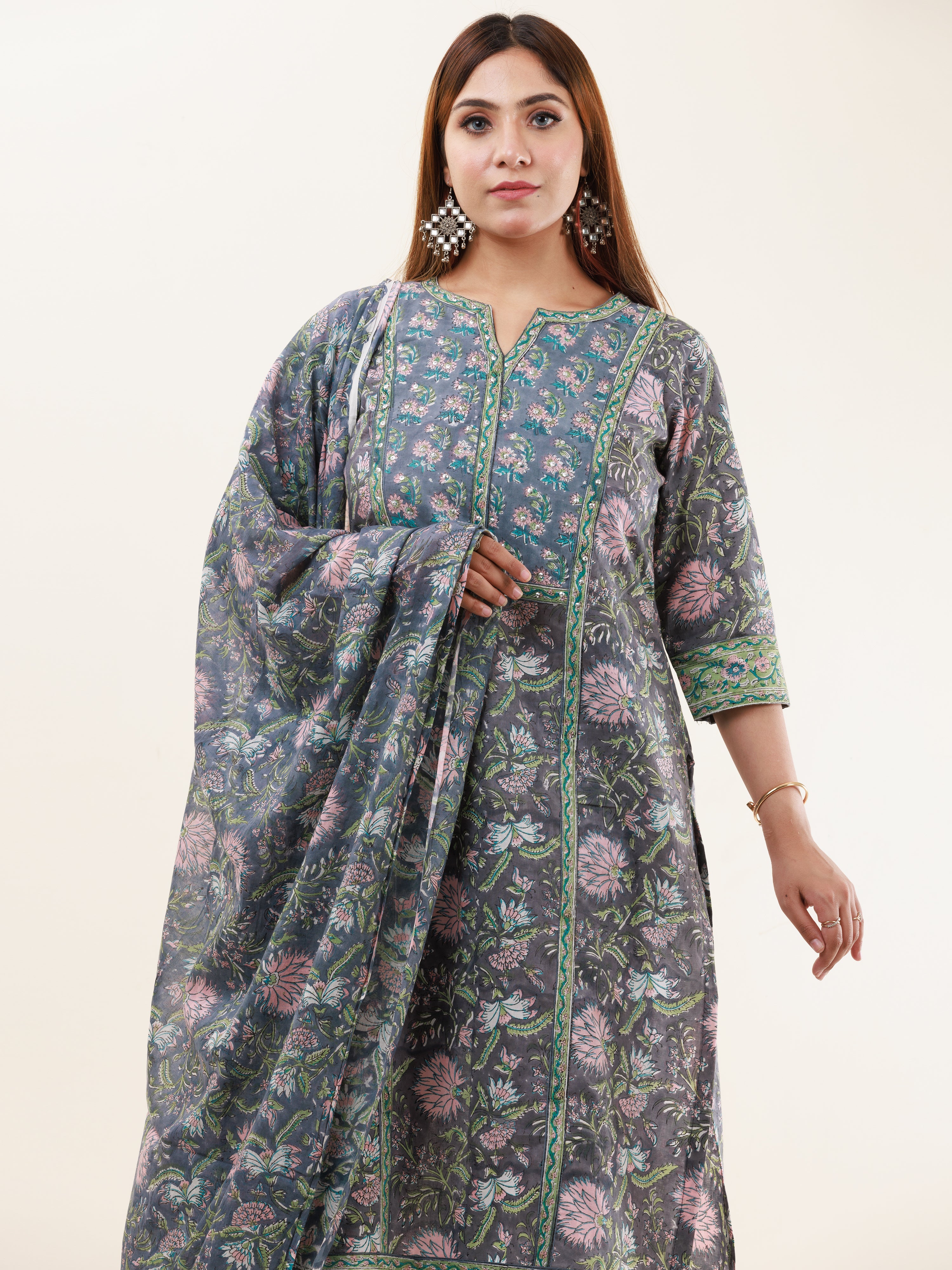 Product: This set contains Handcrafted Sanganeri Premium Cotton Kurta, 100% Cotton Pants and Cotton Mul Mul Dupatta.