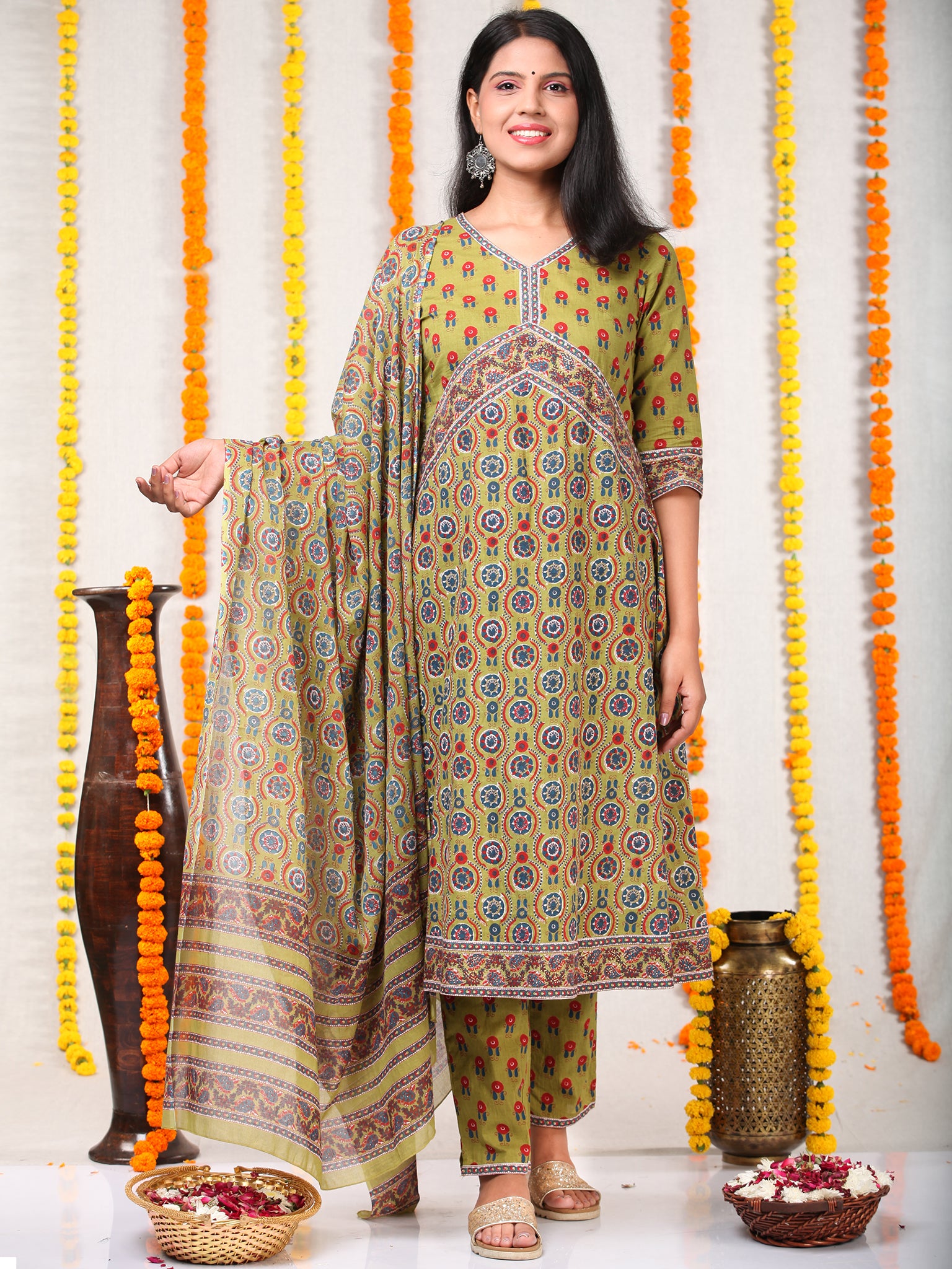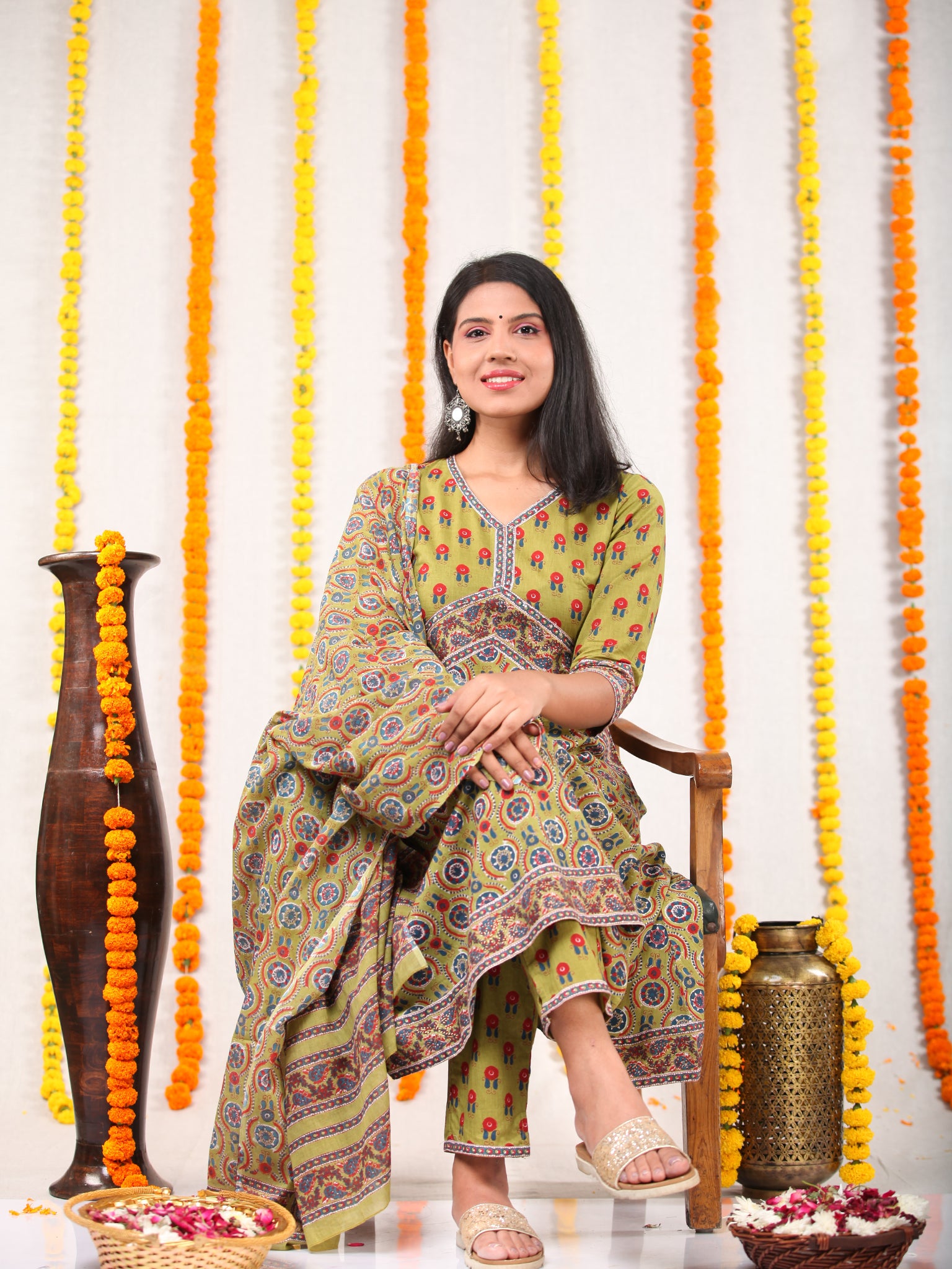 Product: This set contains Handcrafted Sanganeri Premium Cotton Kurta, 100% Cotton Pants and Cotton Dupatta.