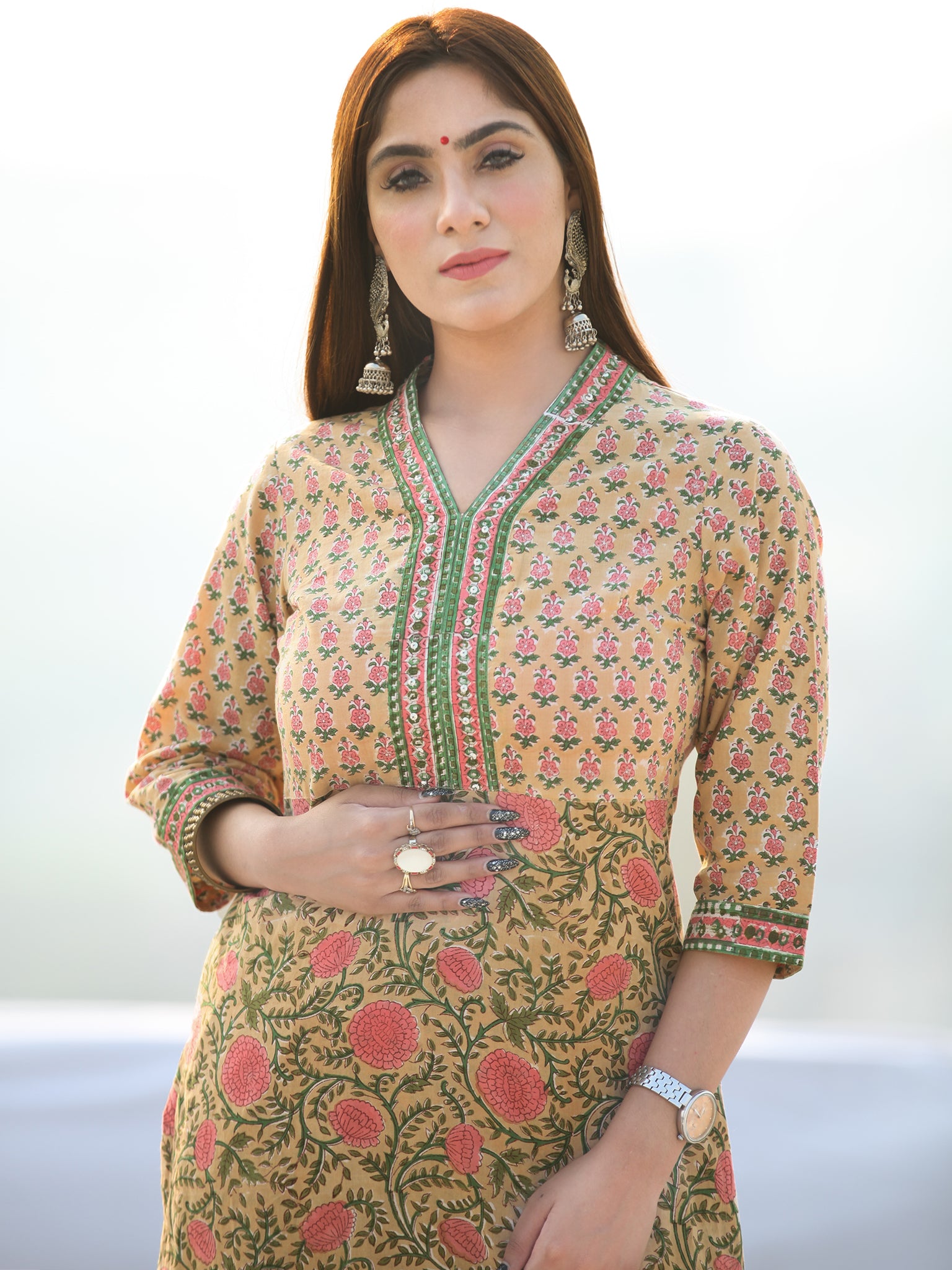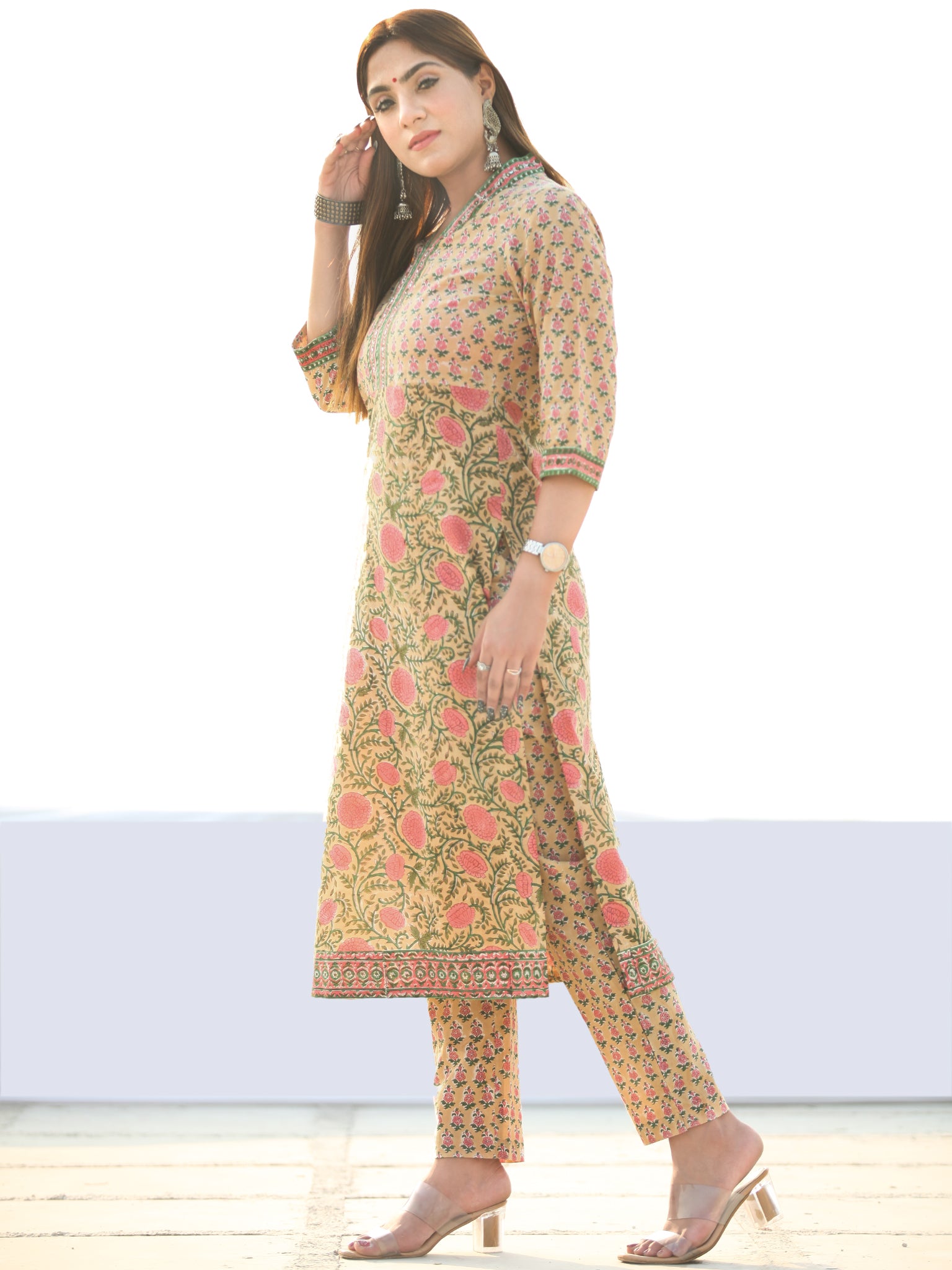 Product: This set contains Handcrafted Sanganeri Premium Cotton Kurta, 100% Cotton Pants and Kota Doria Dupatta.