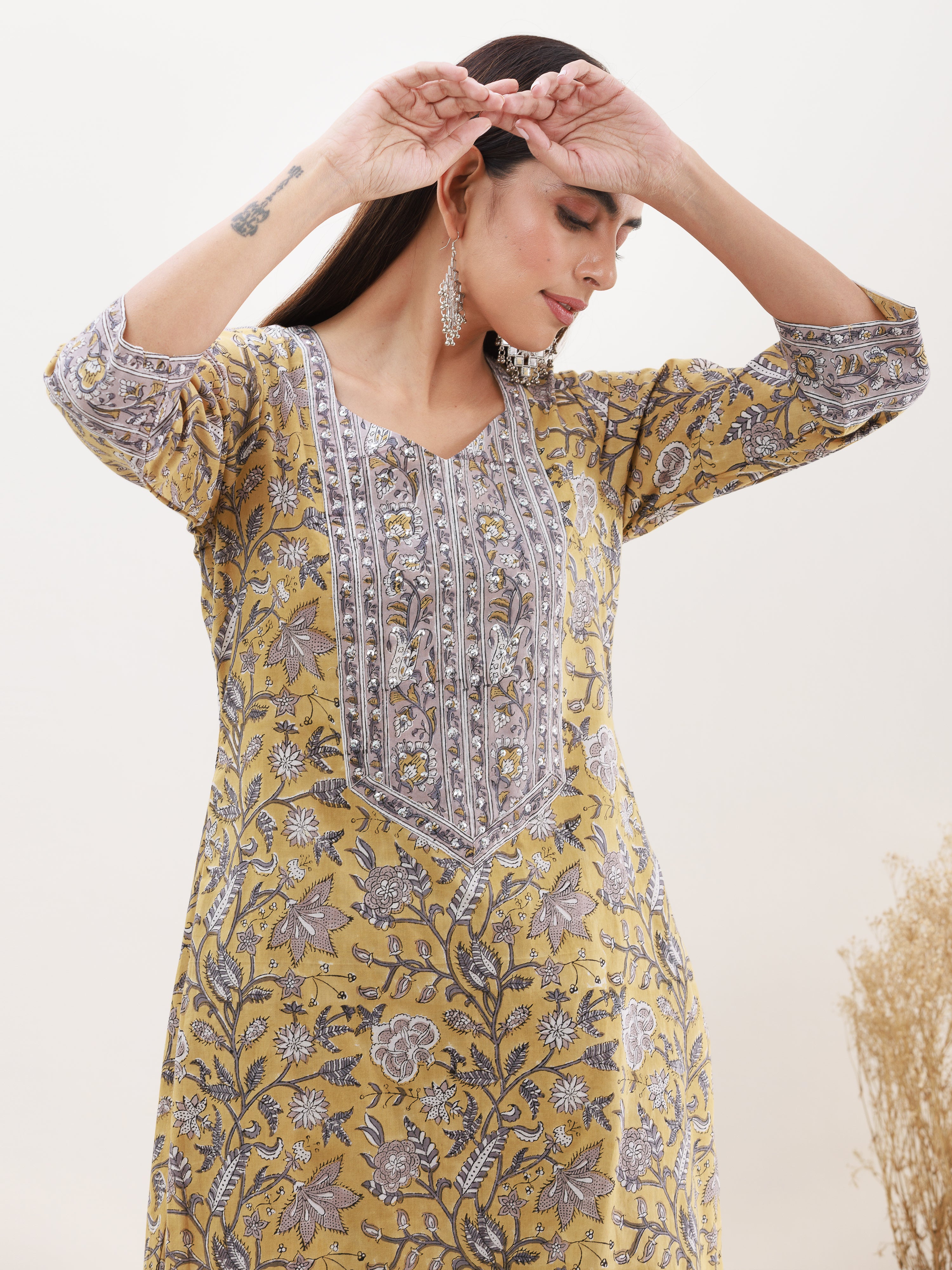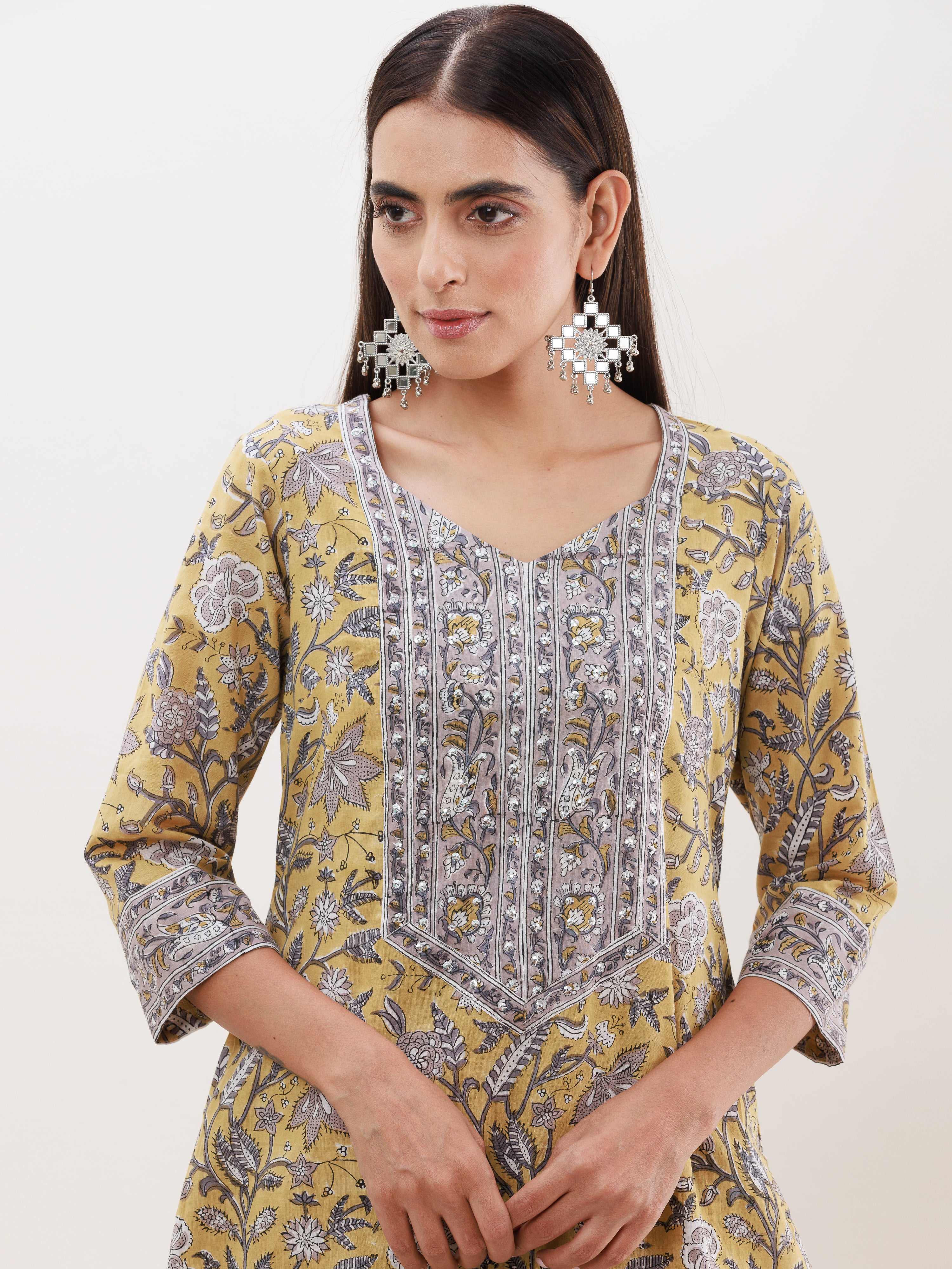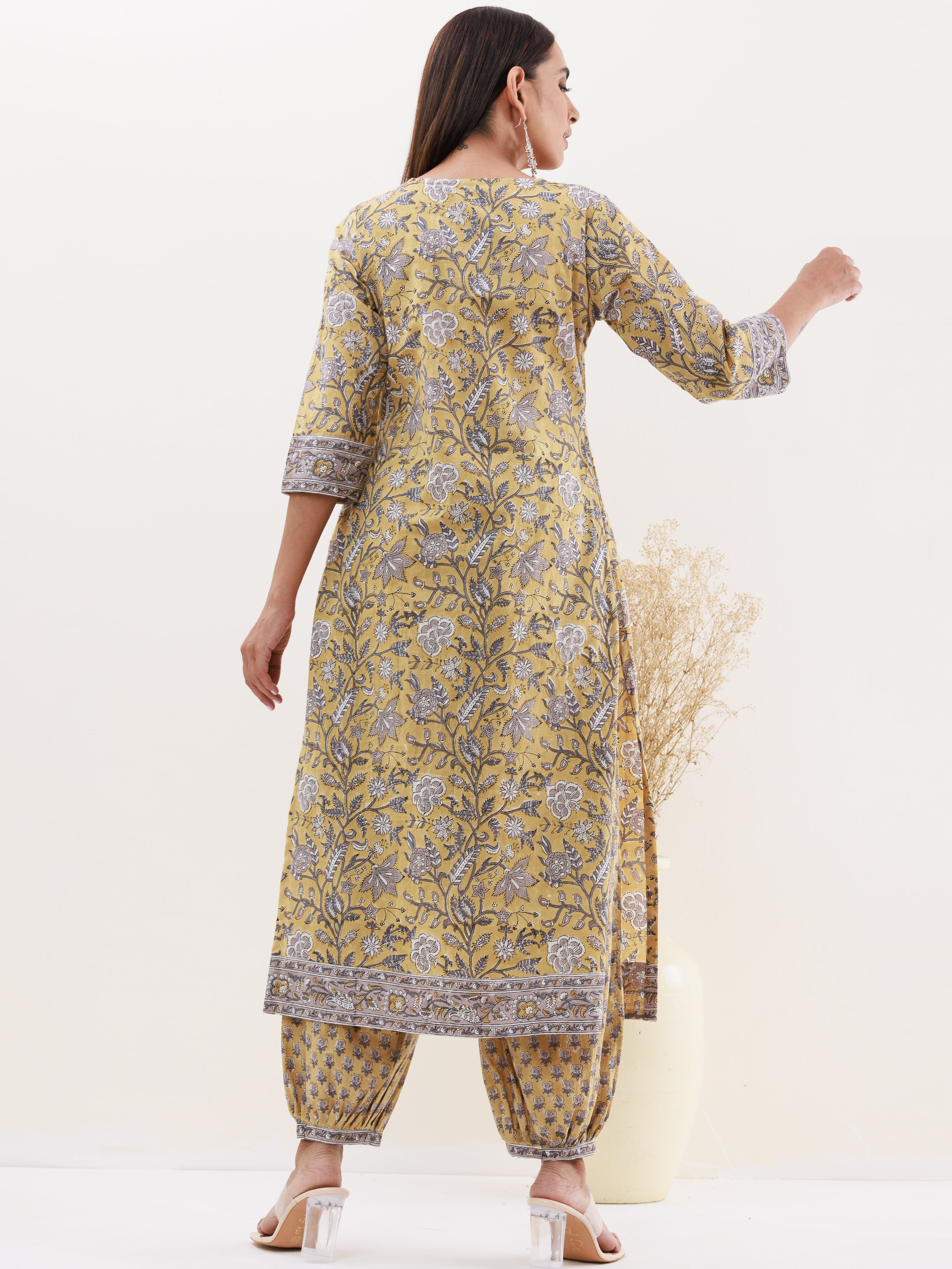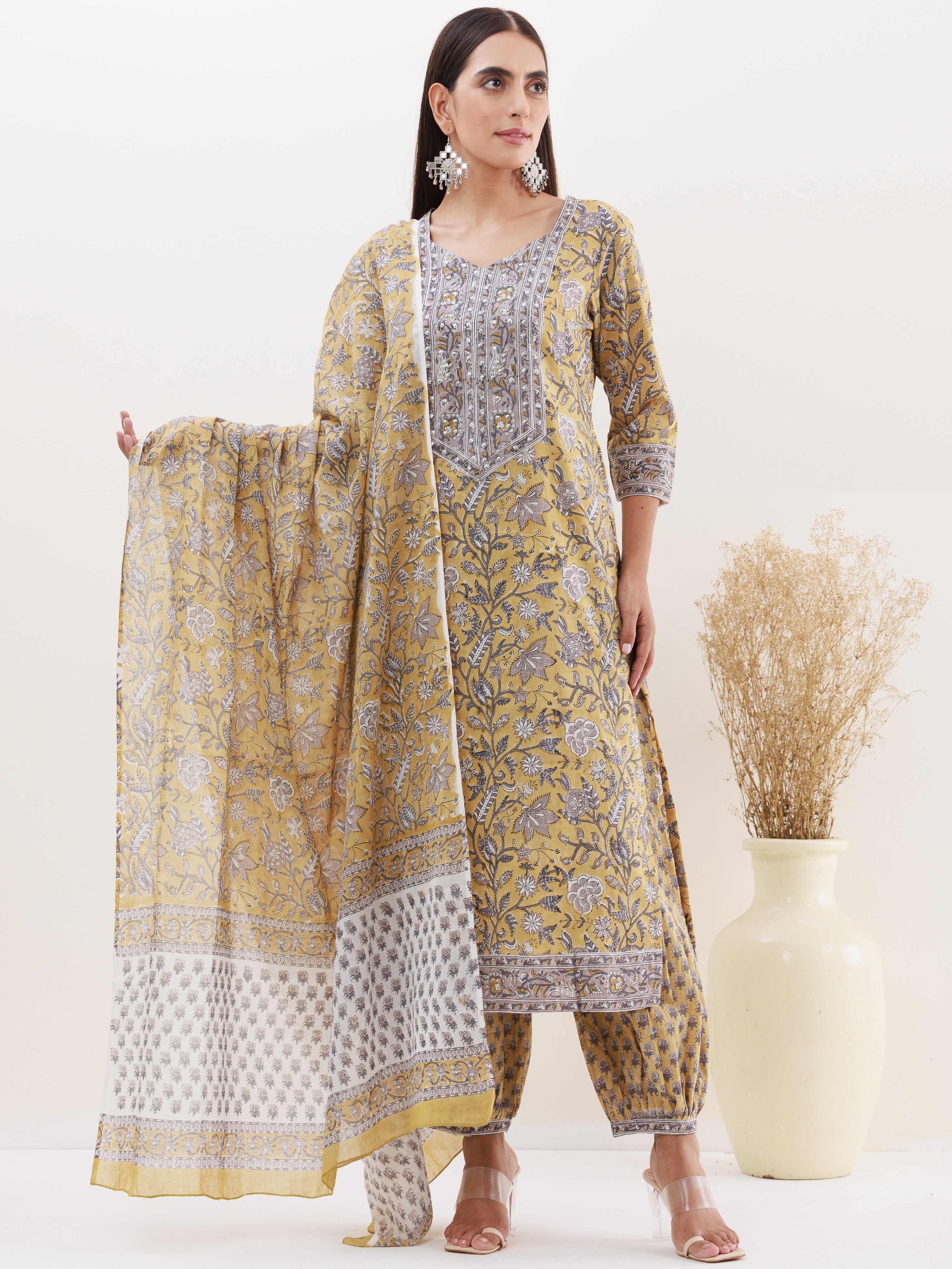 Product: This set contains Handcrafted Sanganeri Premium Cotton Kurta, 100% Cotton Pants and Cotton Mulmul Dupatta.