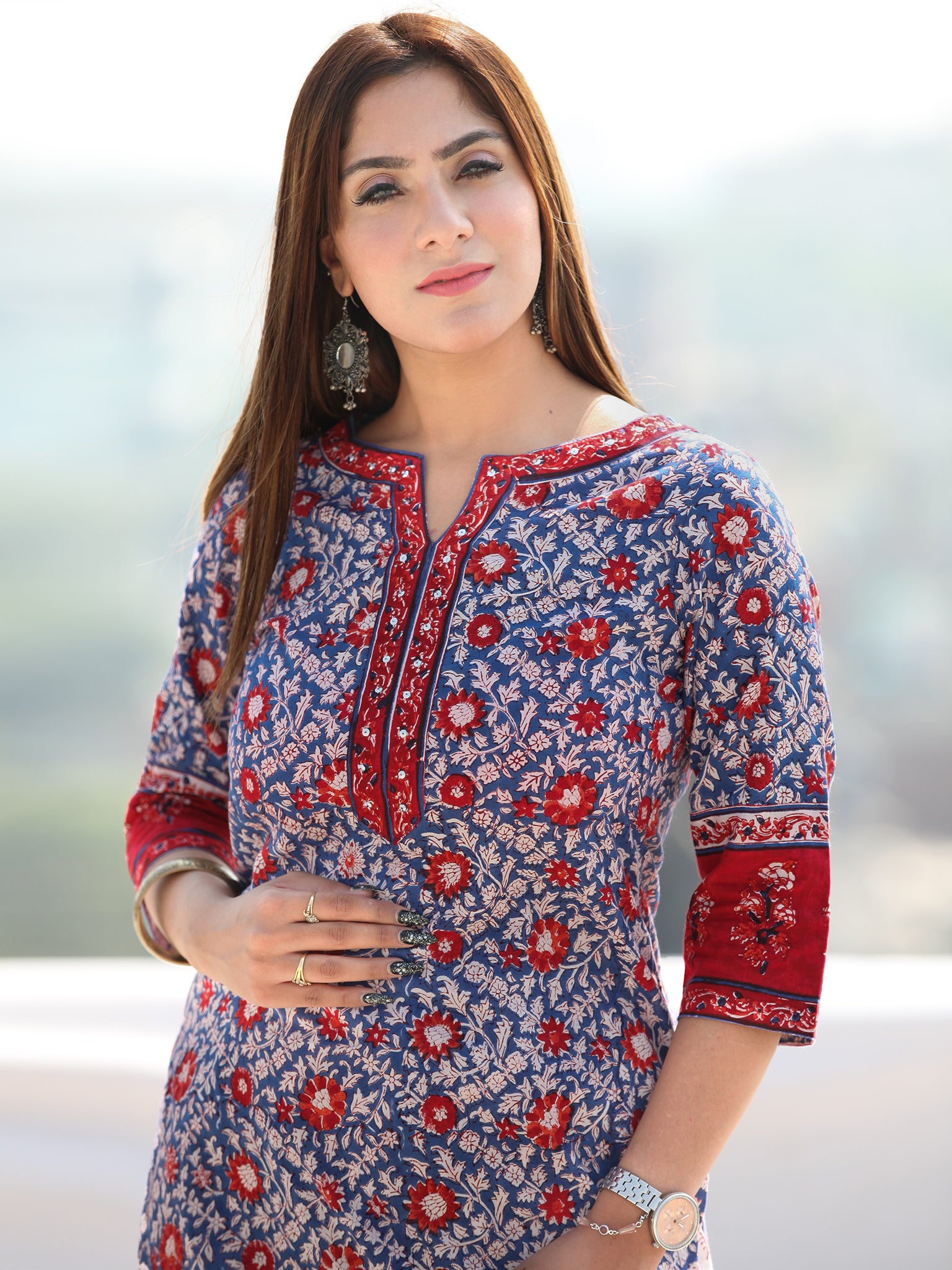 Product: This set contains Handcrafted Sanganeri Premium Cotton Kurta, 100% Cotton Pants and Cotton Dupatta.