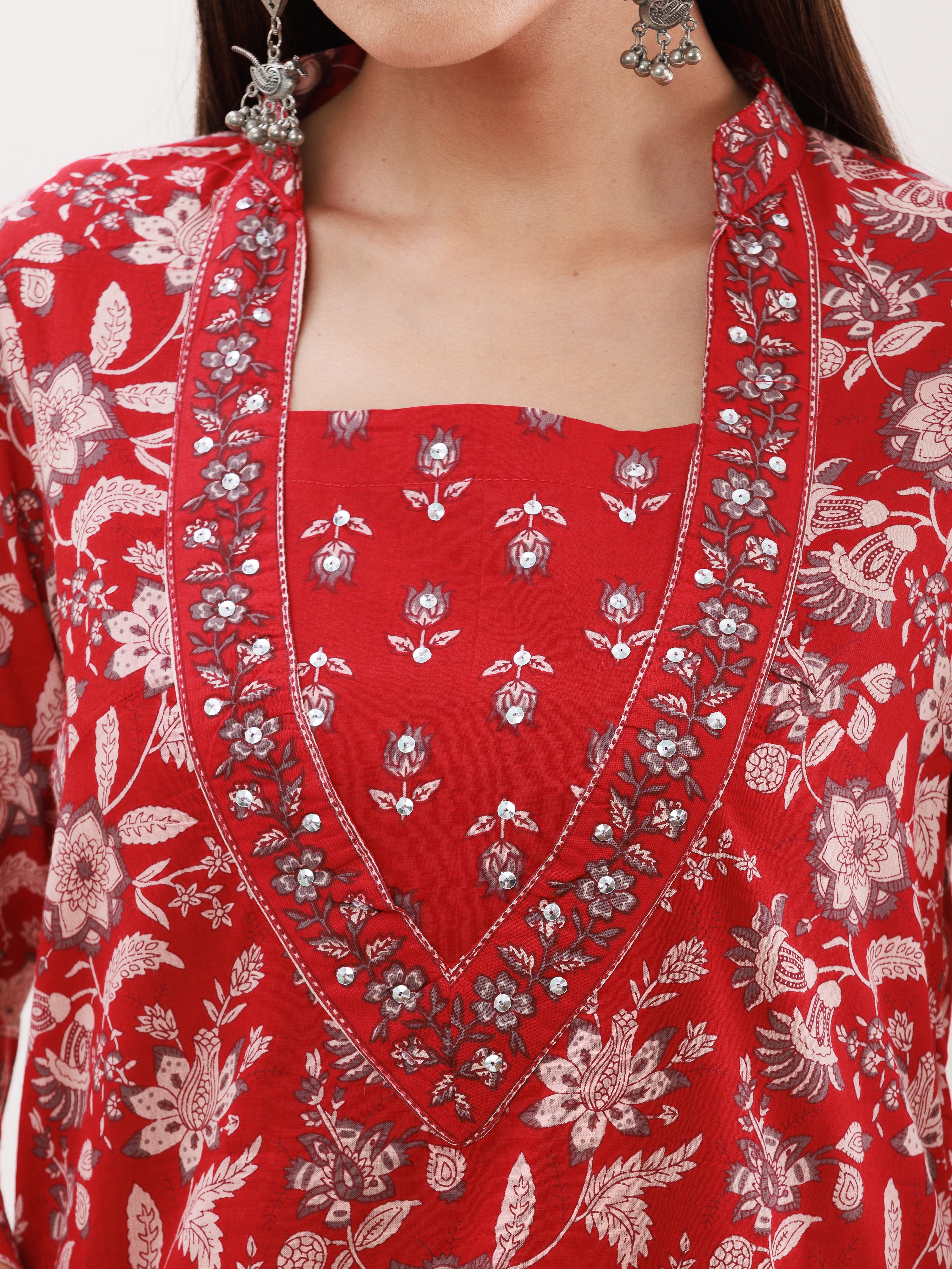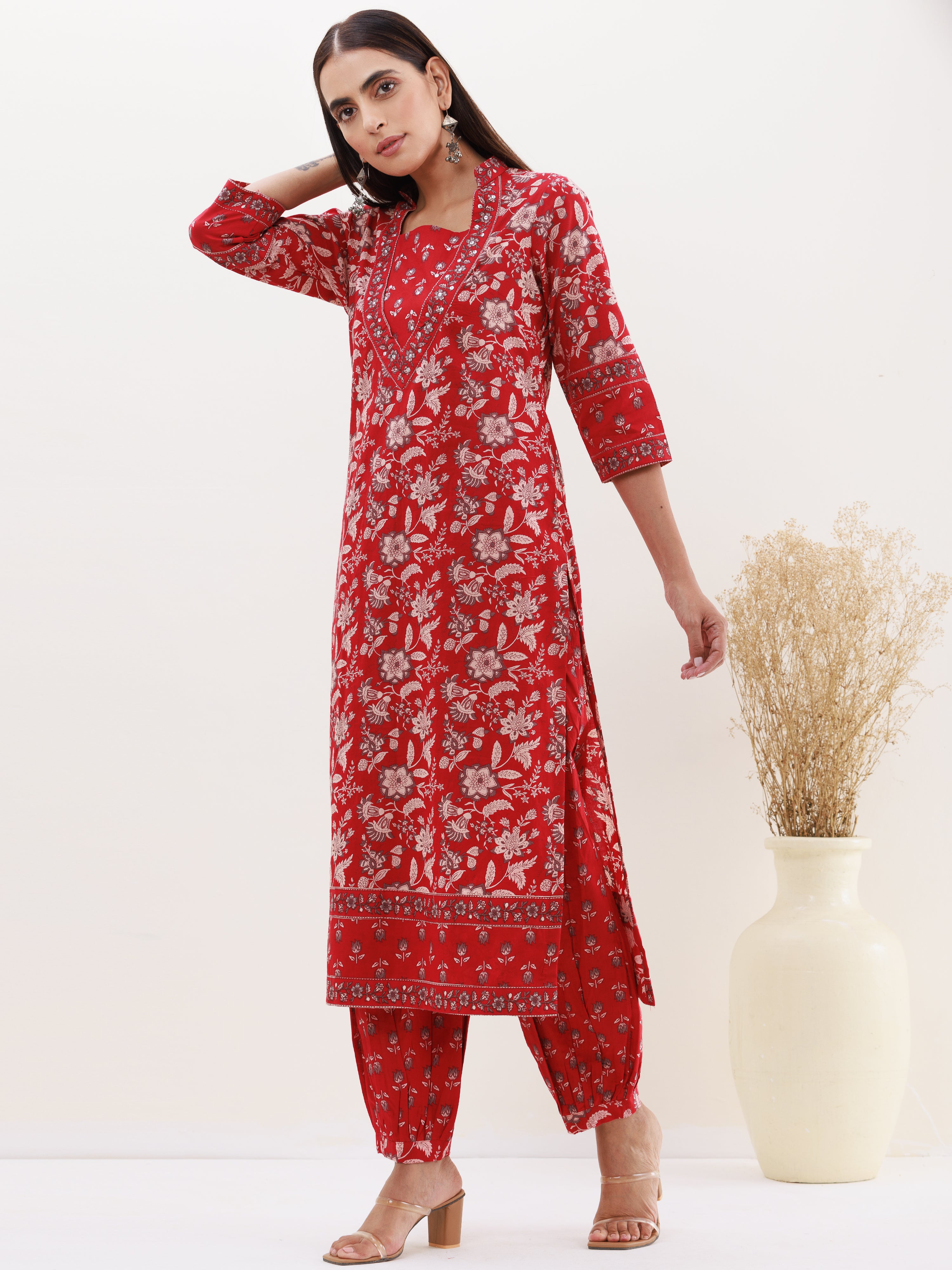 Product: This set contains Handcrafted Sanganeri Premium Cotton Kurta, 100% Cotton Pants and Cotton Mulmul Dupatta.