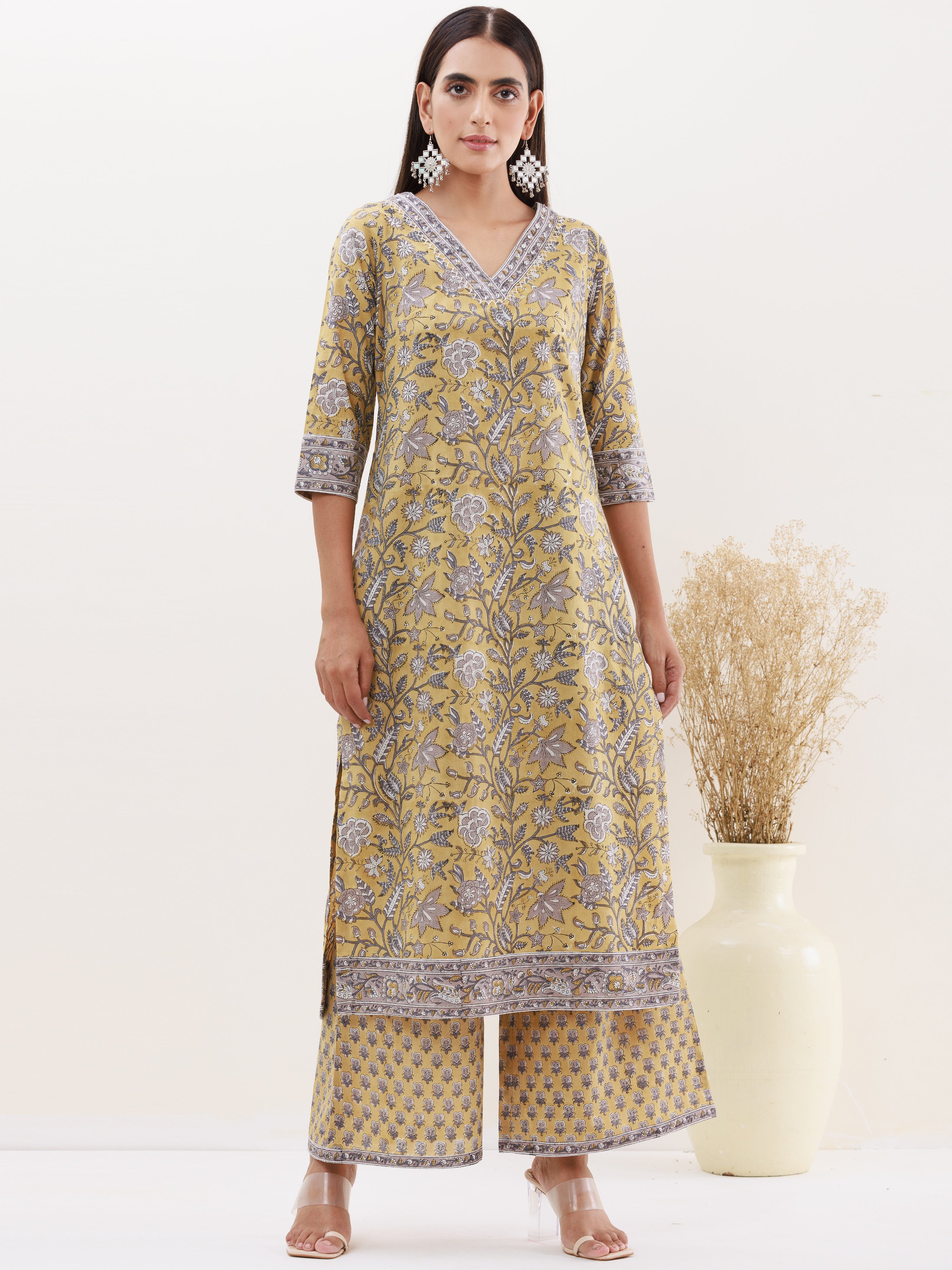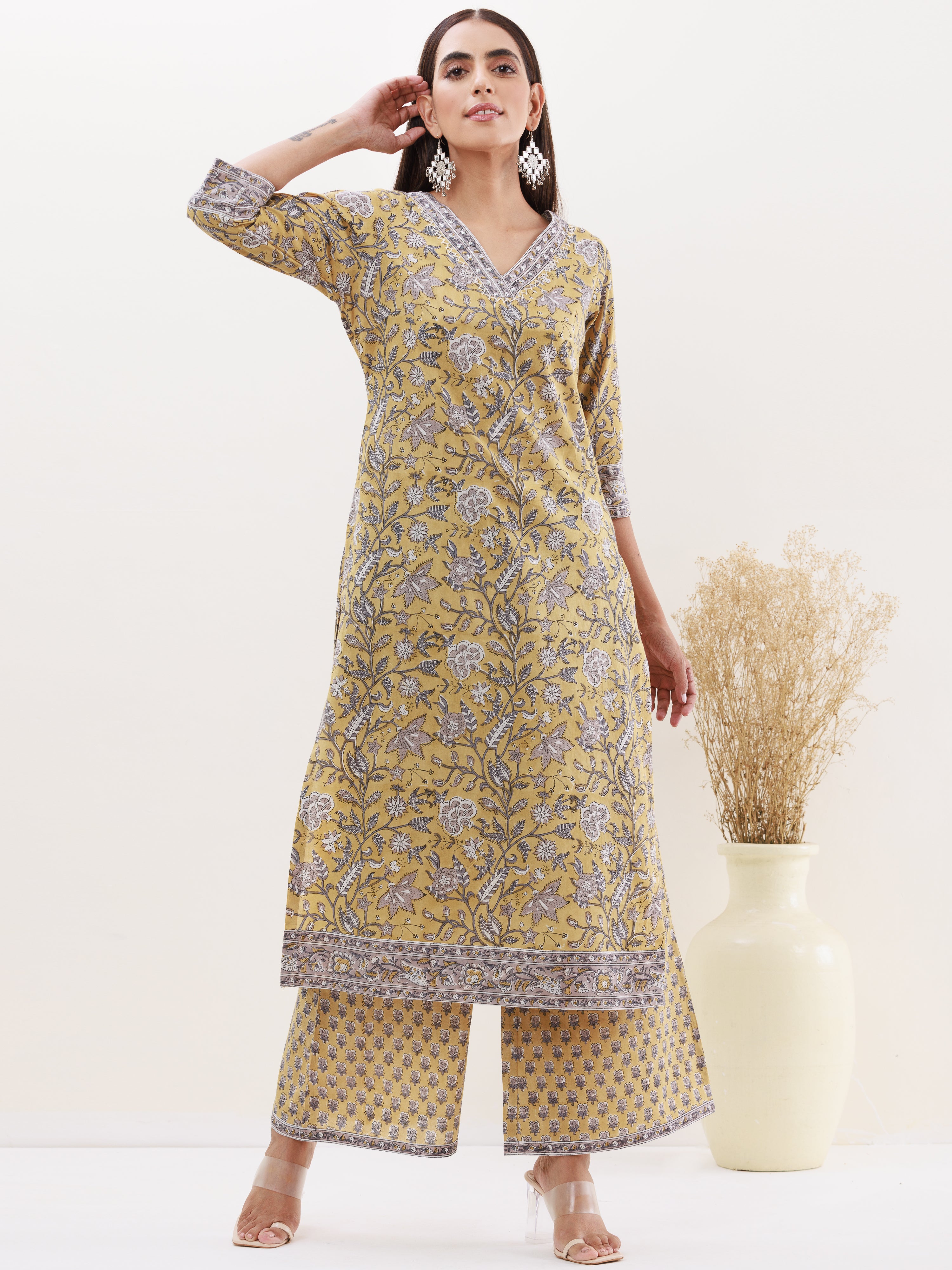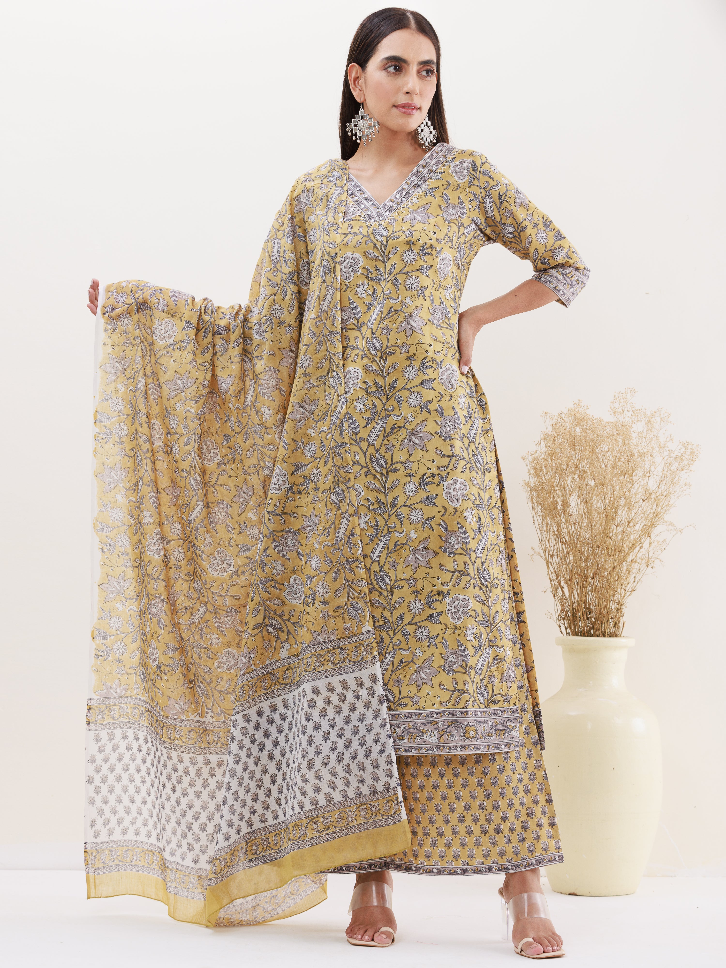 Product: This set contains Handcrafted Sanganeri Premium Cotton Kurta, 100% Cotton Pants and Cotton Mulmul Dupatta.