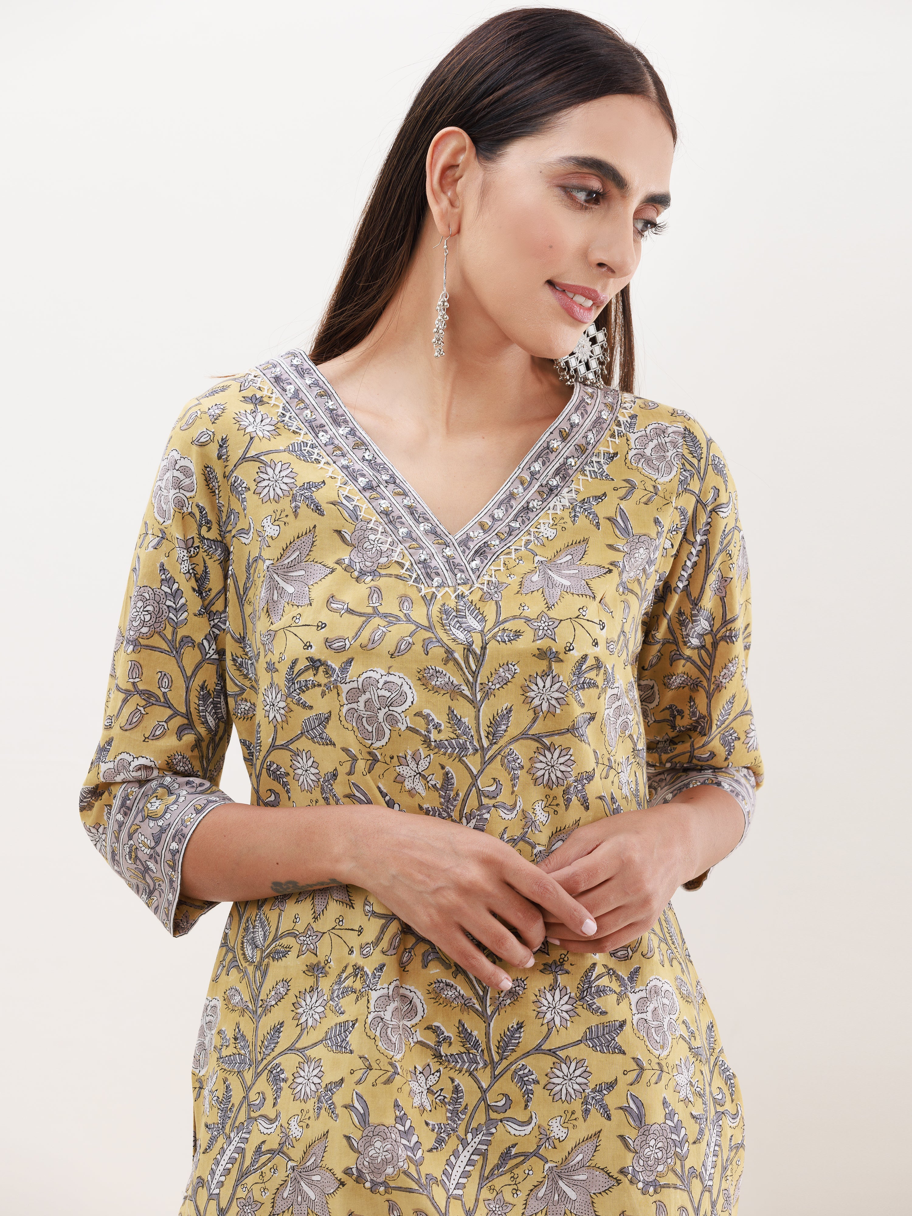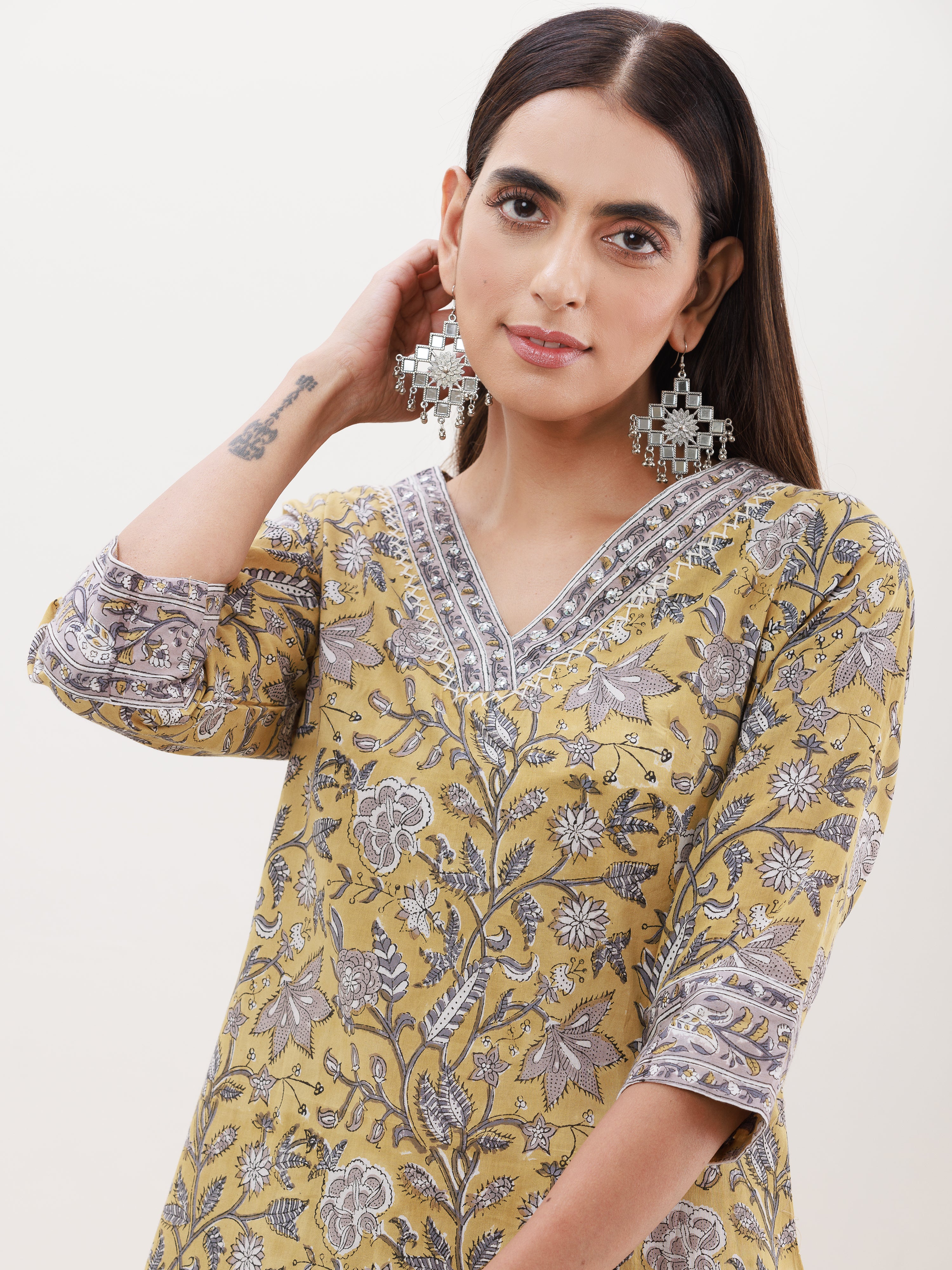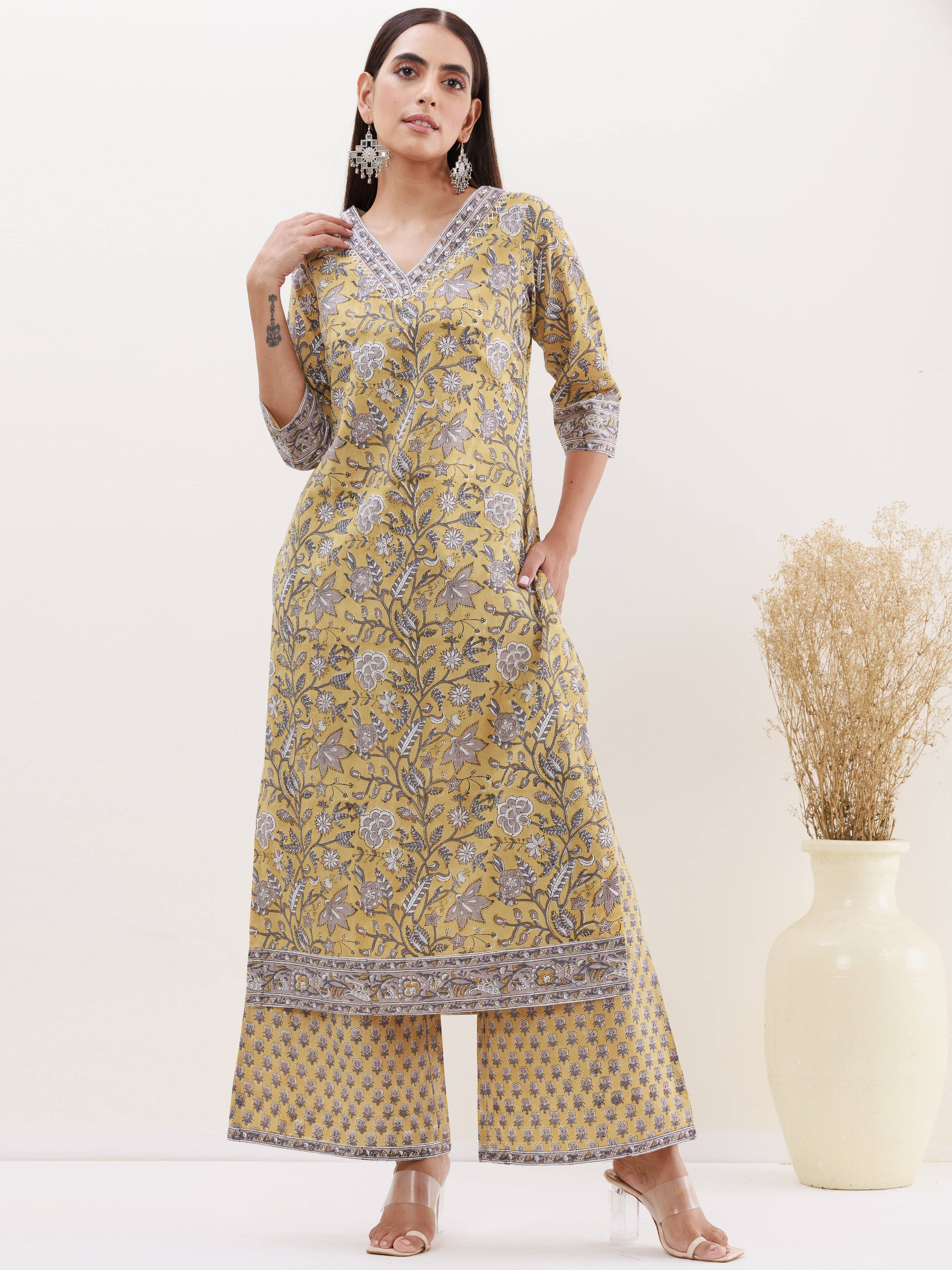 Product: This set contains Handcrafted Sanganeri Premium Cotton Kurta, 100% Cotton Pants and Cotton Mulmul Dupatta.