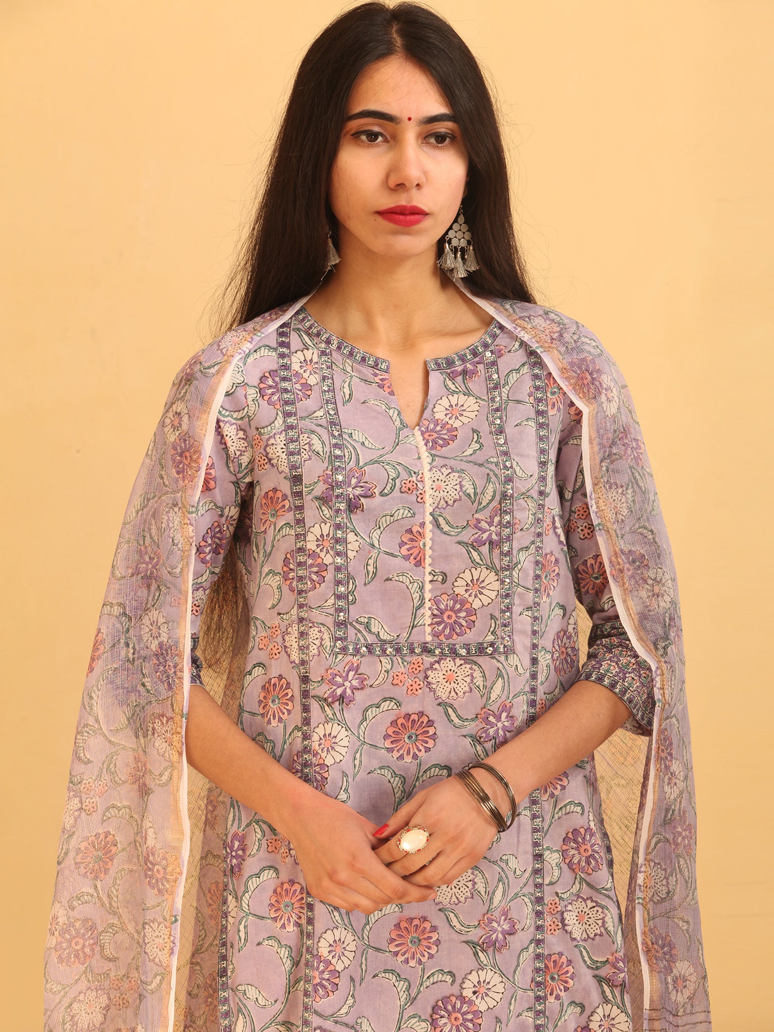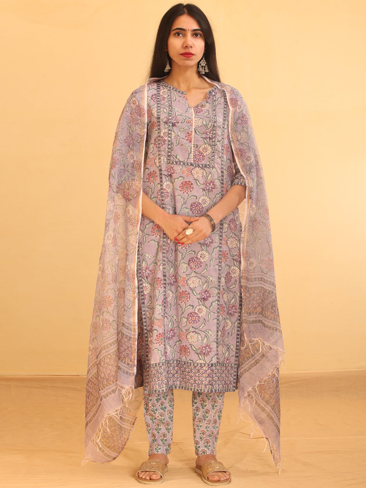 Fabric : Hand Block Printed. Kurta - Cotton. Pants - Cotton, Dupatta - Kota Doria