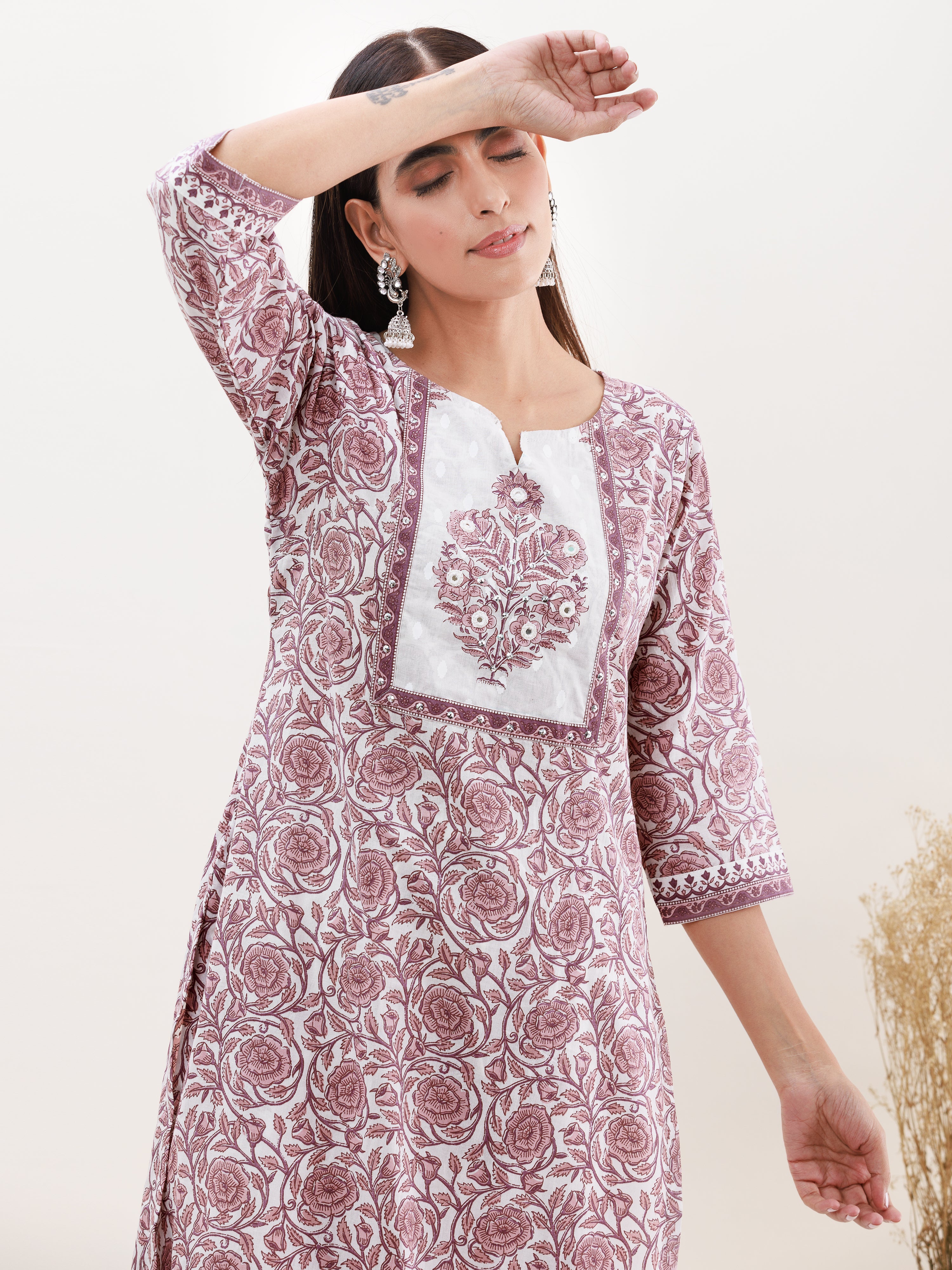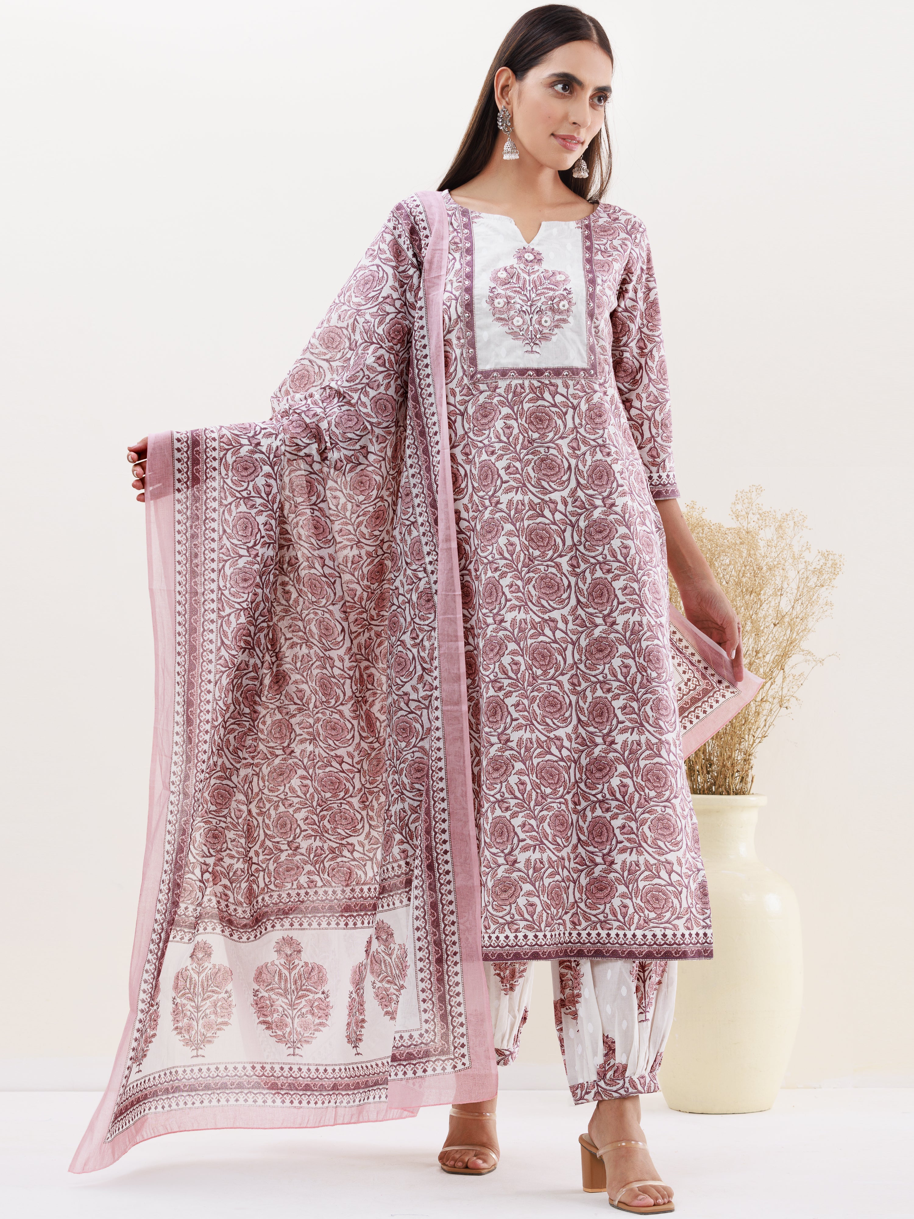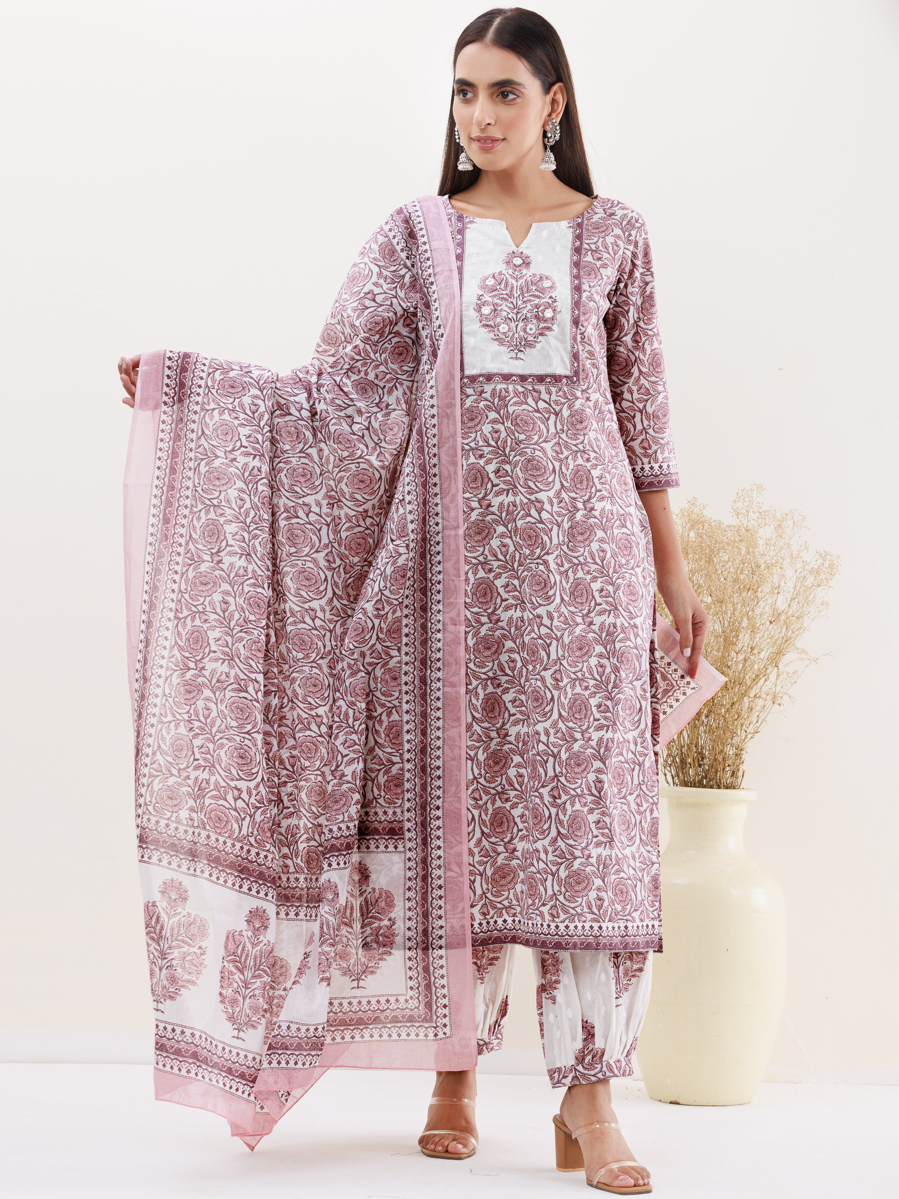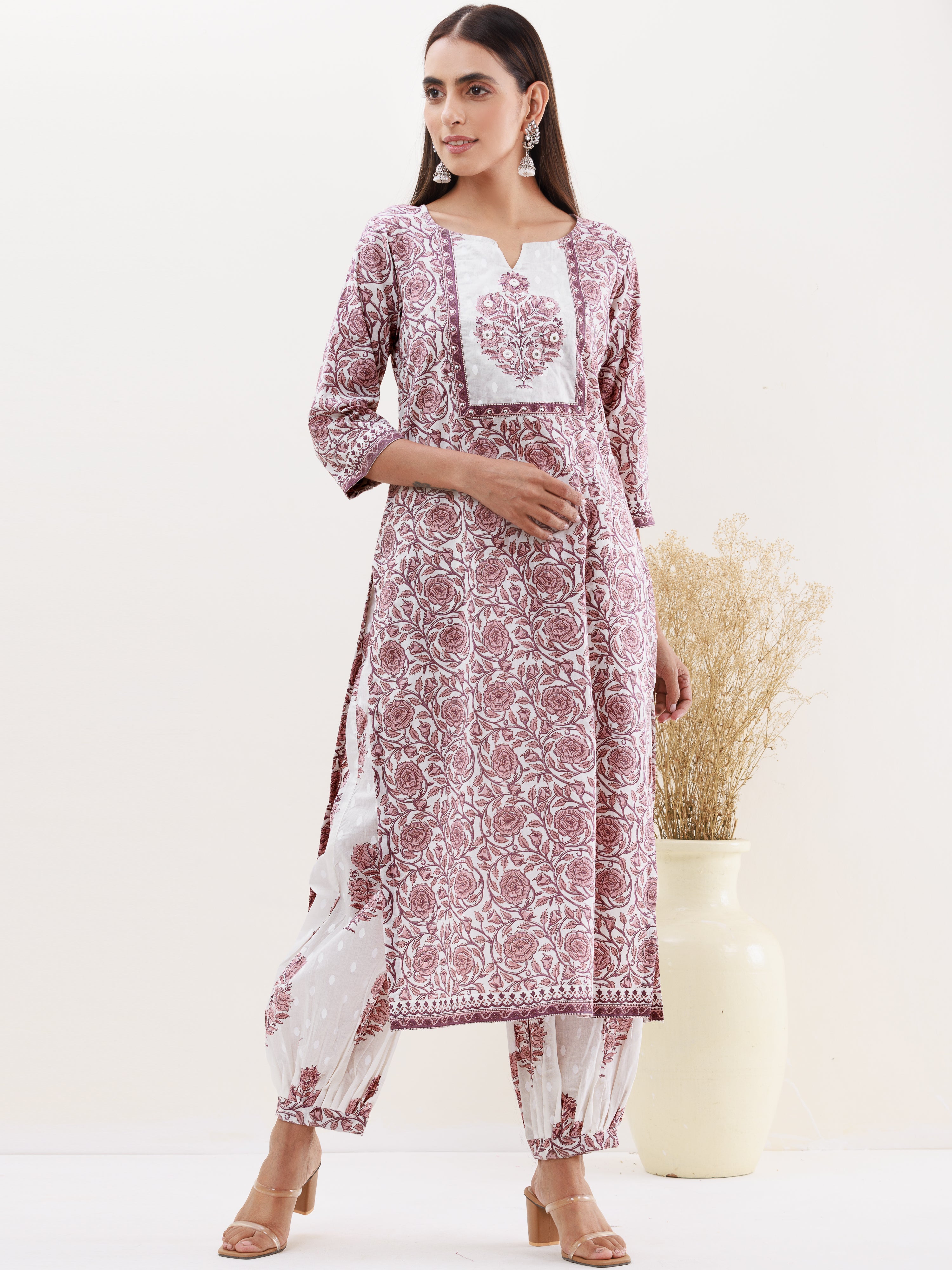 Product: This set contains Handcrafted Sanganeri Premium Cotton Kurta, 100% Cotton Pants and Cotton Mulmul Dupatta.