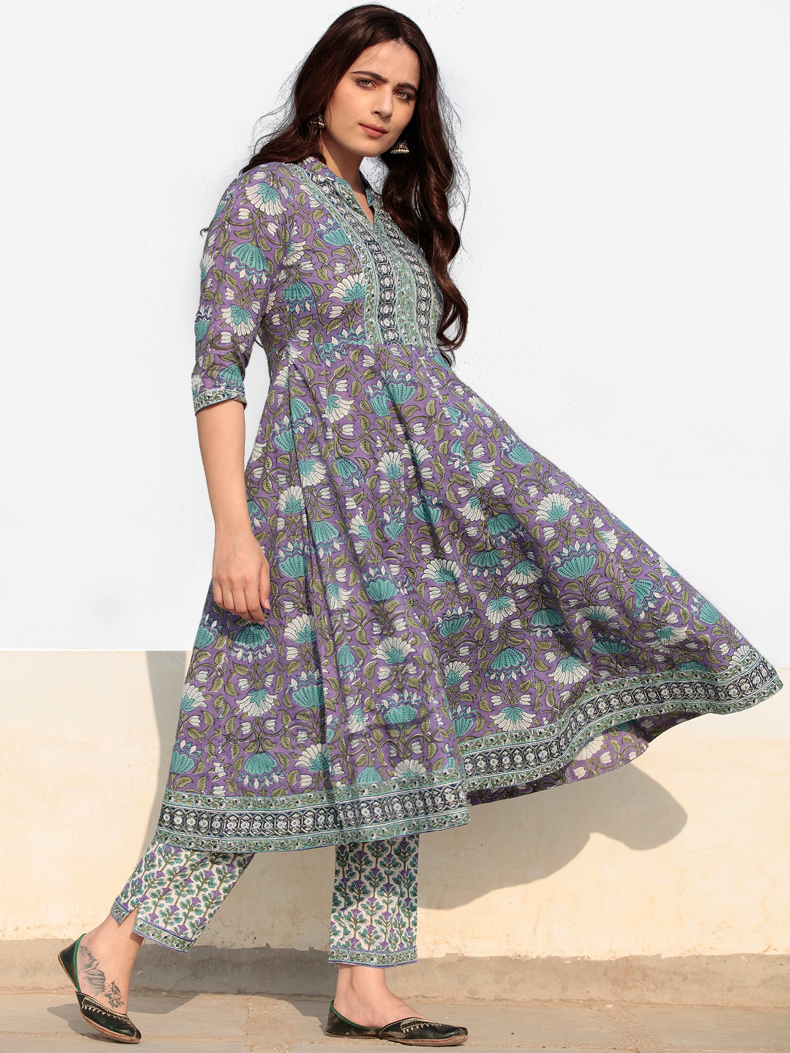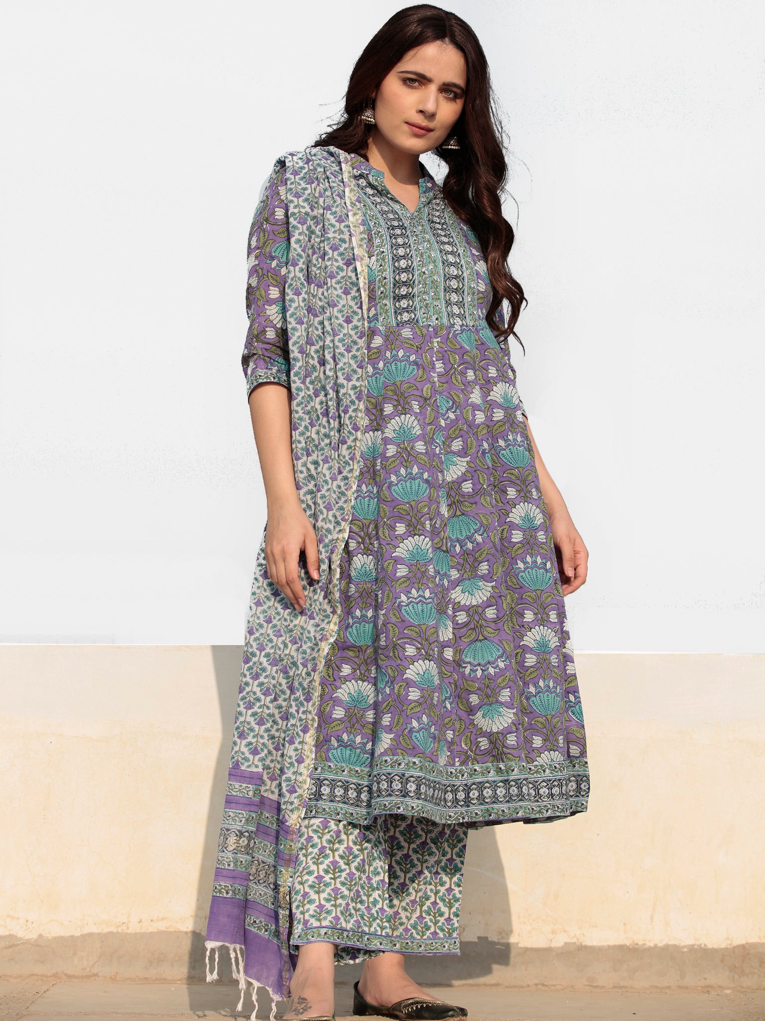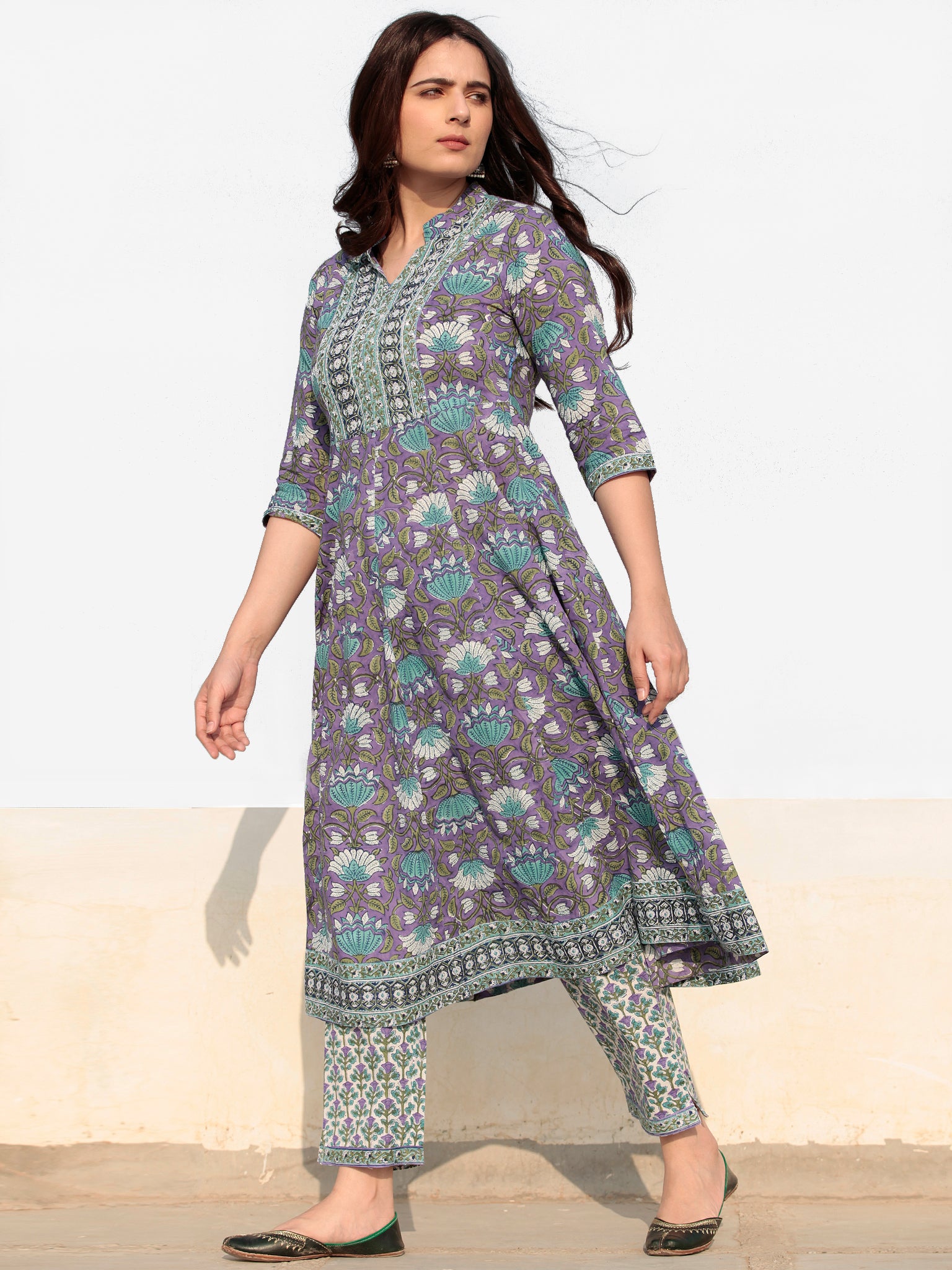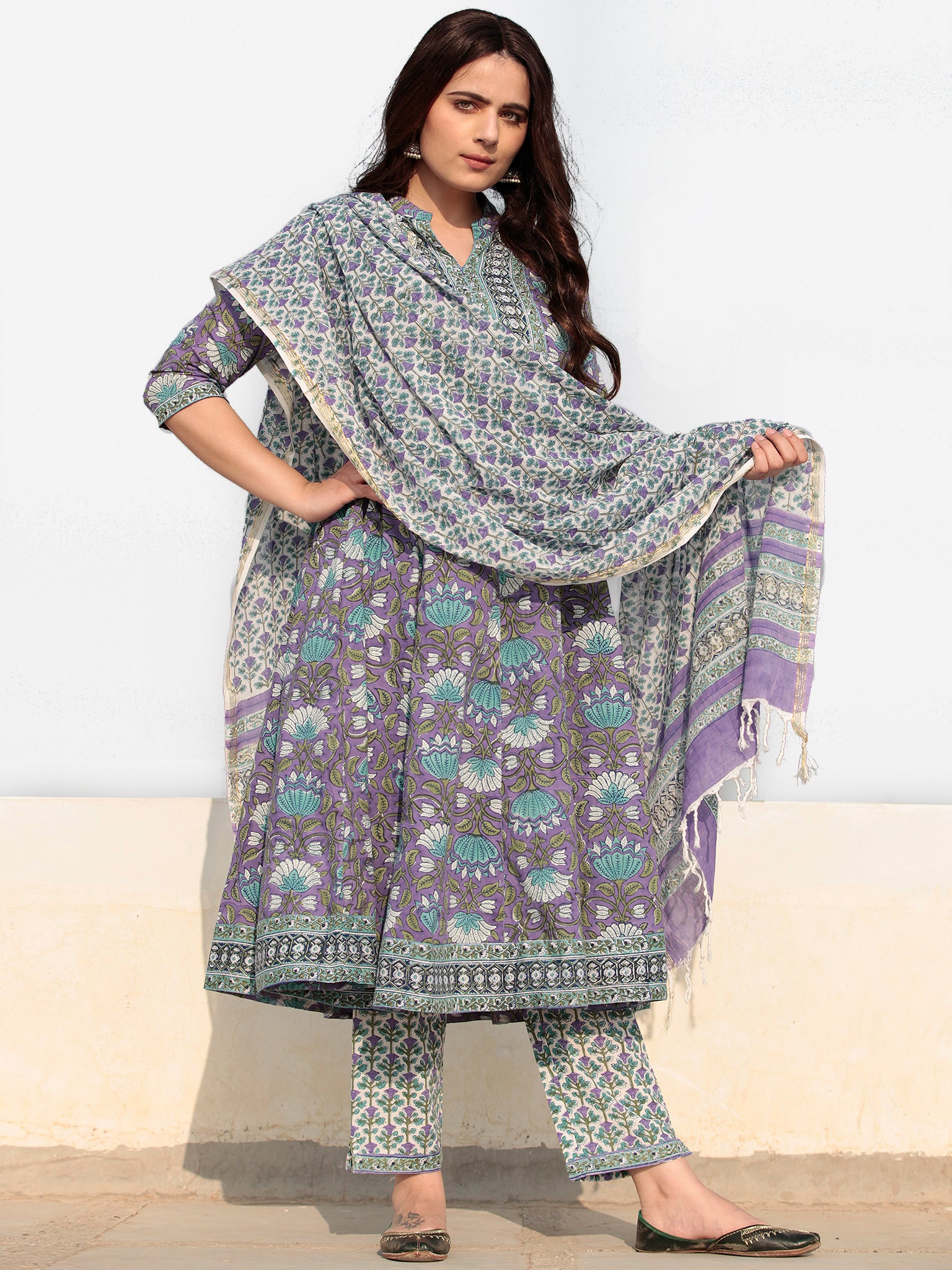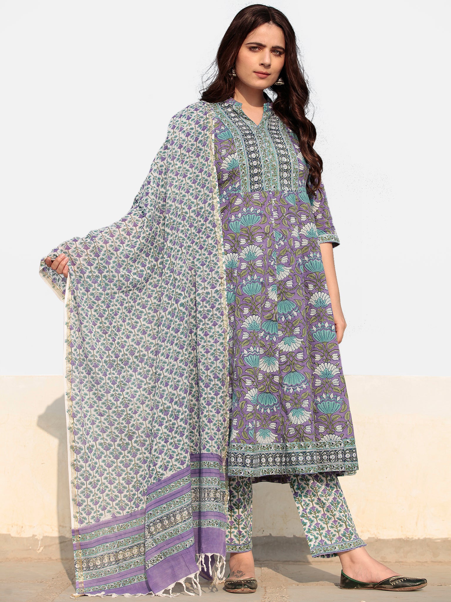 Product: This set contains Handcrafted Sanganeri Premium Cotton Kurta, 100% Cotton Pants and Cotton Dupatta.
