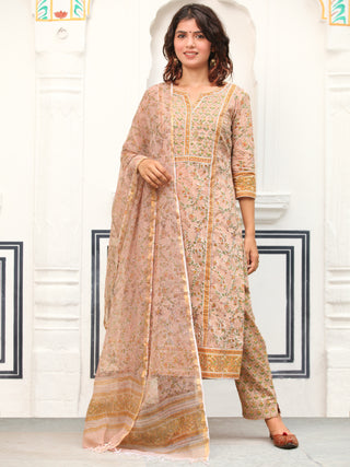 Jashn Bella Set Of Kurta Pants Kota Doria Dupatta