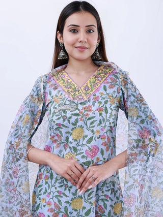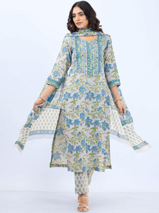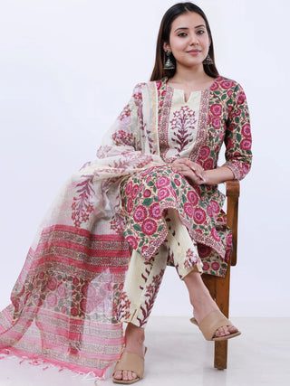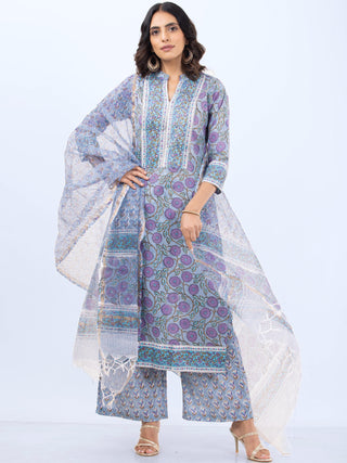 Roz Chitra Set Of Kurta Pants Kota Doria Dupatta