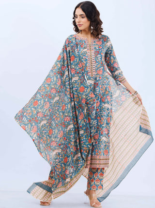 Roz Himani Set Of Kali Kurta Pants Dupatta