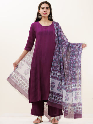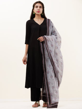 Rozana Nazmil Set Of Kurta Pants Kota Doria Dupatta