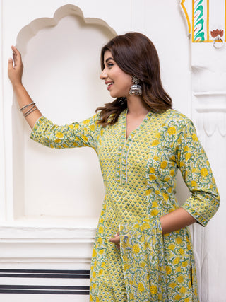 Zohra Saania Set of Anarkali Kurta Pants & Kota Dupatta