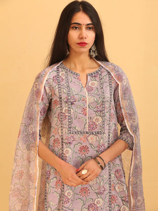 Roz Deepti Set Of Kurta Pants Kota Doria Dupatta