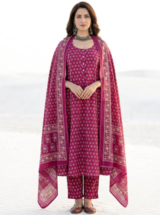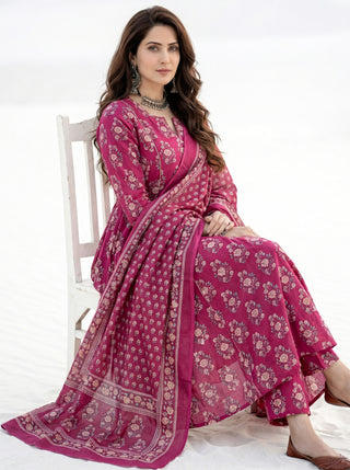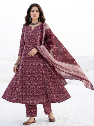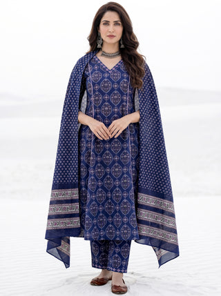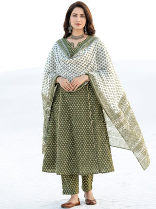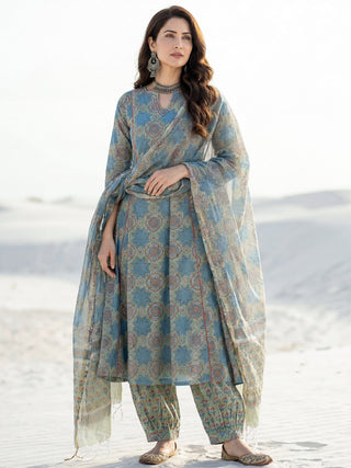 Aina Aakriti Set Of Kali Kurta Pants & Dupatta