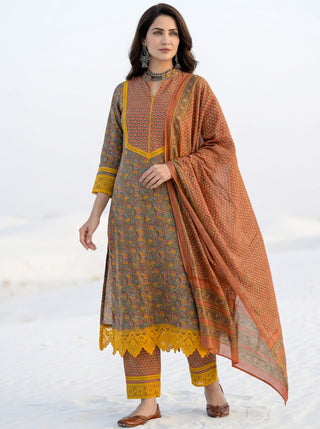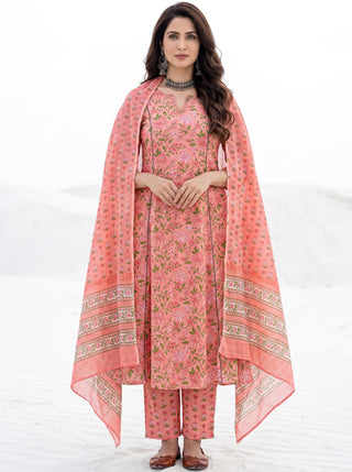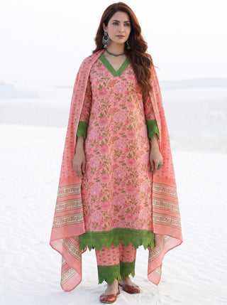 Roz Veena Set Of Kurta Pants Kota Doria Dupatta