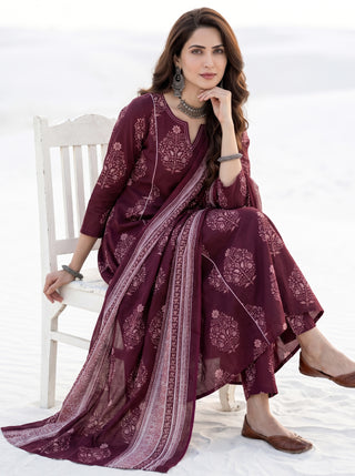 Aina Gulnaz Set Of Kali Kurta Pants & Dupatta