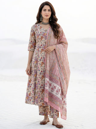 Aina Arisha Set Of Floral A Line Kurta Tulip Pants & Dupatta