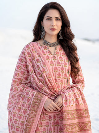Roz Veena Set Of Kurta Pants Kota Doria Dupatta