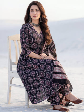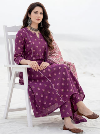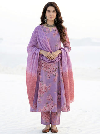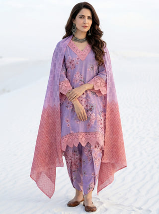 Roz Sarah Set Of Cotton Linen Kurta Pants Dupatta