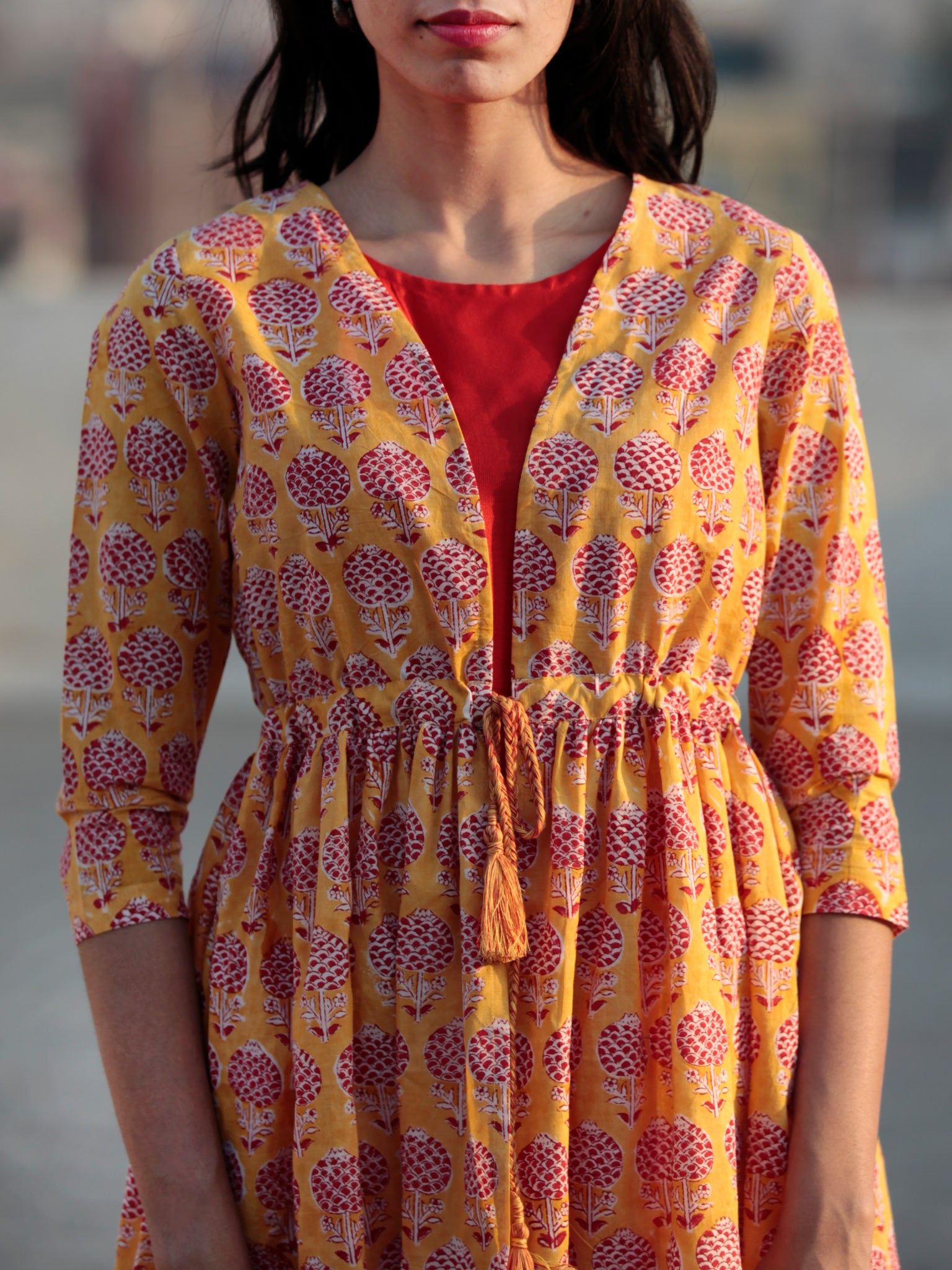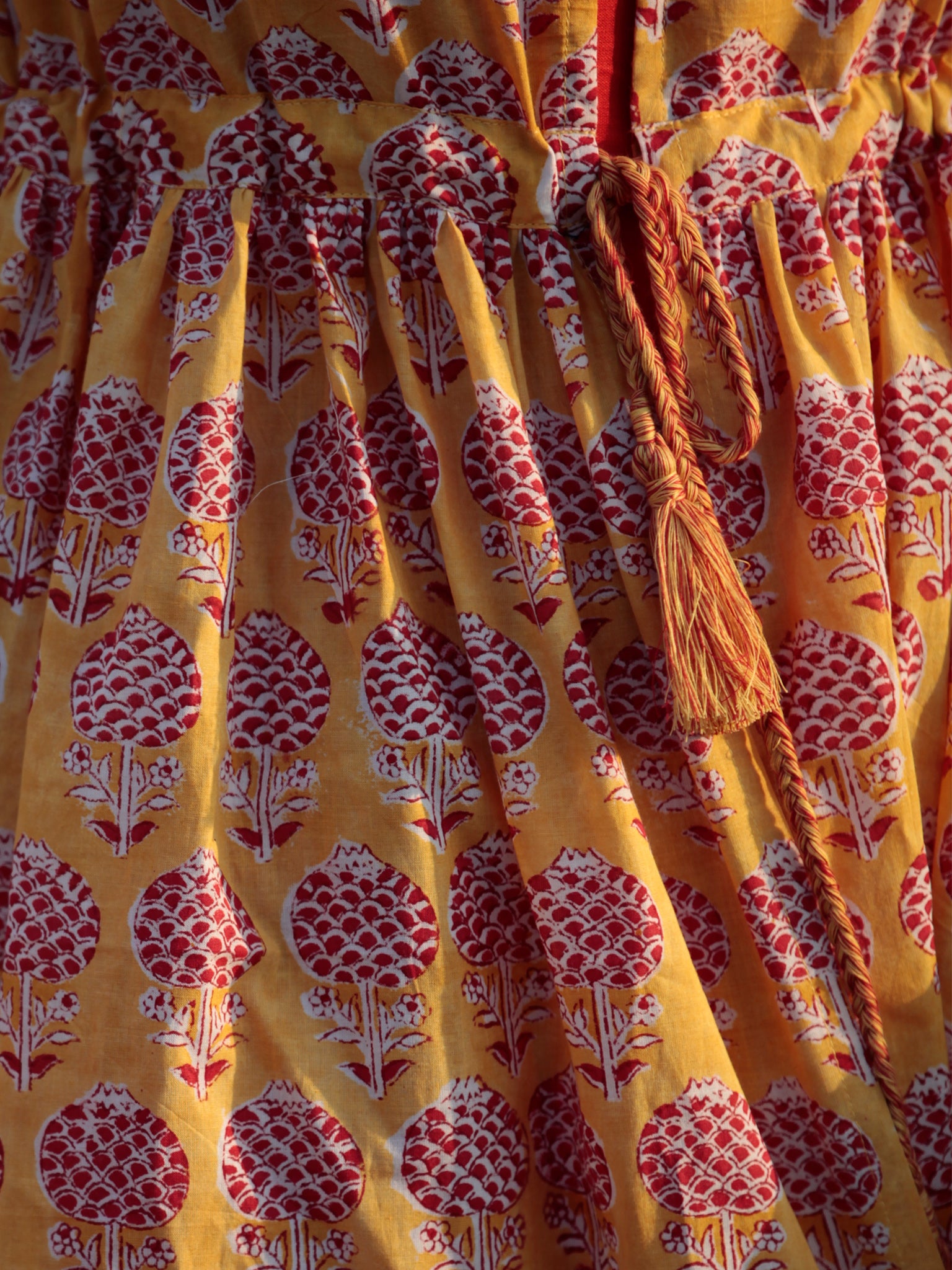 PRODUCT: The fabric of this dress is 100% pure cotton, Hand Block printed in Natural Colors by Artisans in Rajasthan.