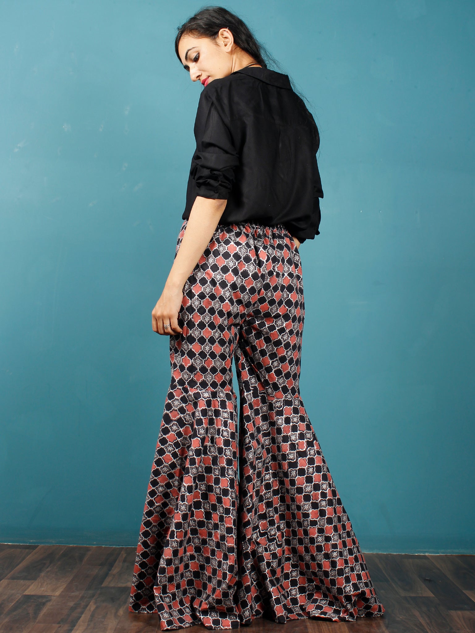 Black Pink Silver Hand Block Printed Semi Elasticated Waist Cotton Sharara - Sh10F897