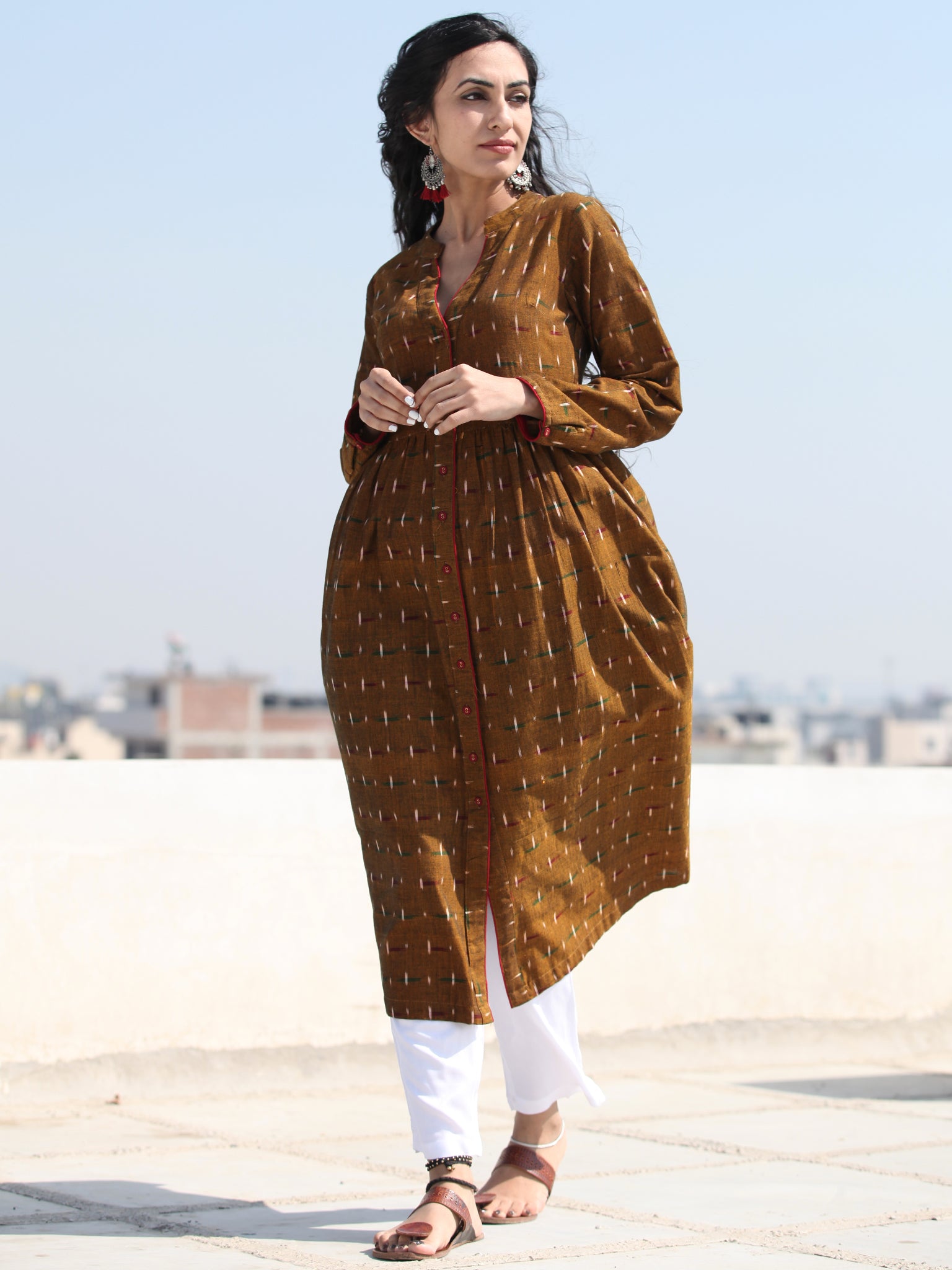 PRODUCT: This Set Contains Ikat Cotton Kurta, Cotton Rayon Elasticated Pants
