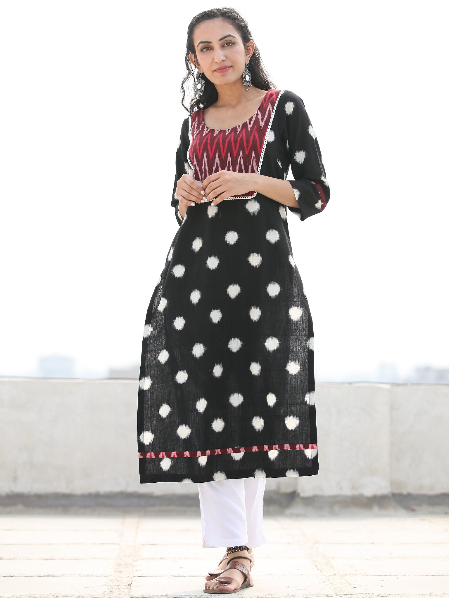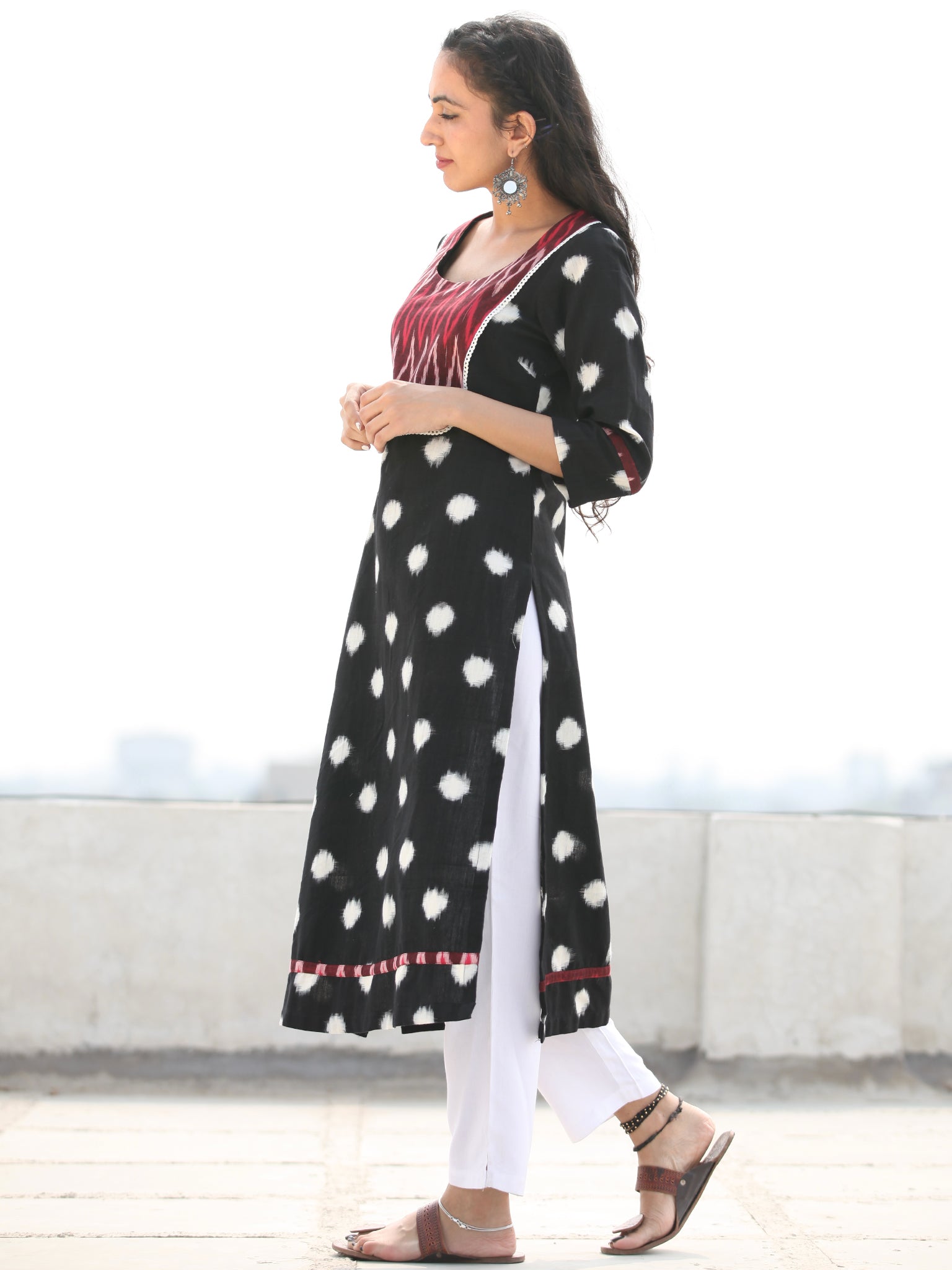 PRODUCT: This Set Contains Ikat Cotton Kurta, Cotton Rayon Elasticated Pants