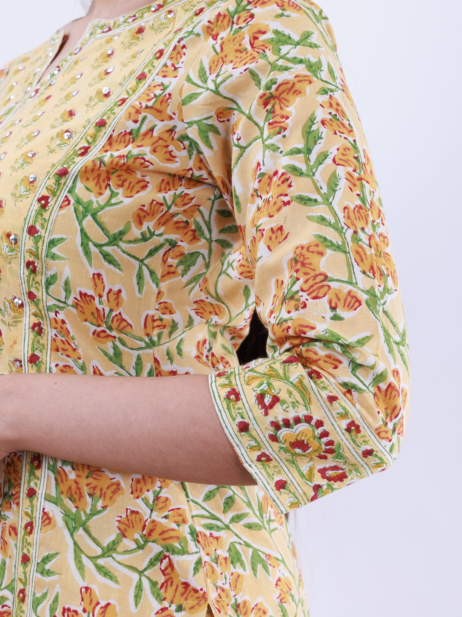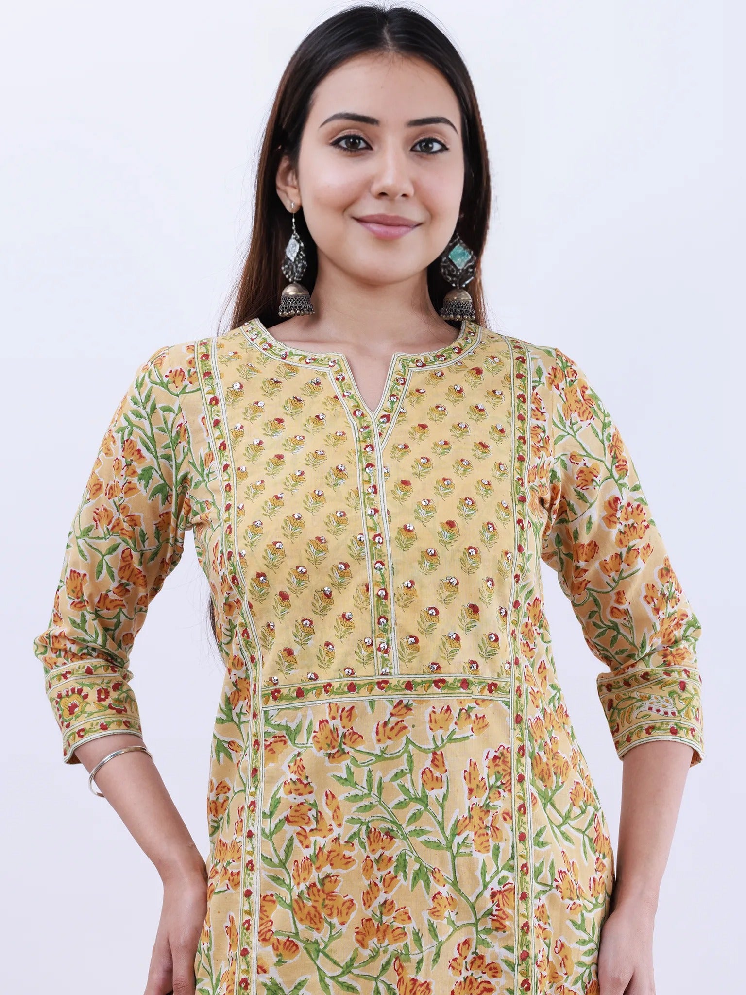 Product: Contains Hand Block Printed Cotton Kurta. Matching Pants/Bottoms and Dupatta are also available separately under BUY THE LOOK section.