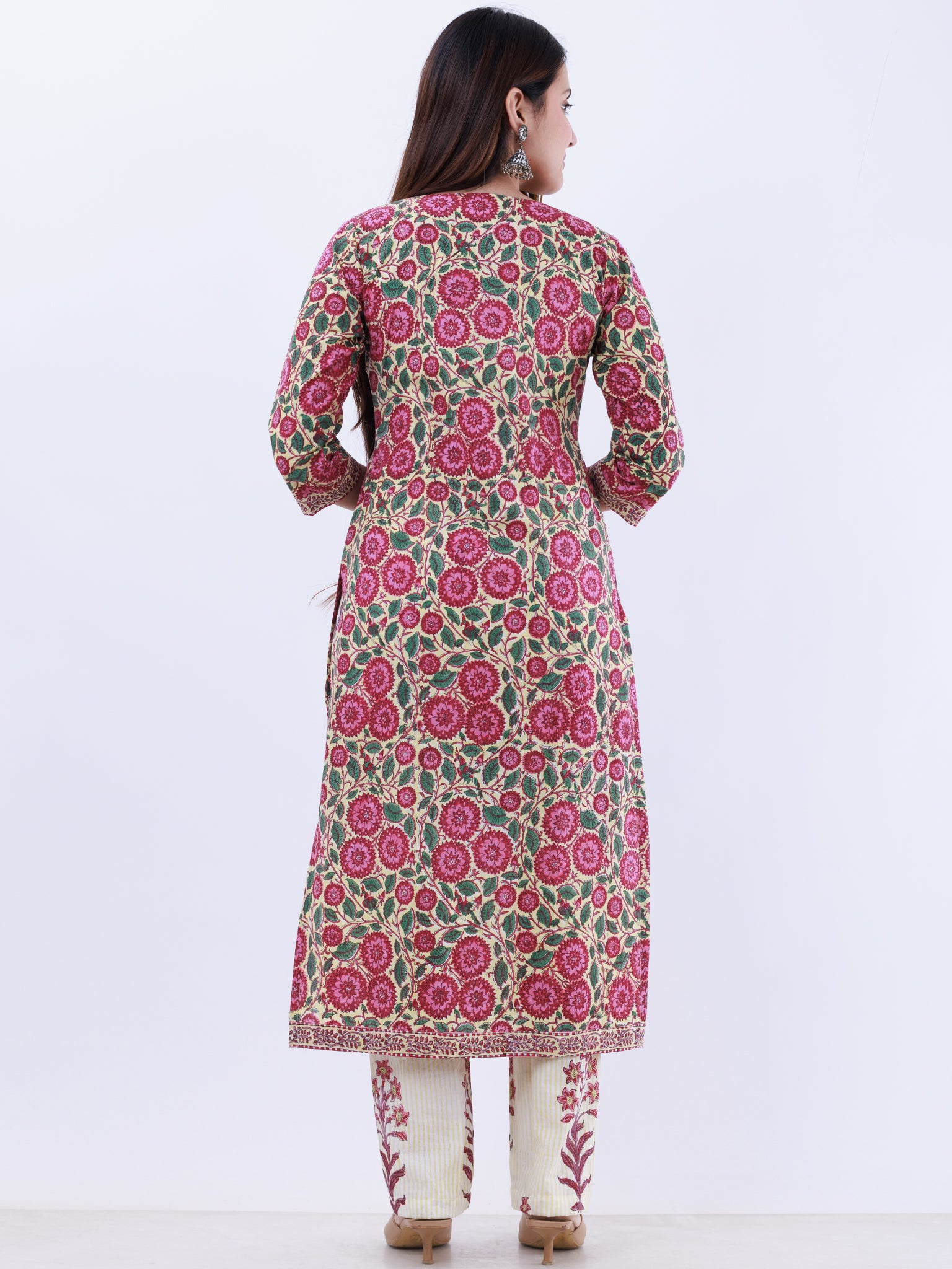 Product: Contains Hand Block Printed Cotton Kurta. Matching Pants/Bottoms and Dupatta are also available separately under BUY THE LOOK section.