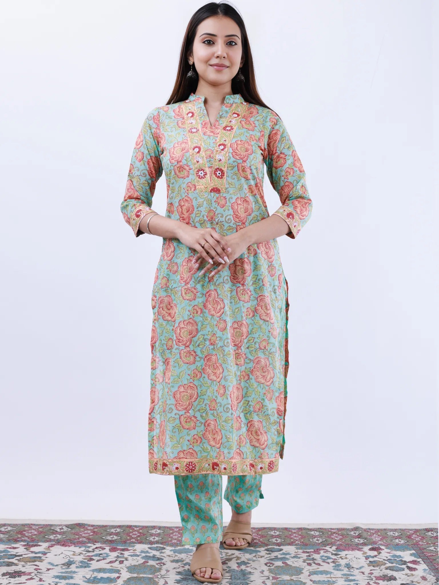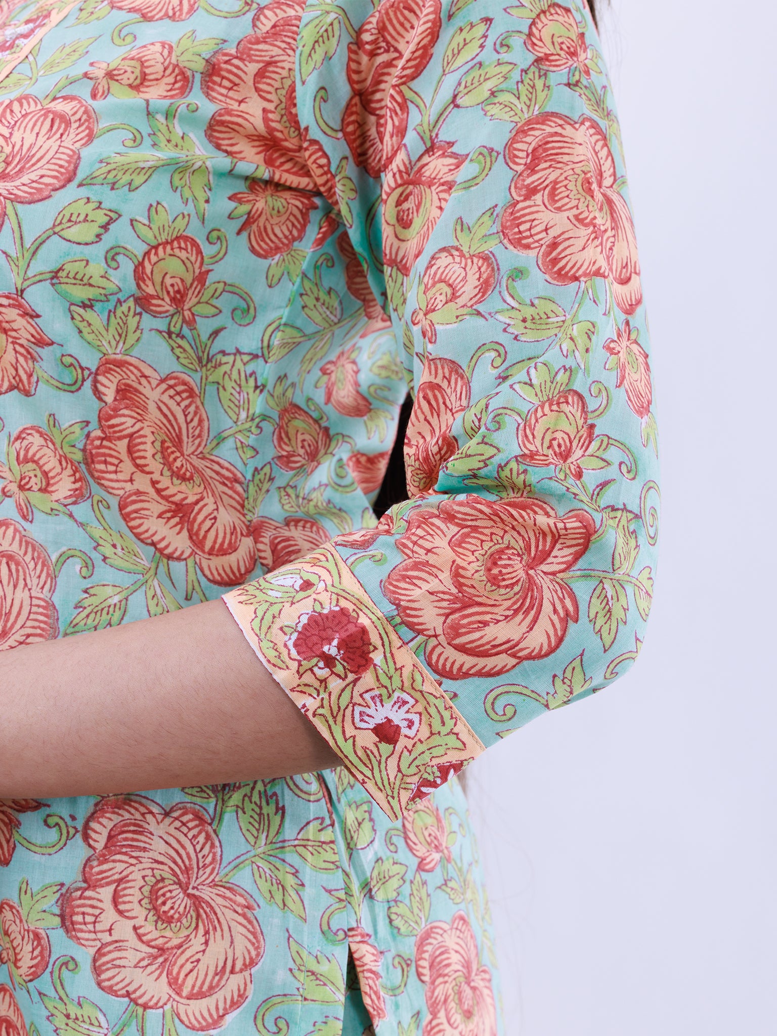 Product: Contains Hand Block Printed Cotton Kurta. Matching Pants/Bottoms and Dupatta are also available separately under BUY THE LOOK section.