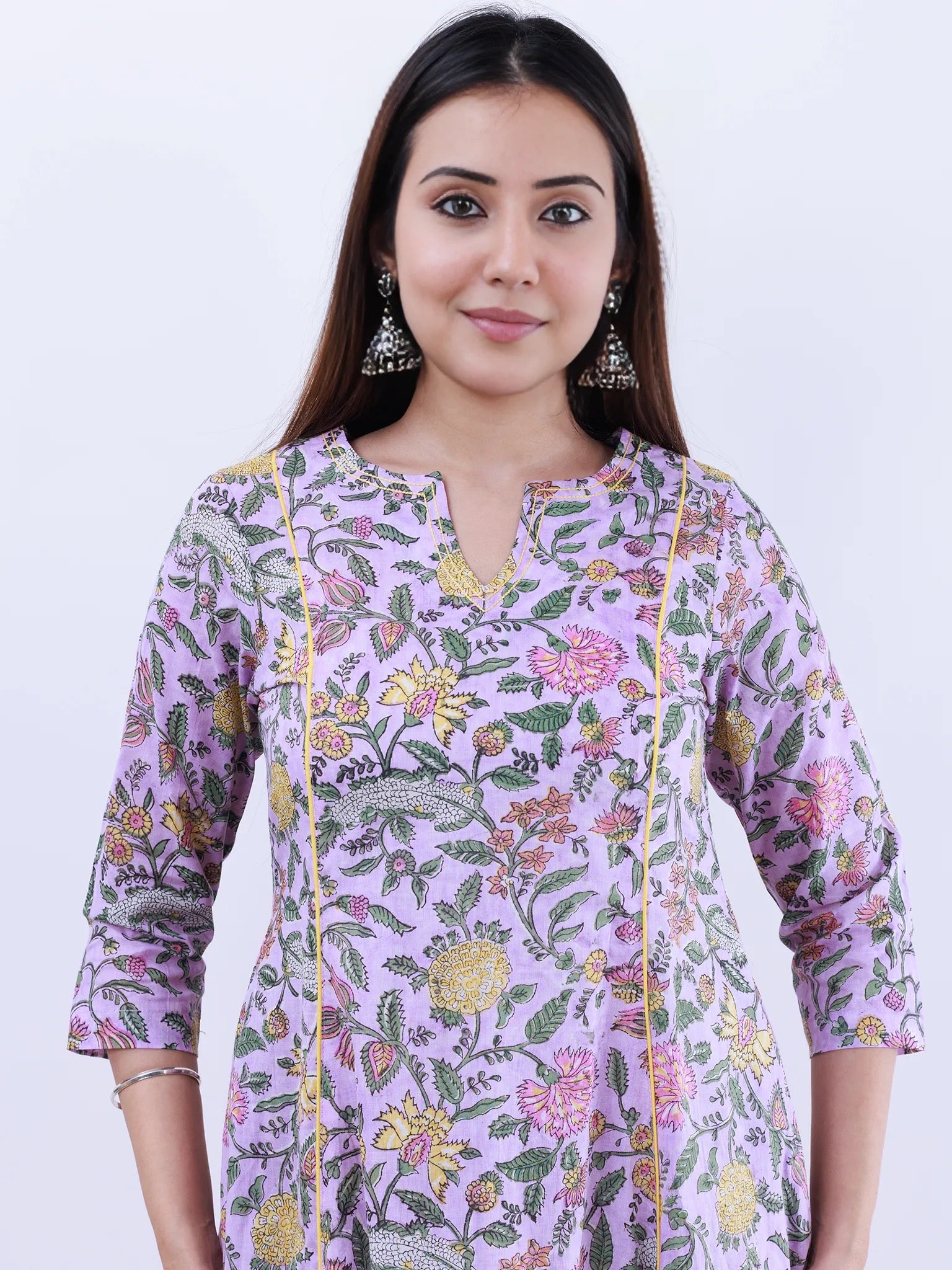 Product: Contains Hand Block Printed Cotton Kurta. Matching Pants/Bottoms and Dupatta are also available separately under BUY THE LOOK section.