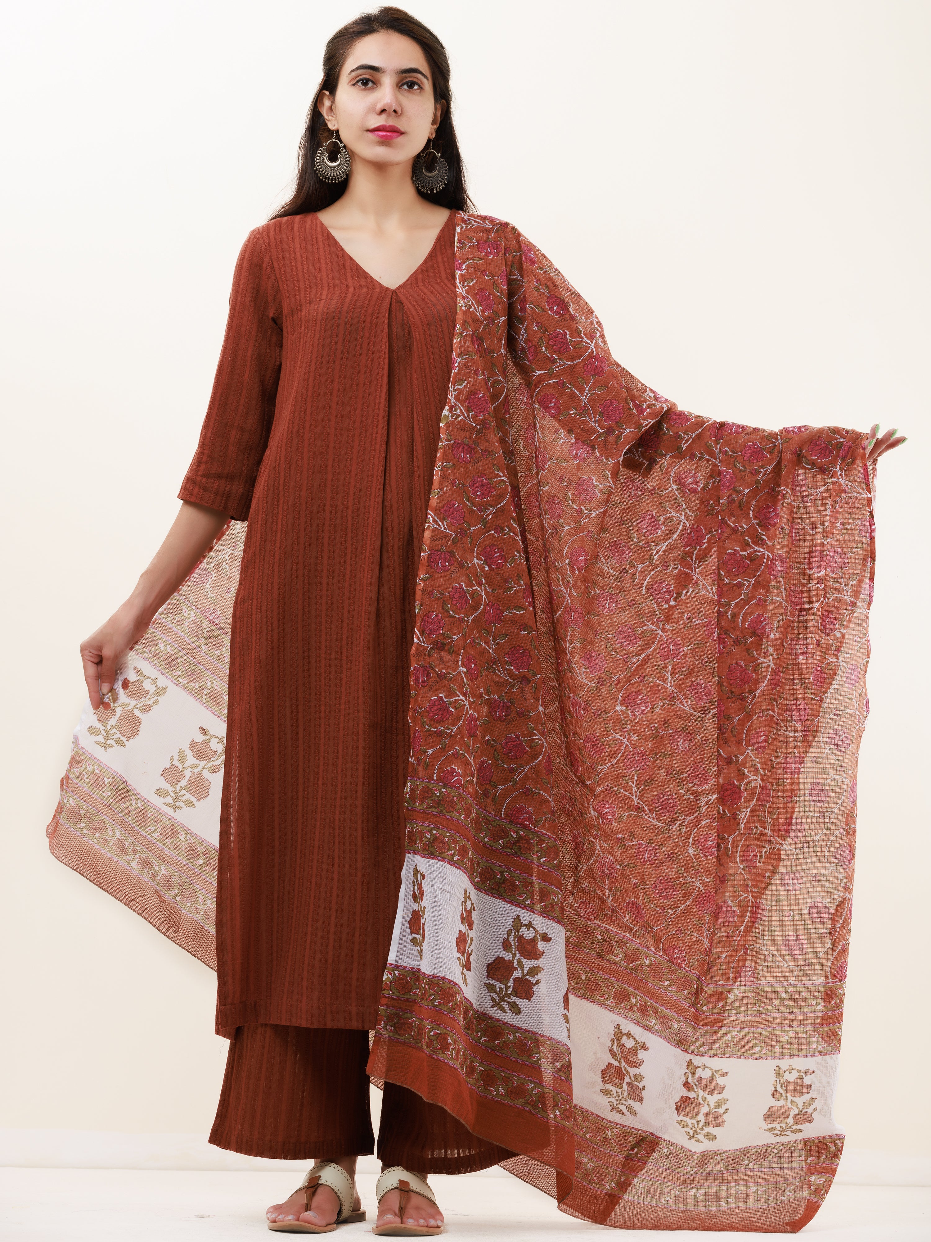 Roz Heena Set Of Kurta Pants Kota Dupatta