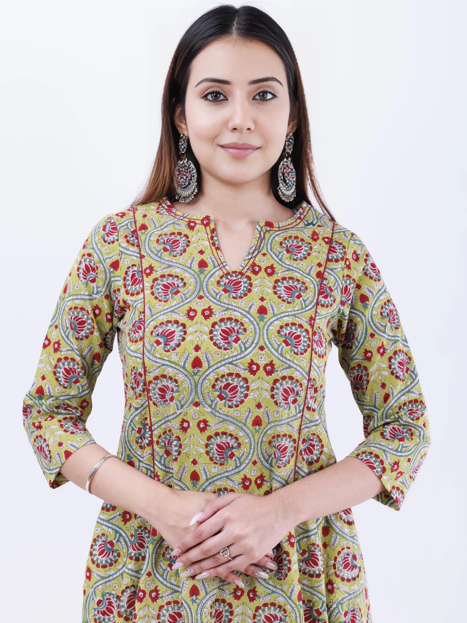 Product: Contains Hand Block Printed Cotton Kurta. Matching Pants/Bottoms and Dupatta are also available separately under BUY THE LOOK section.