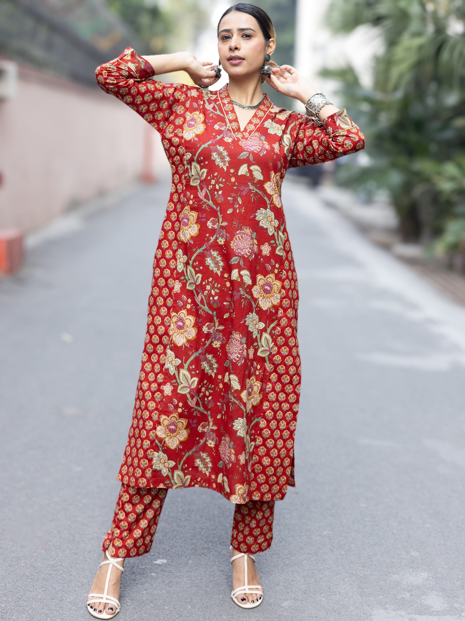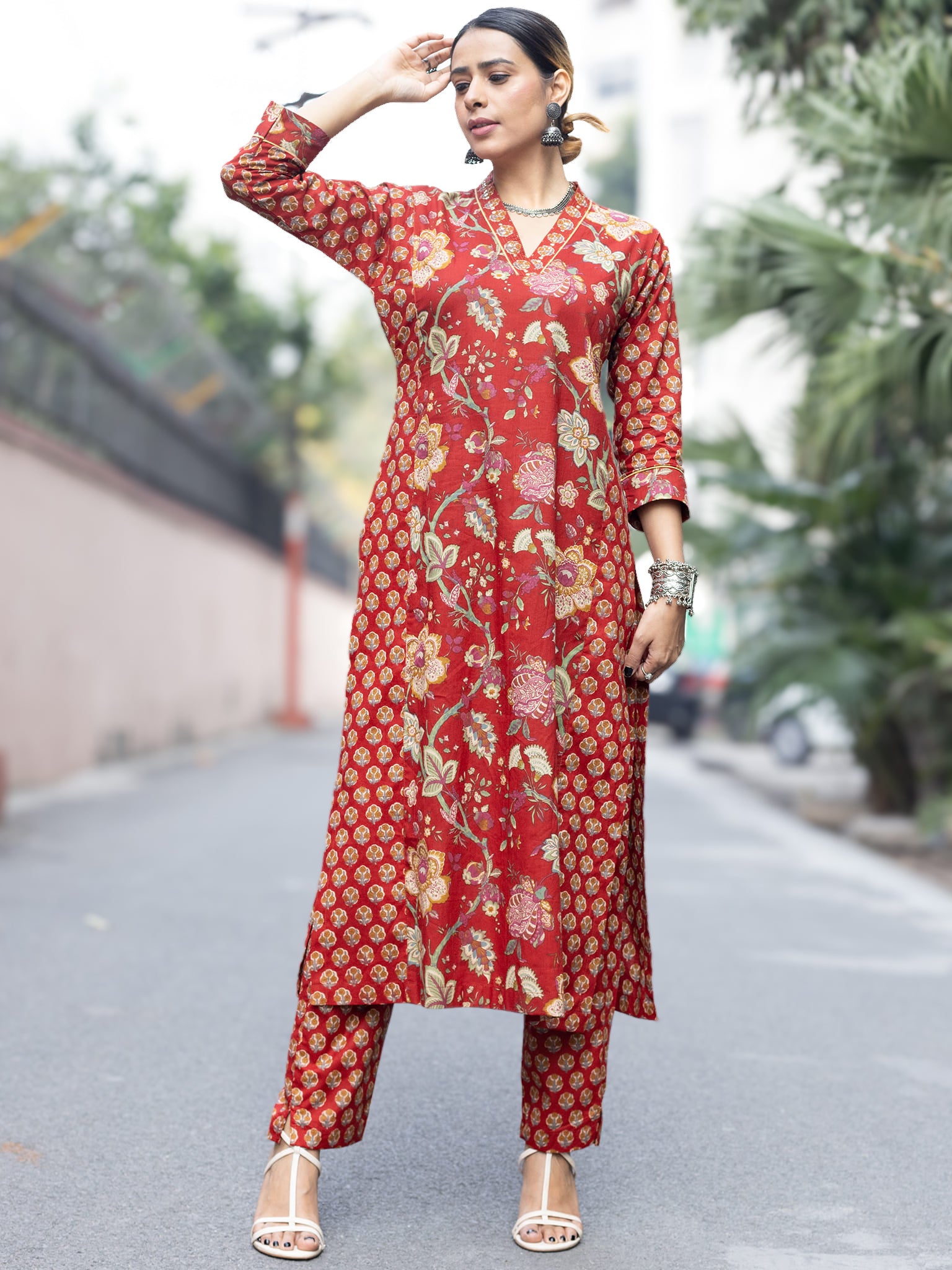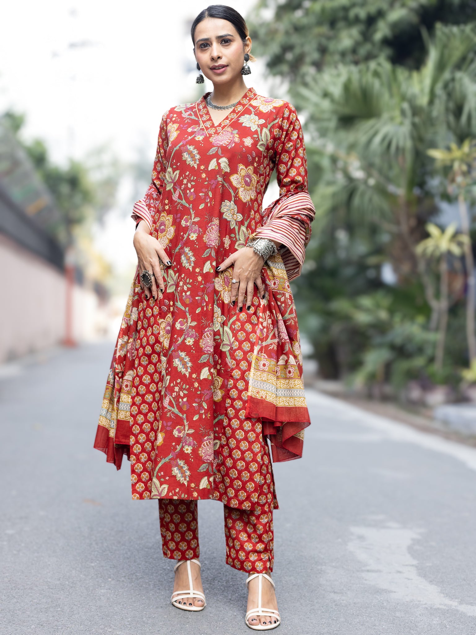 Product: This set contains Handcrafted Sanganeri Premium Cotton Kurta, 100% Cotton Pants and Cotton Dupatta.