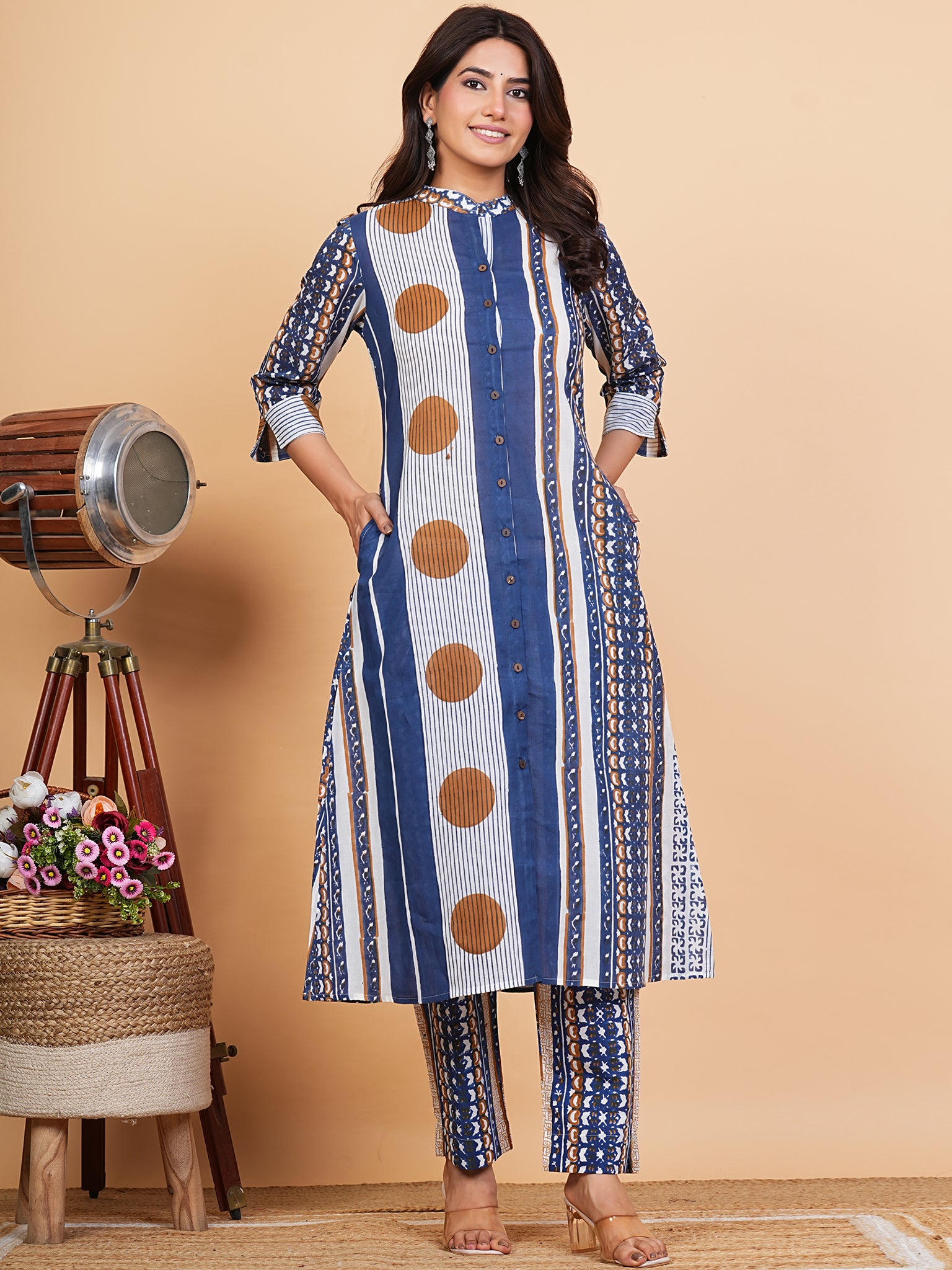 Product: Contains Hand Block Printed Cotton Kurta. Matching Pants/Bottoms and Dupatta are also available separately under BUY THE LOOK section.