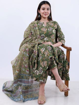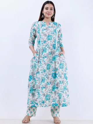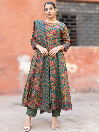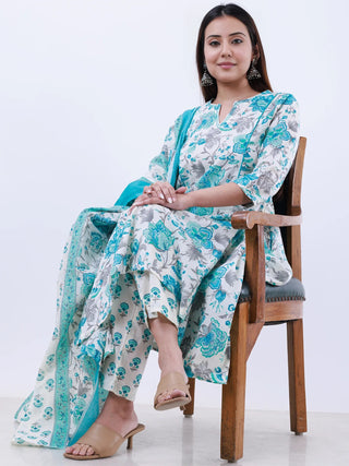 Roz Neh Set Of Kali Kurta Pants Kota Doria Dupatta