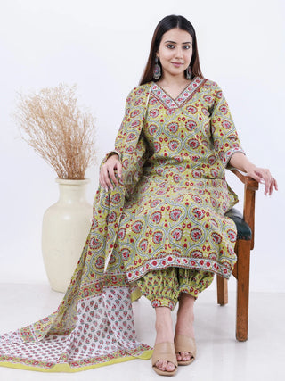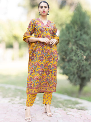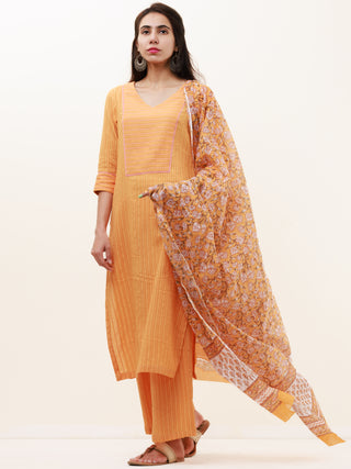 Roz Muskaan Set Of Cotton Slub Kurta Pants Kota Doria Dupatta