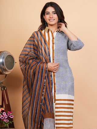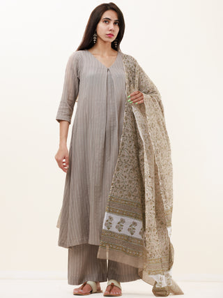 Roz Nagma Set Of Cotton Slub Kurta Pants Kota Doria Dupatta