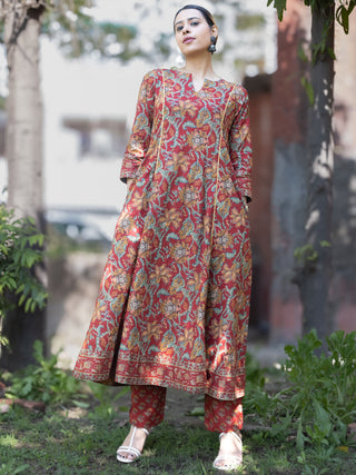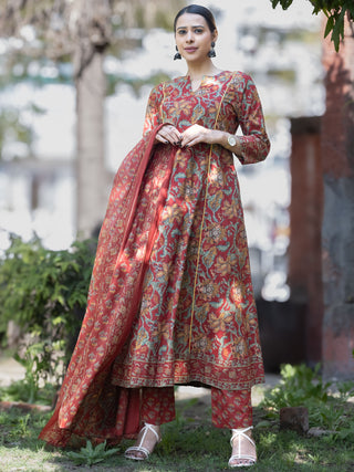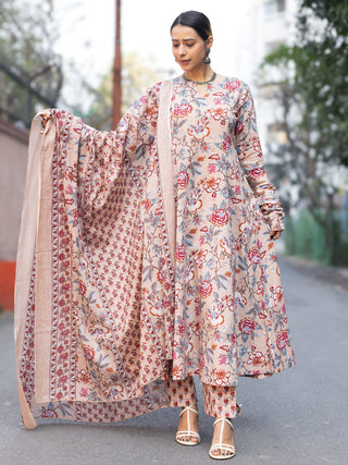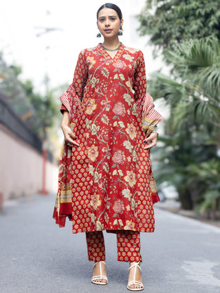 Roz Meher Set Of Kali Kurta Pants Kota Doria Dupatta
