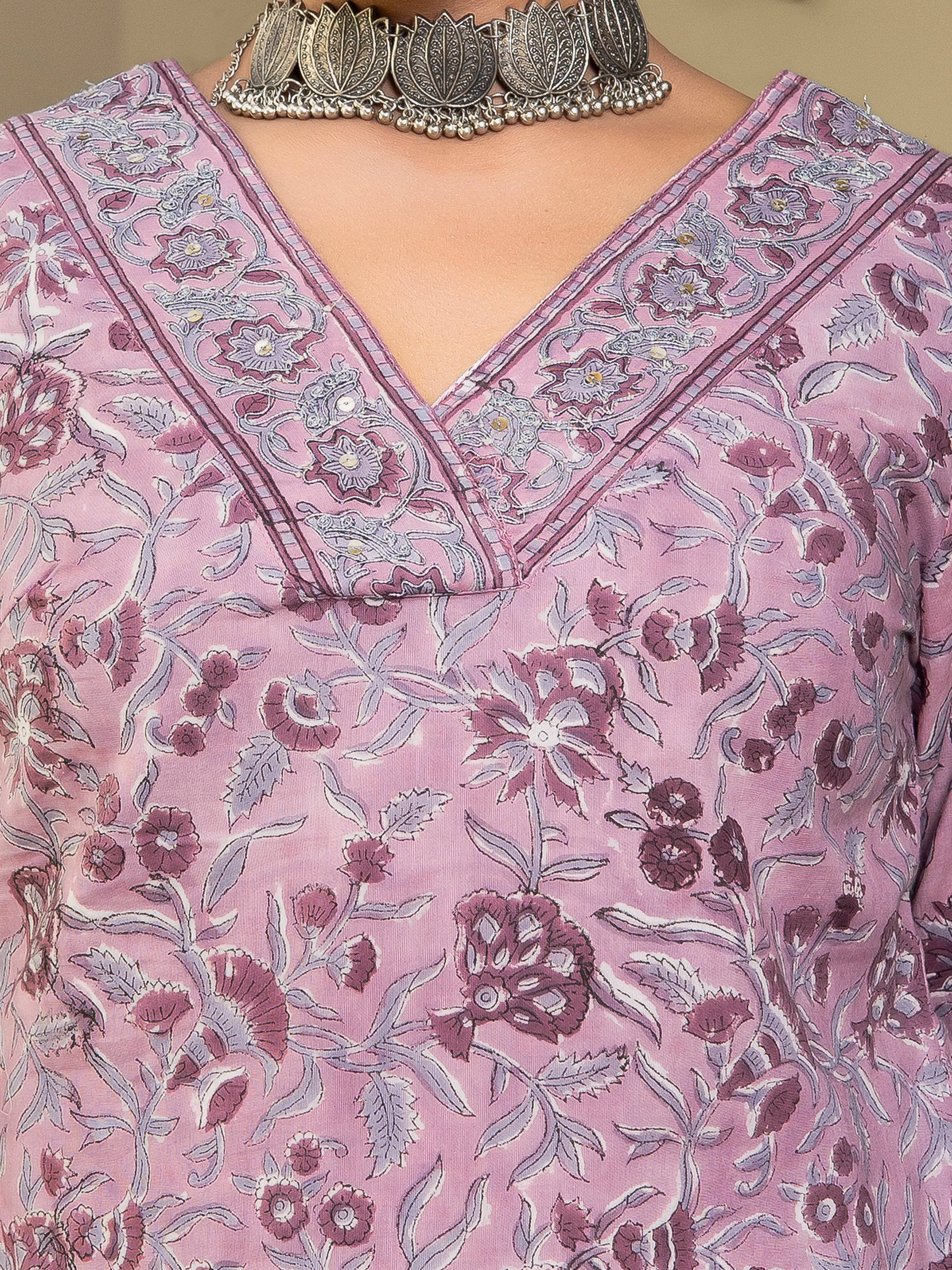 Product: This set contains Handcrafted Sanganeri Premium Cotton Kurta, 100% Cotton Pants and Kota Doria Dupatta.