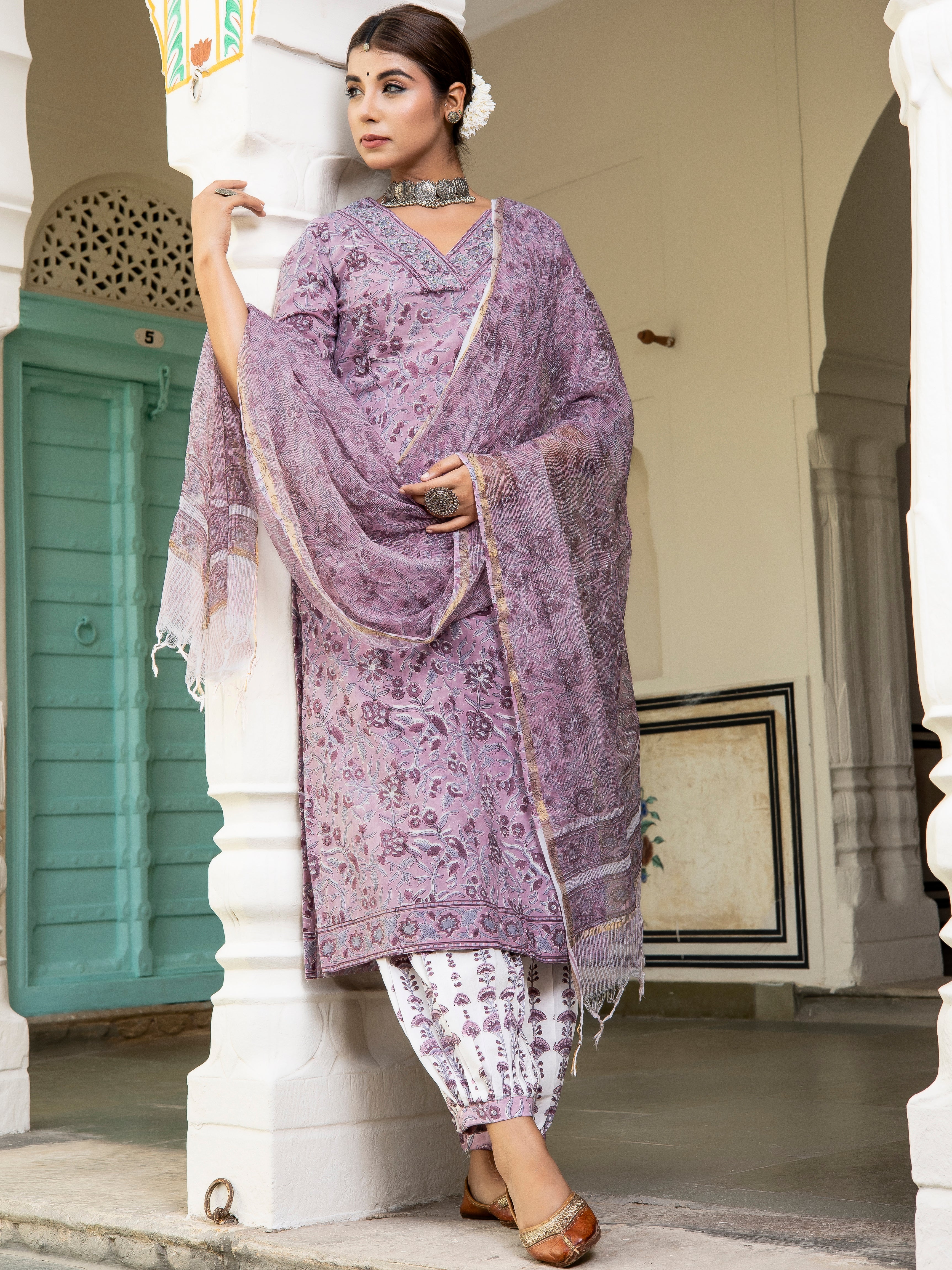 Fabric : Hand Block Printed. Kurta - Cotton. Pants - Cotton, Dupatta - Kota Doria
