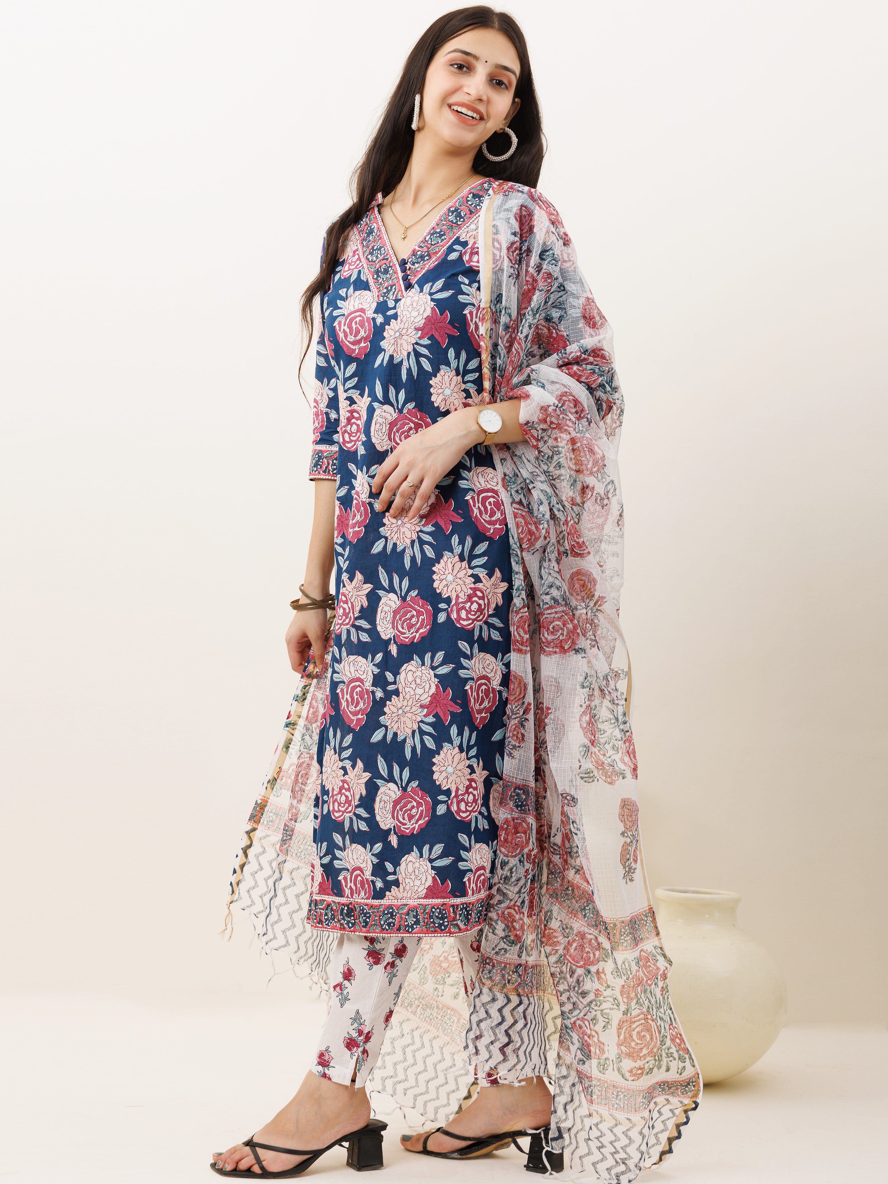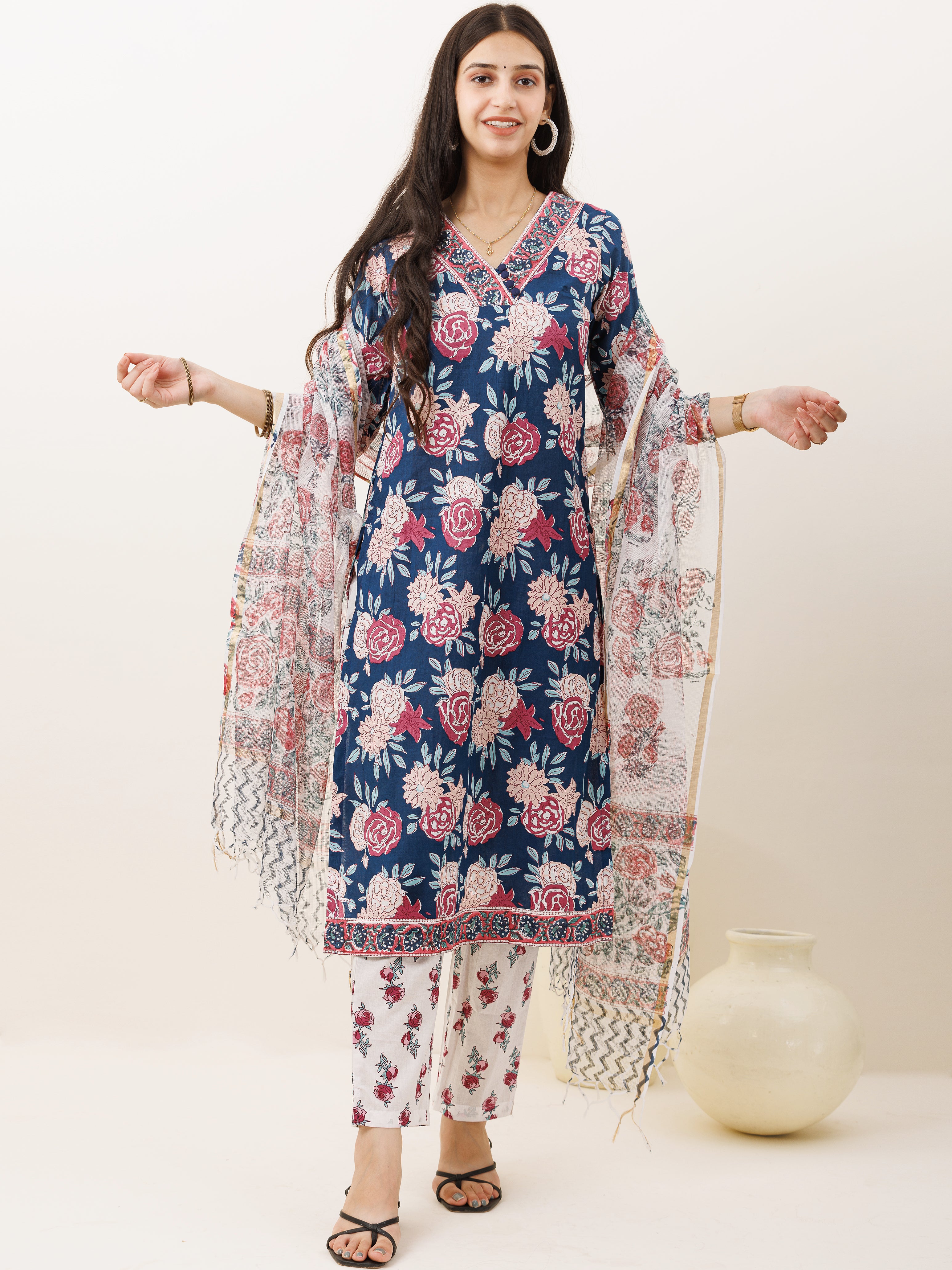 Rozana Nazmil Set Of Kurta Pants Kota Doria Dupatta