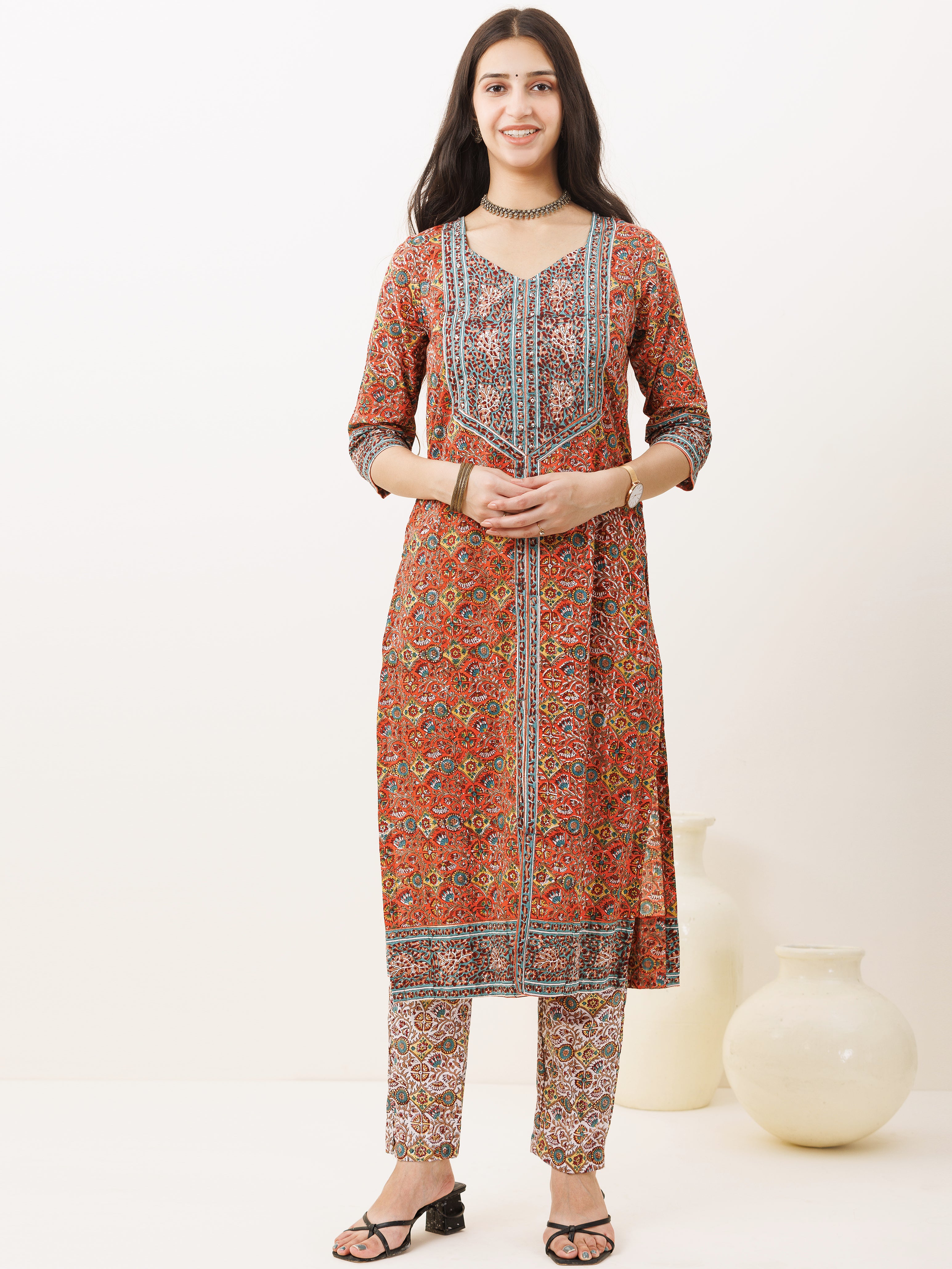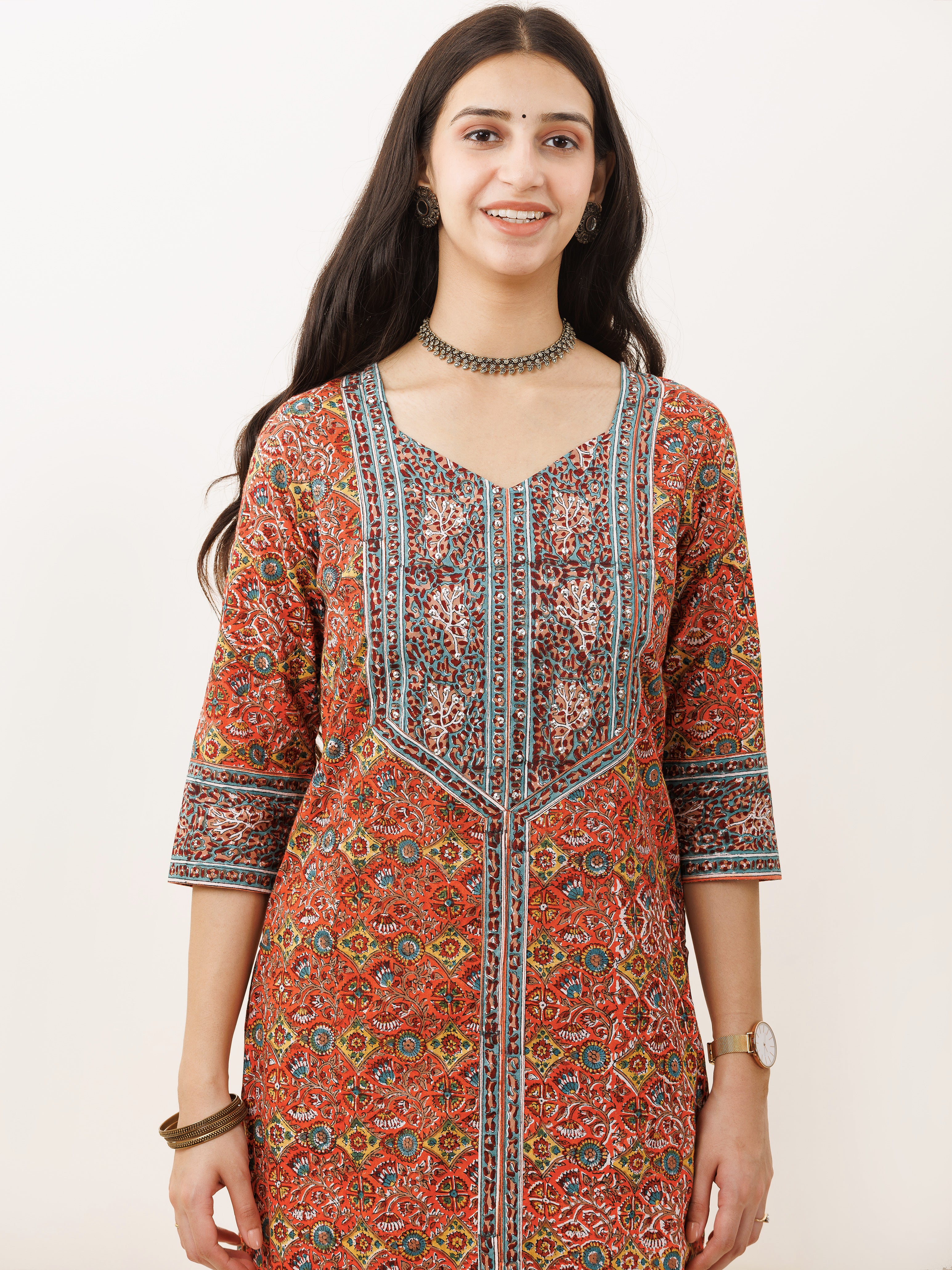 Product: Contains Hand Block Printed Cotton Kurta. Matching Pants/Bottoms and Dupatta are also available separately under BUY THE LOOK section.