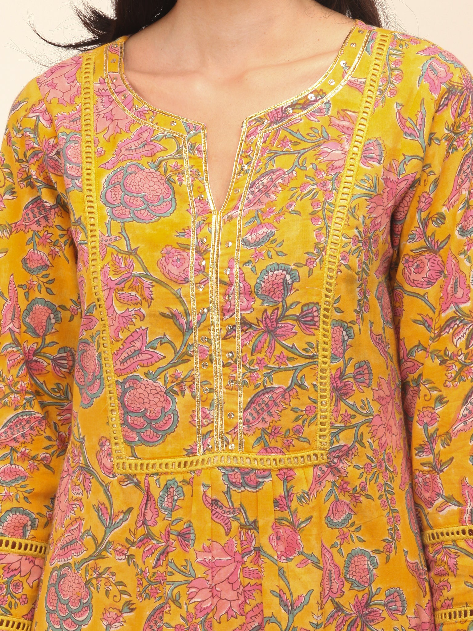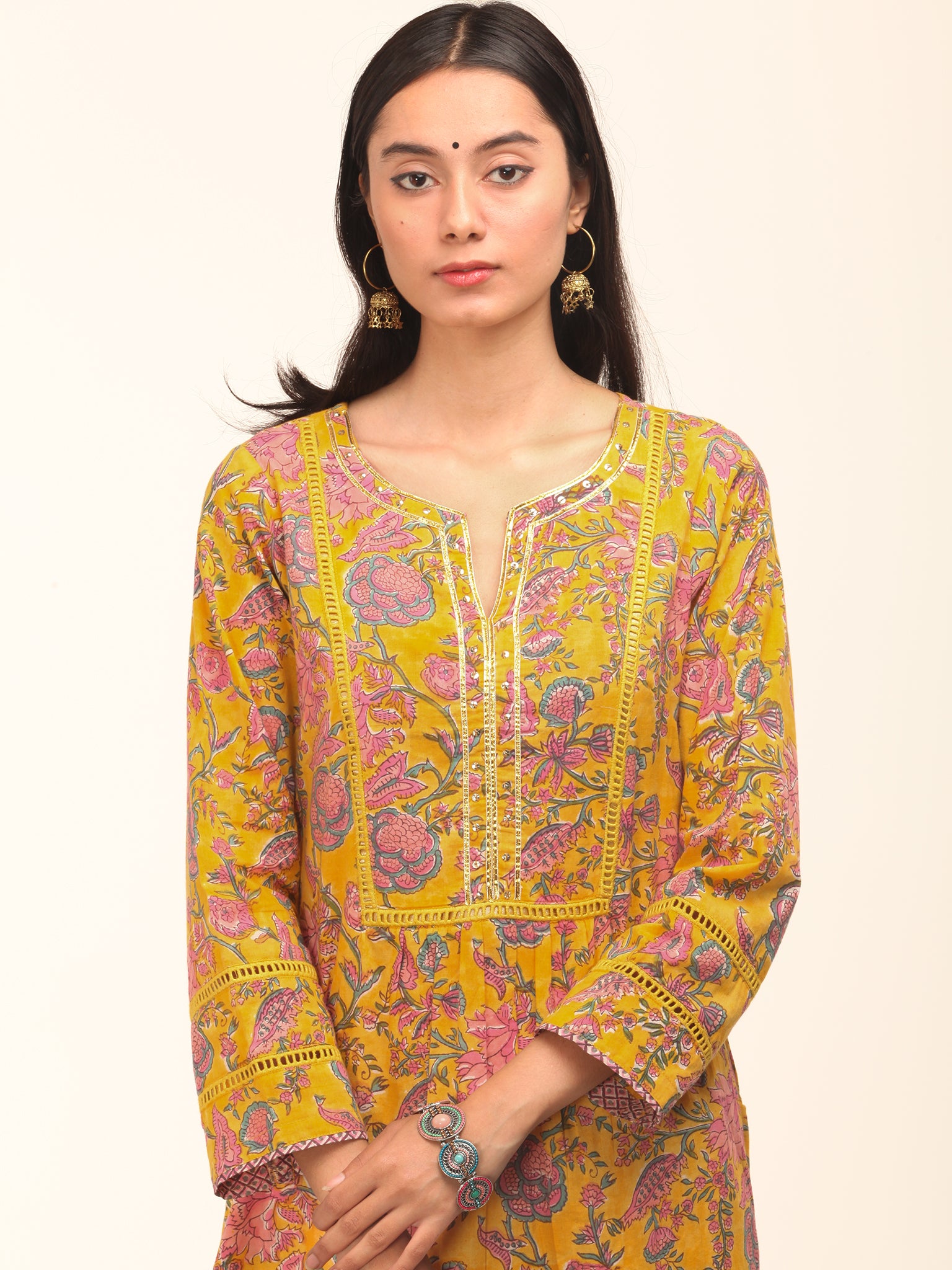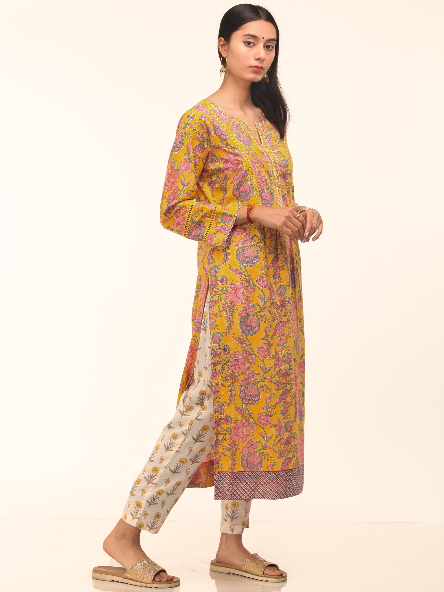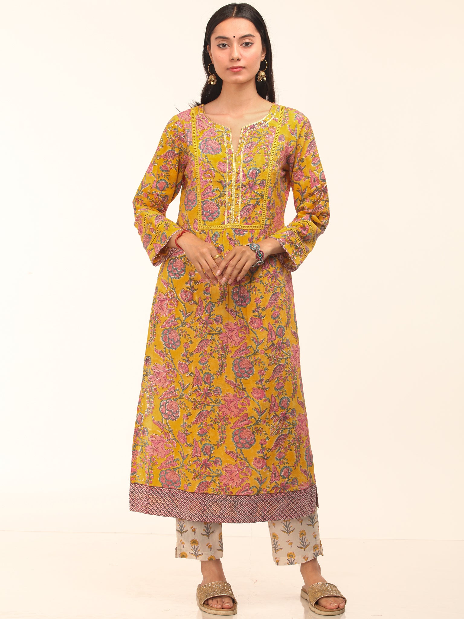 Product: Contains Hand Block Printed Cotton Kurta. Matching Pants/Bottoms and Dupatta are also available separately under BUY THE LOOK section.