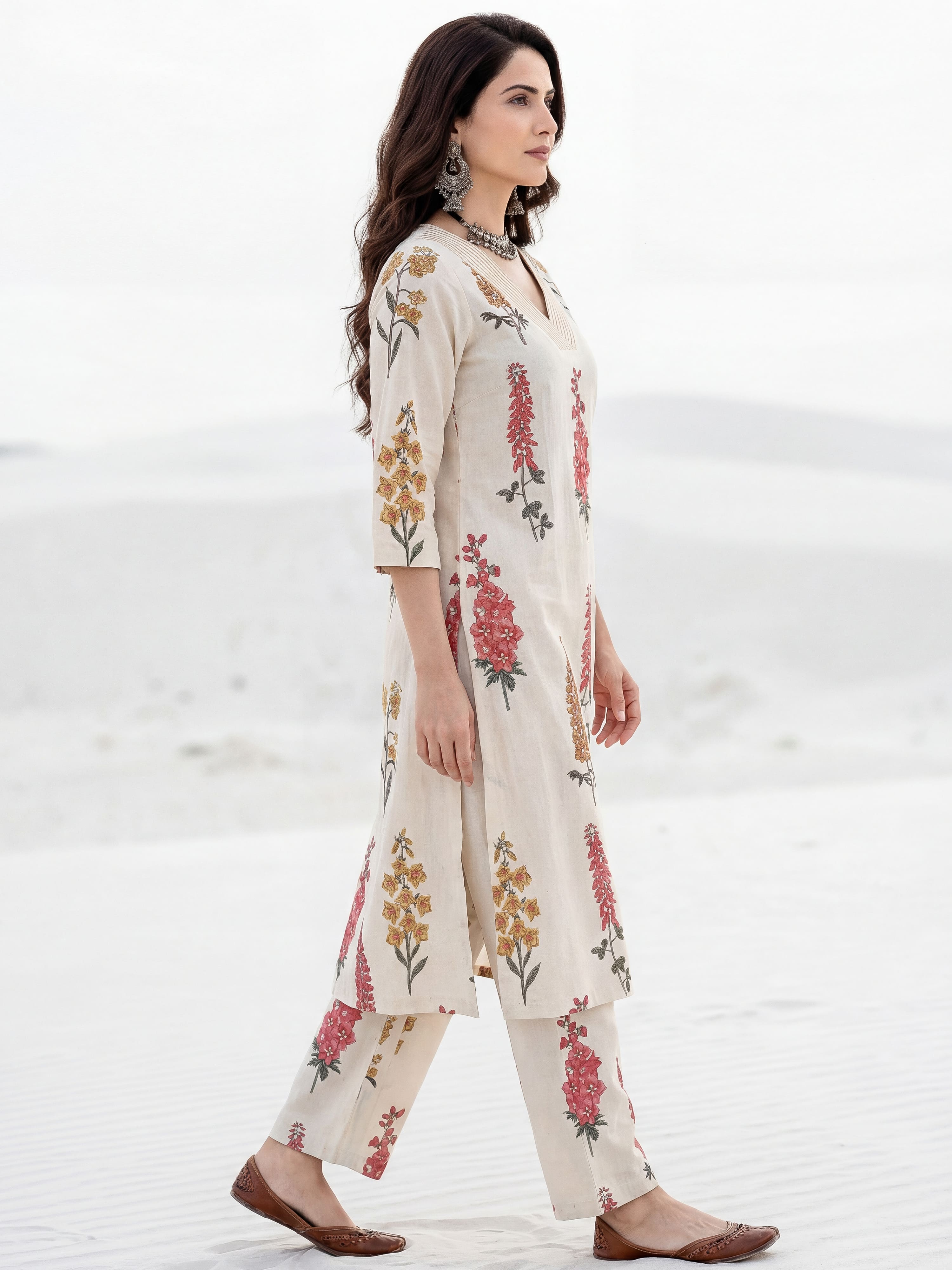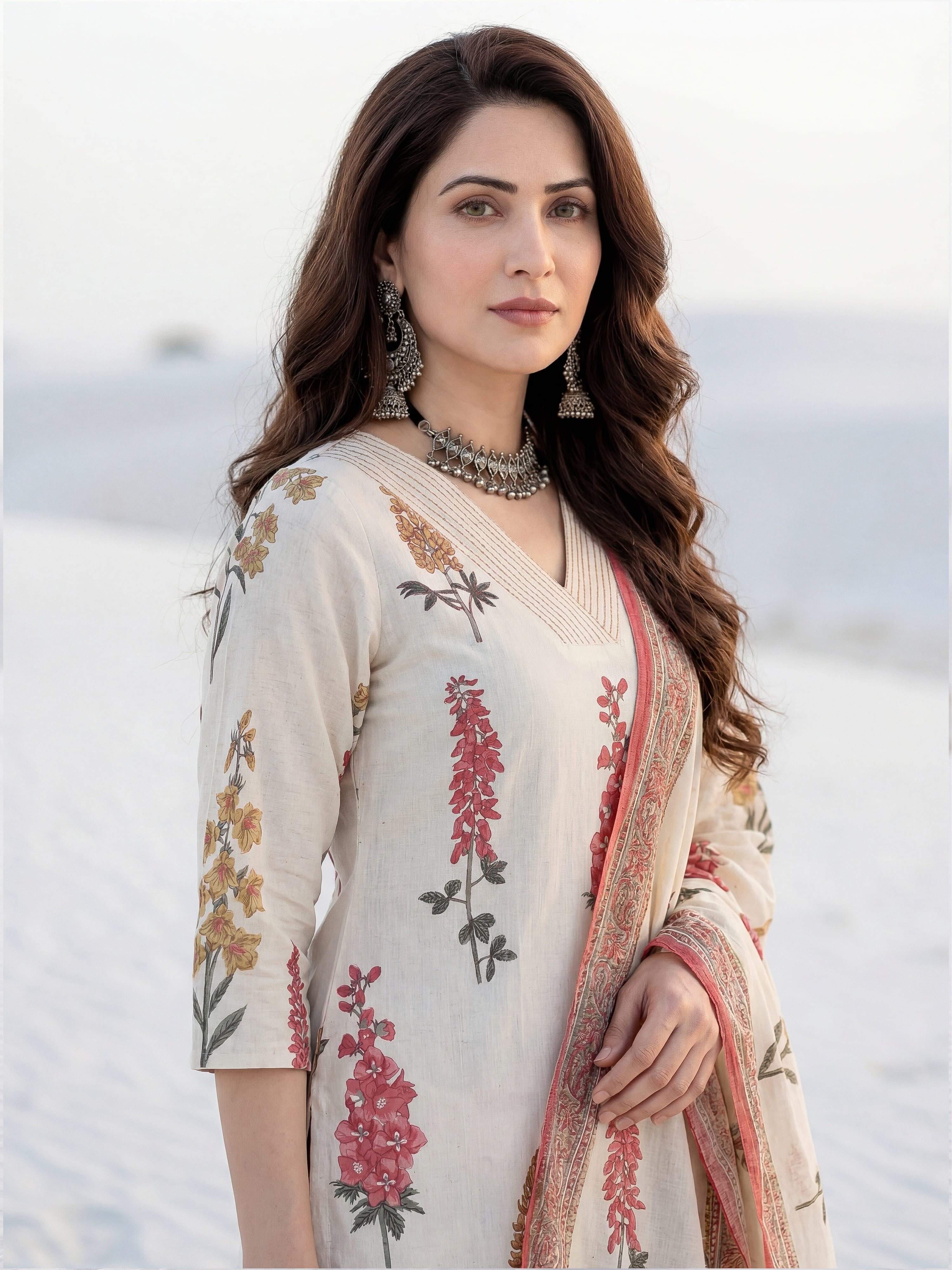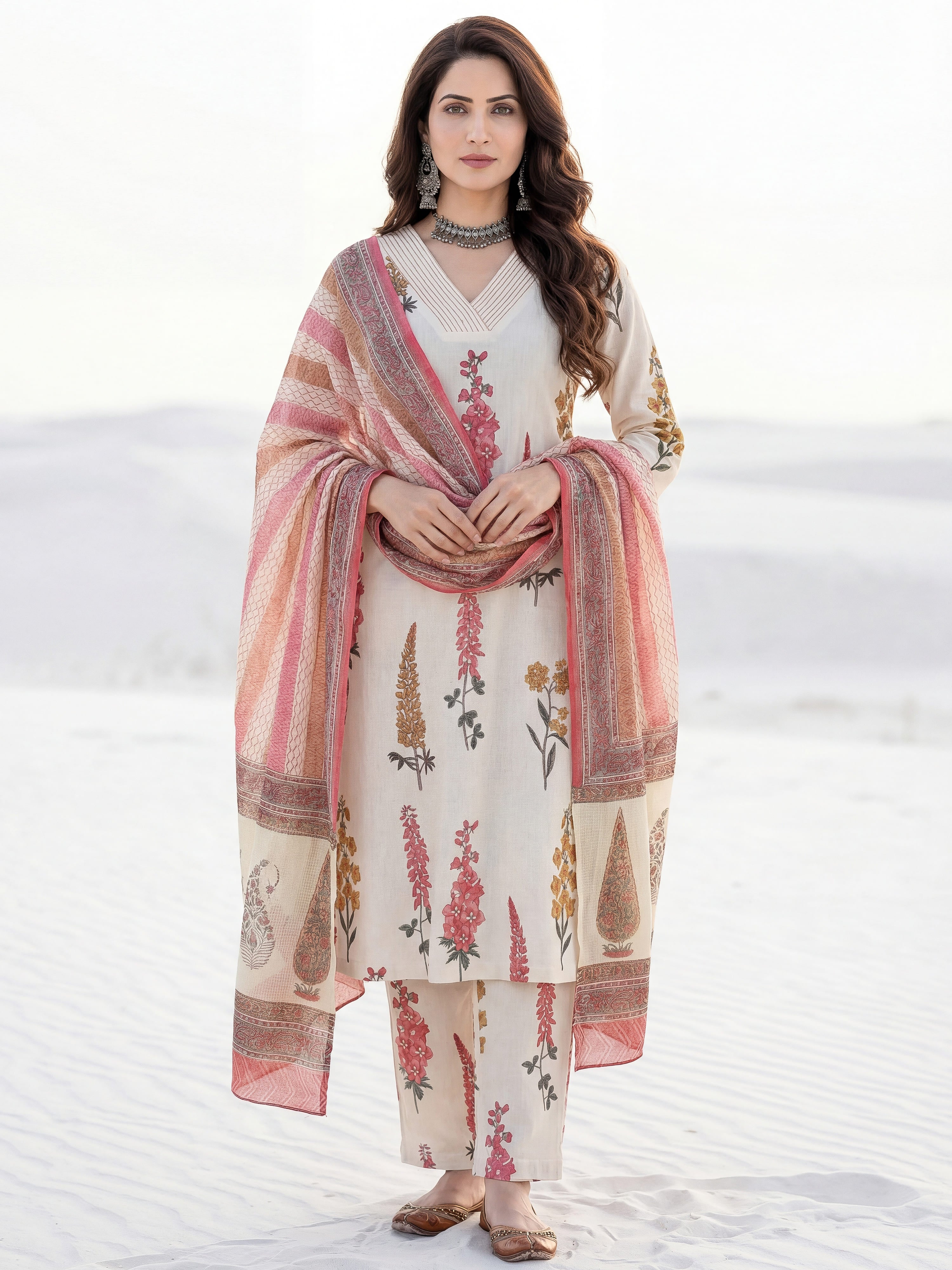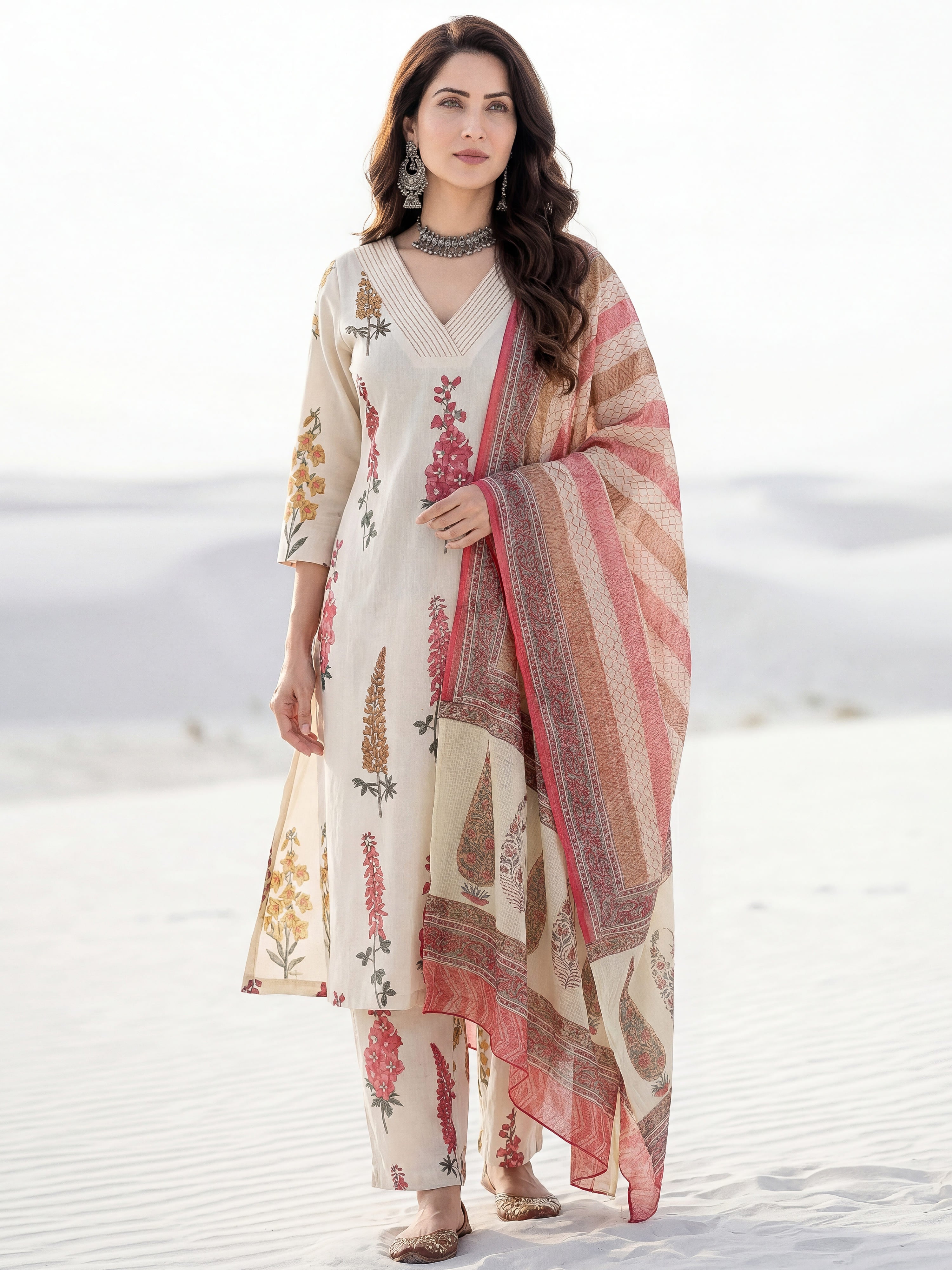 Aina Beena Set Of Kurta Pants Kota Dupatta