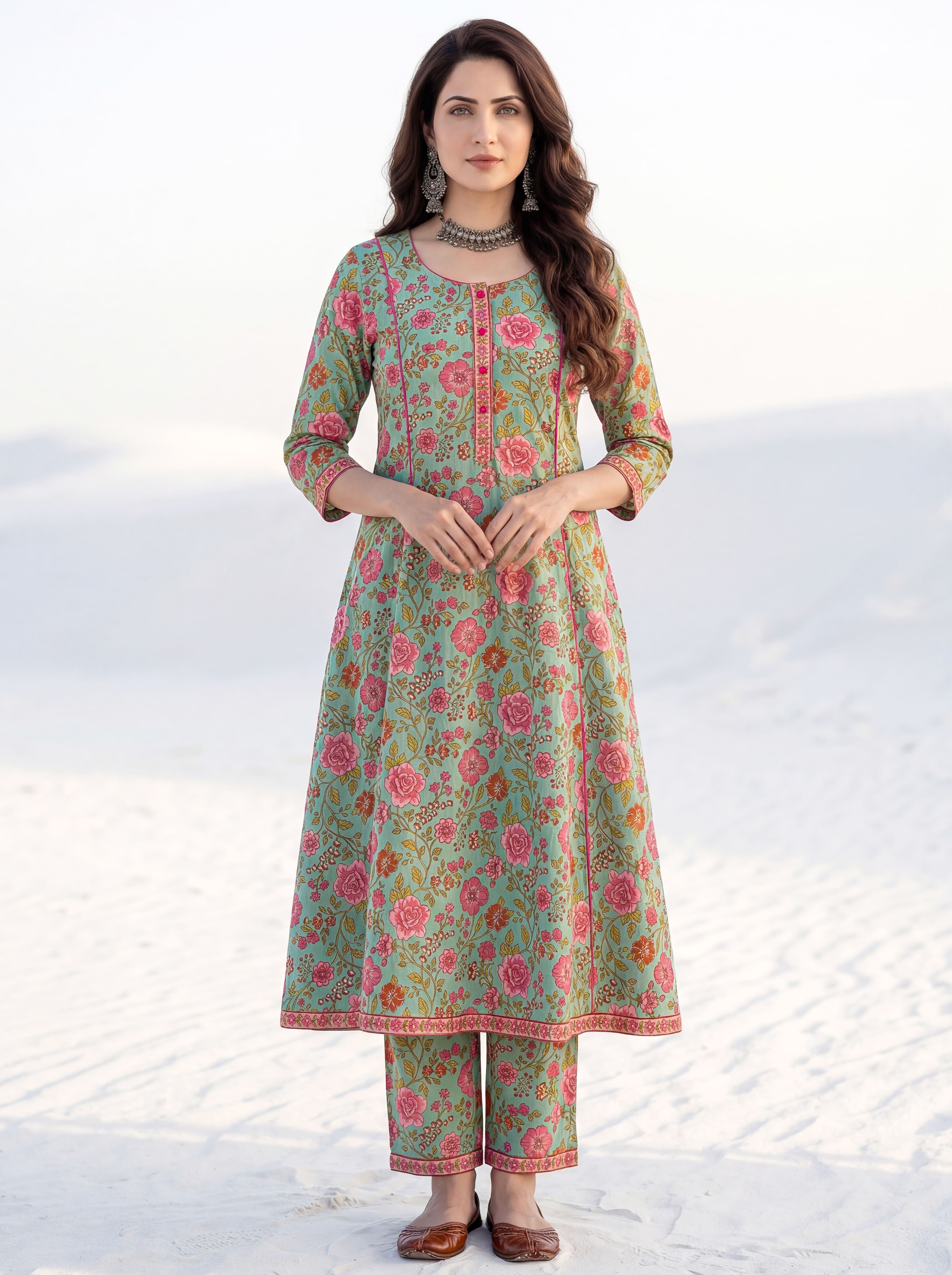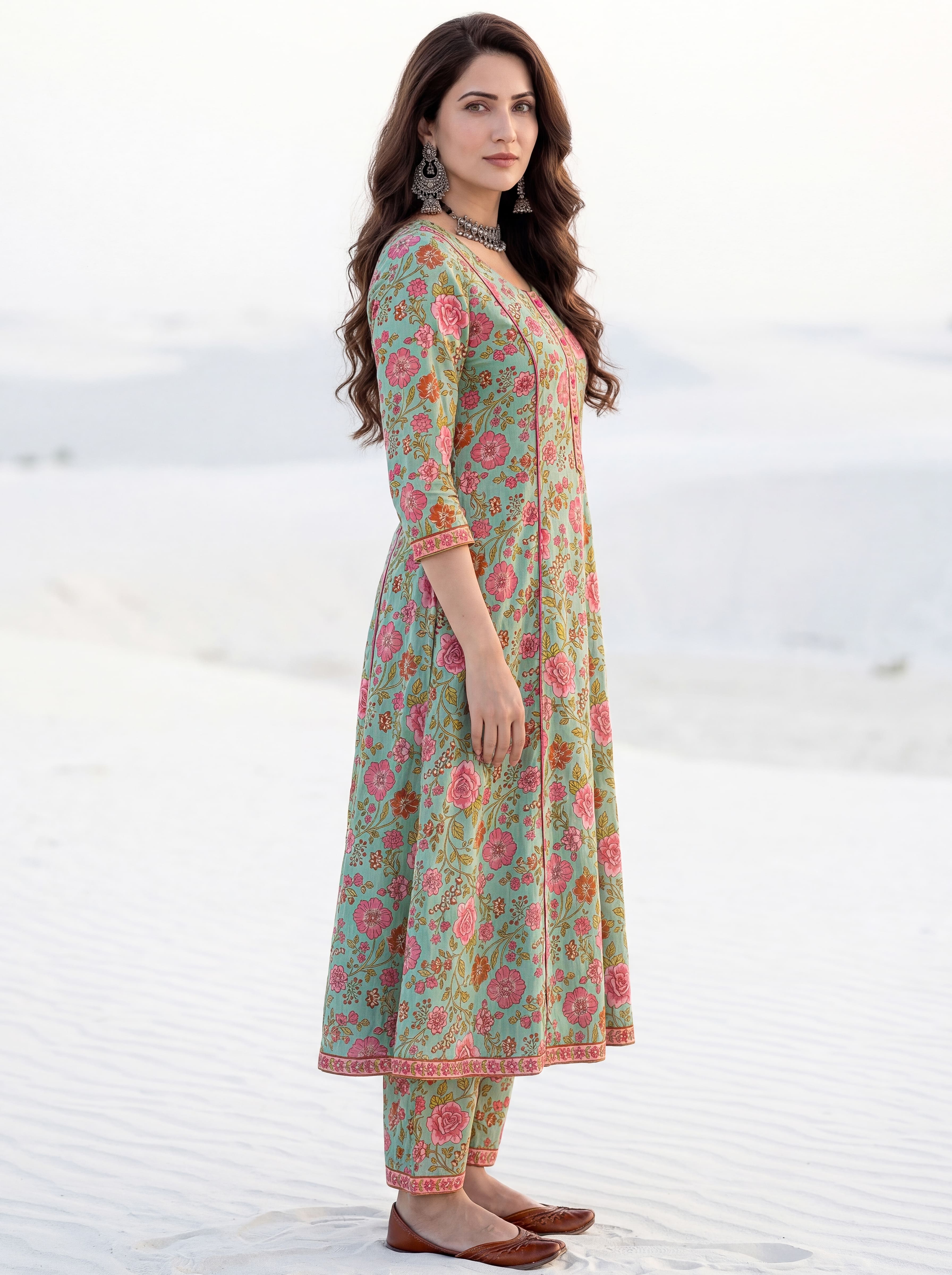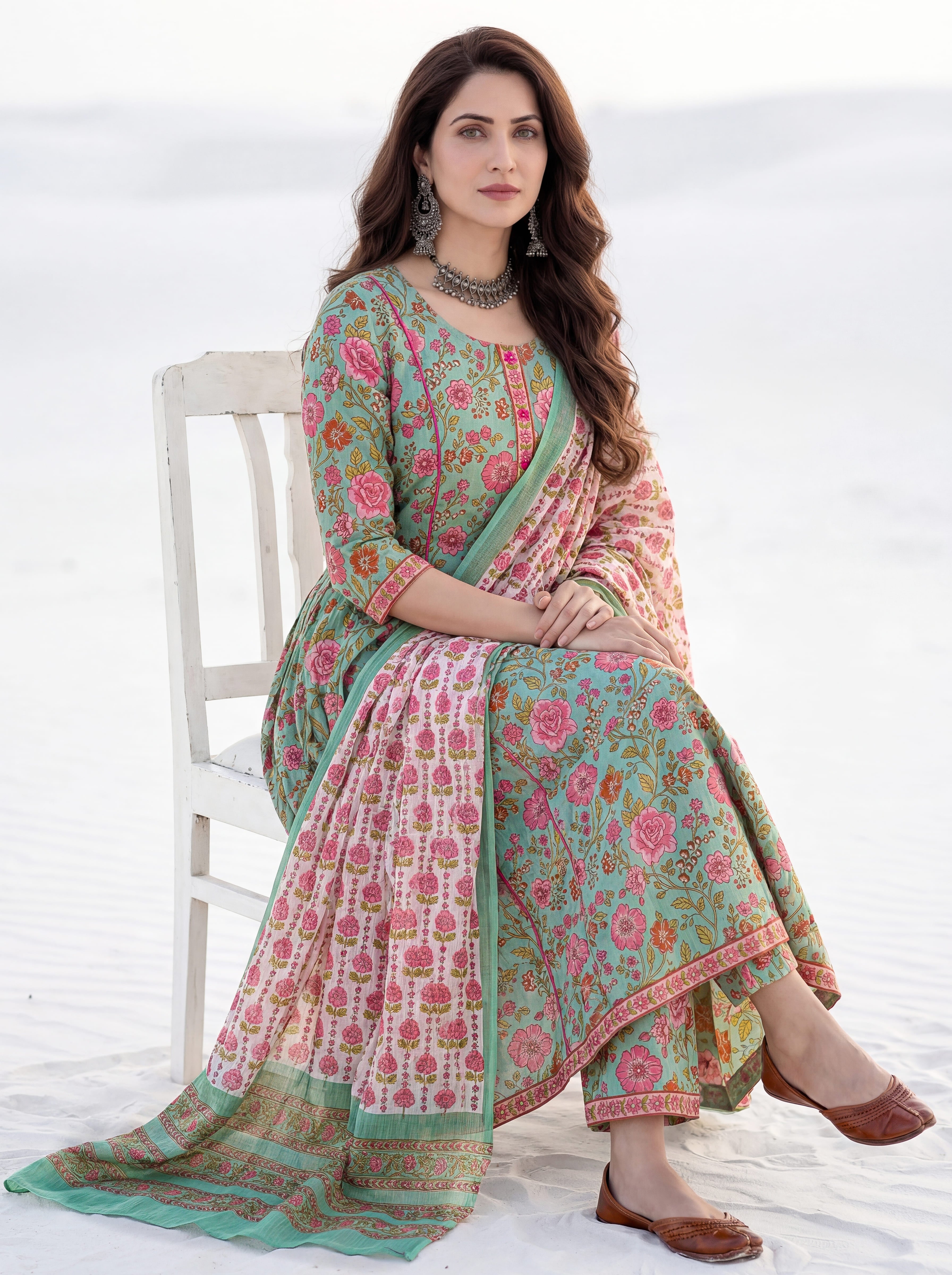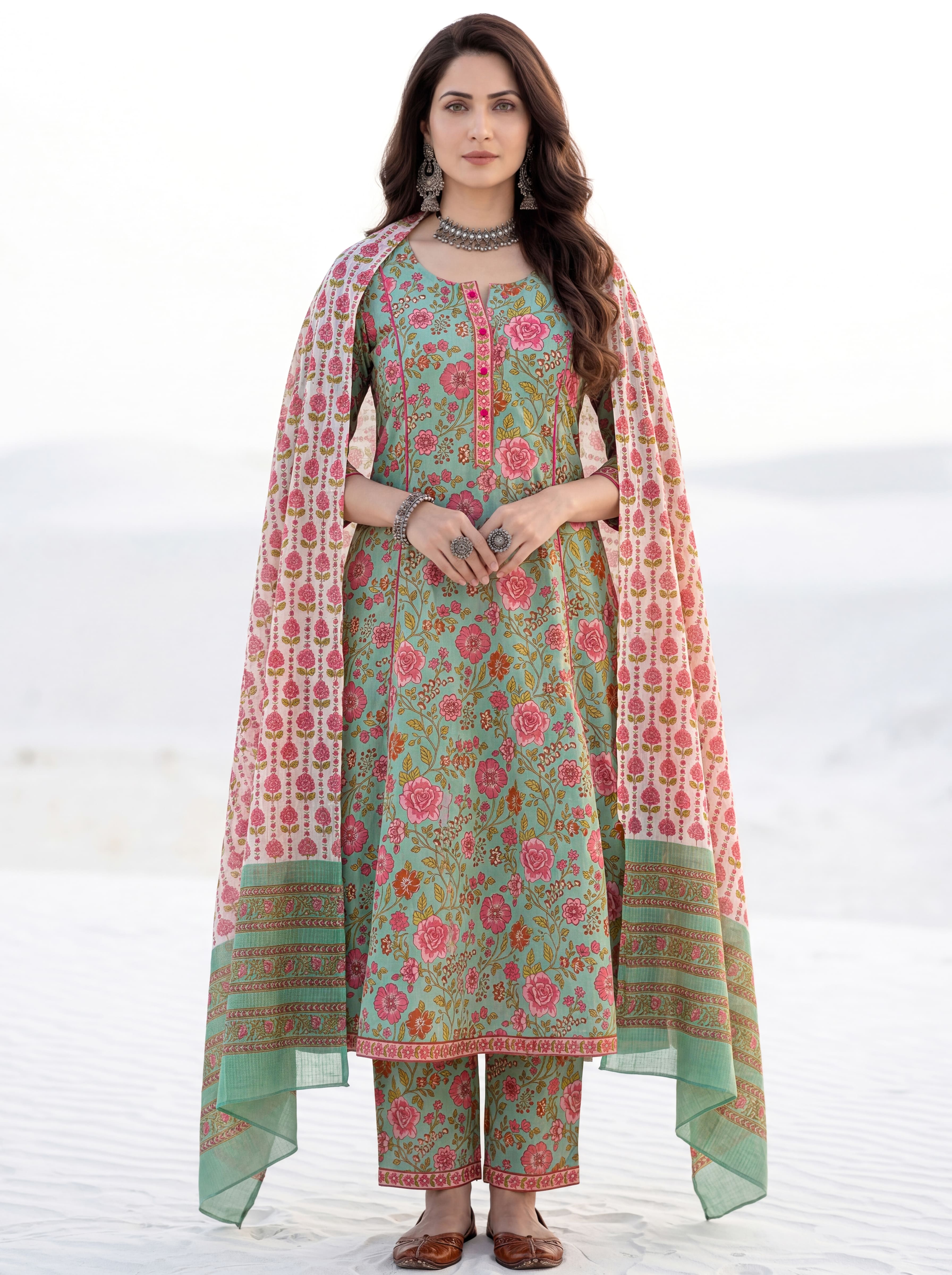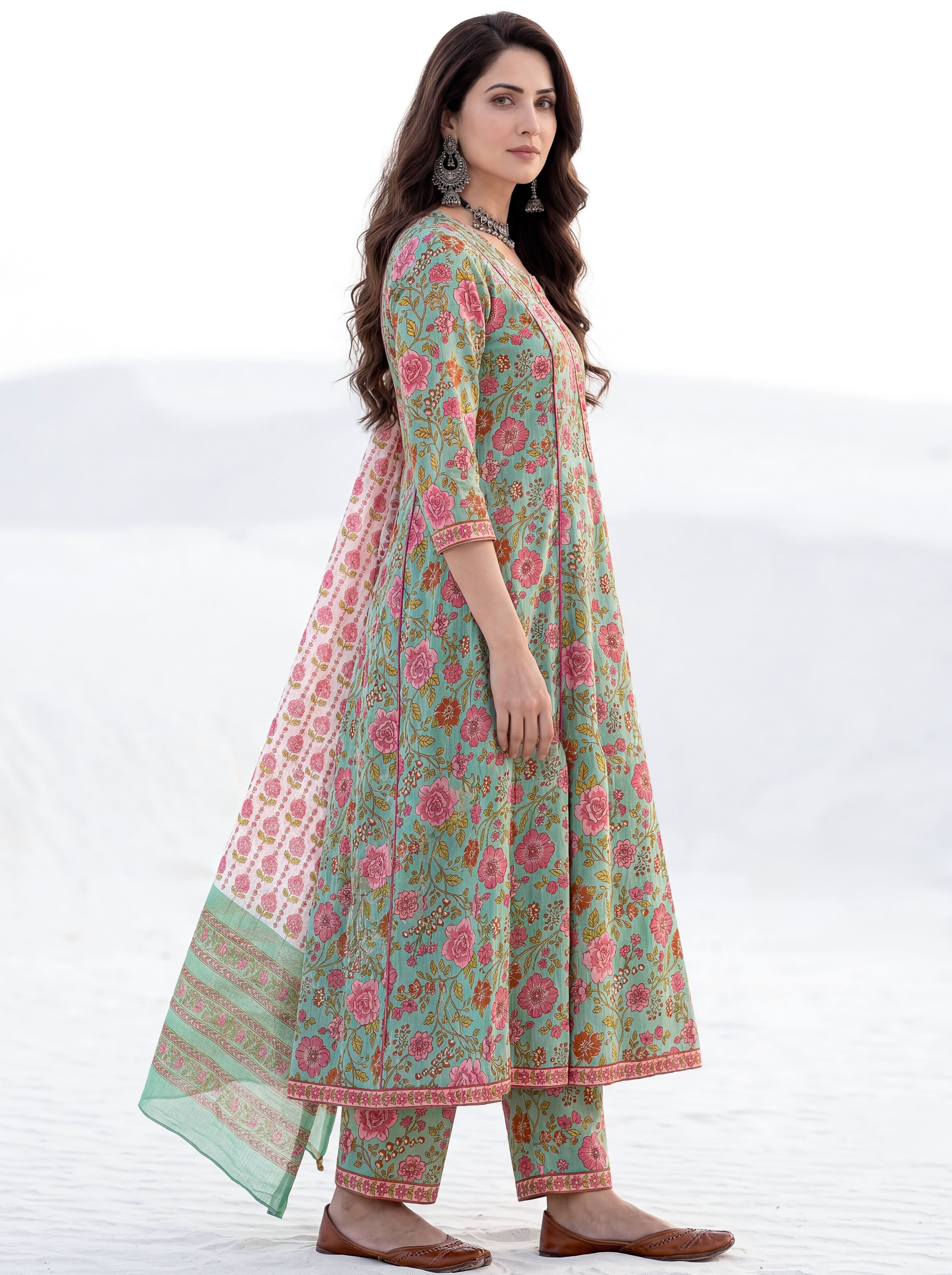 Aina Chetna Set Of Kali Kurta Pants Dupatta