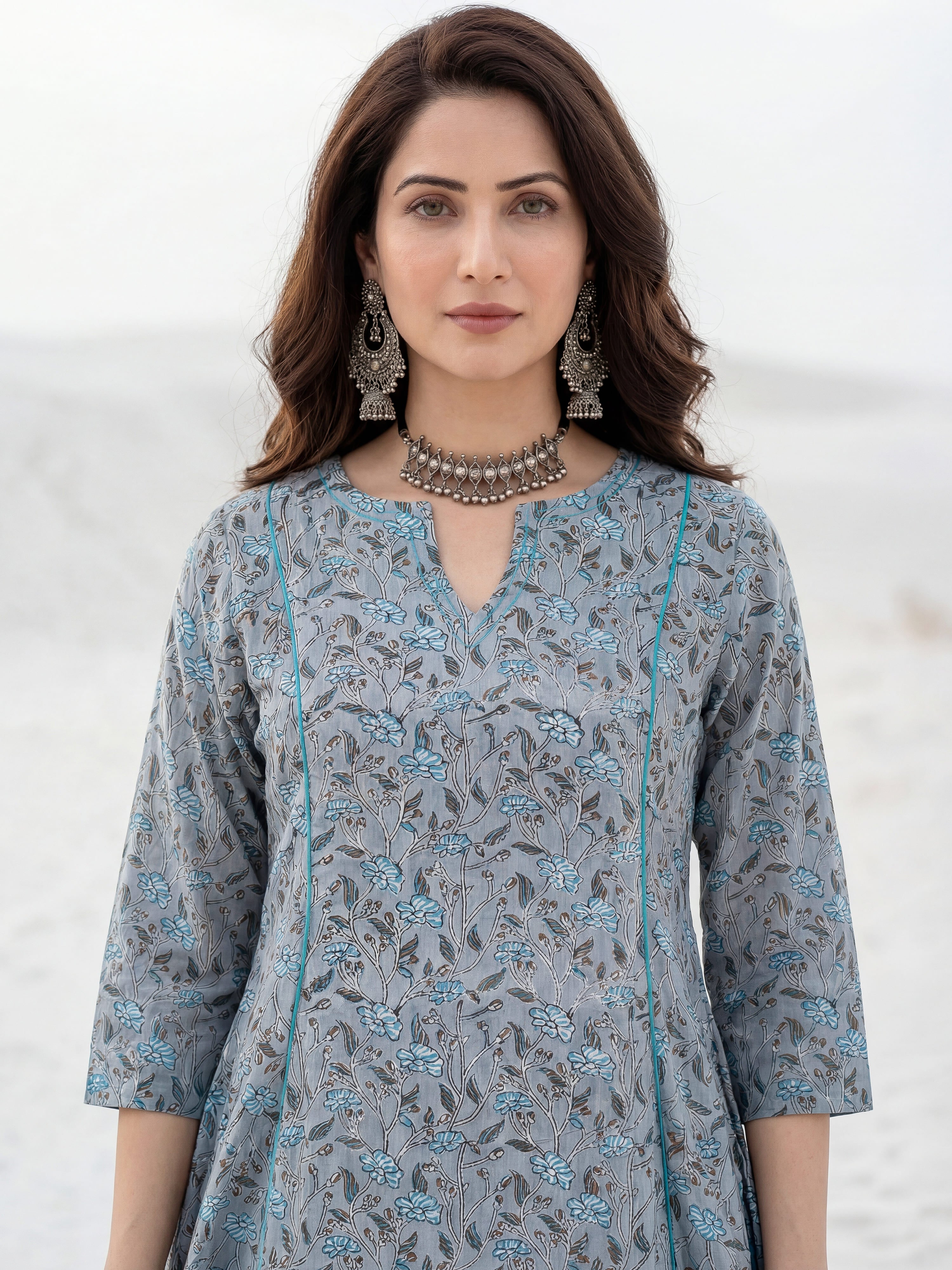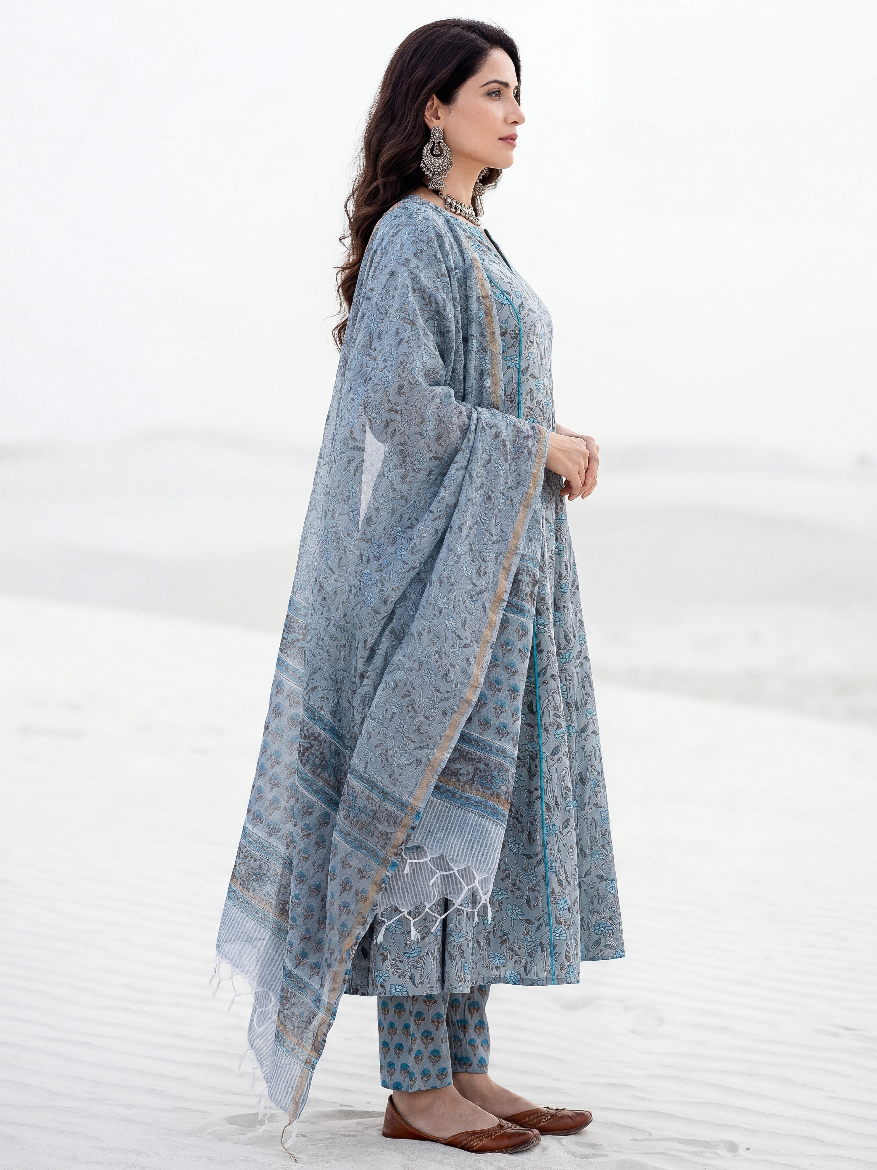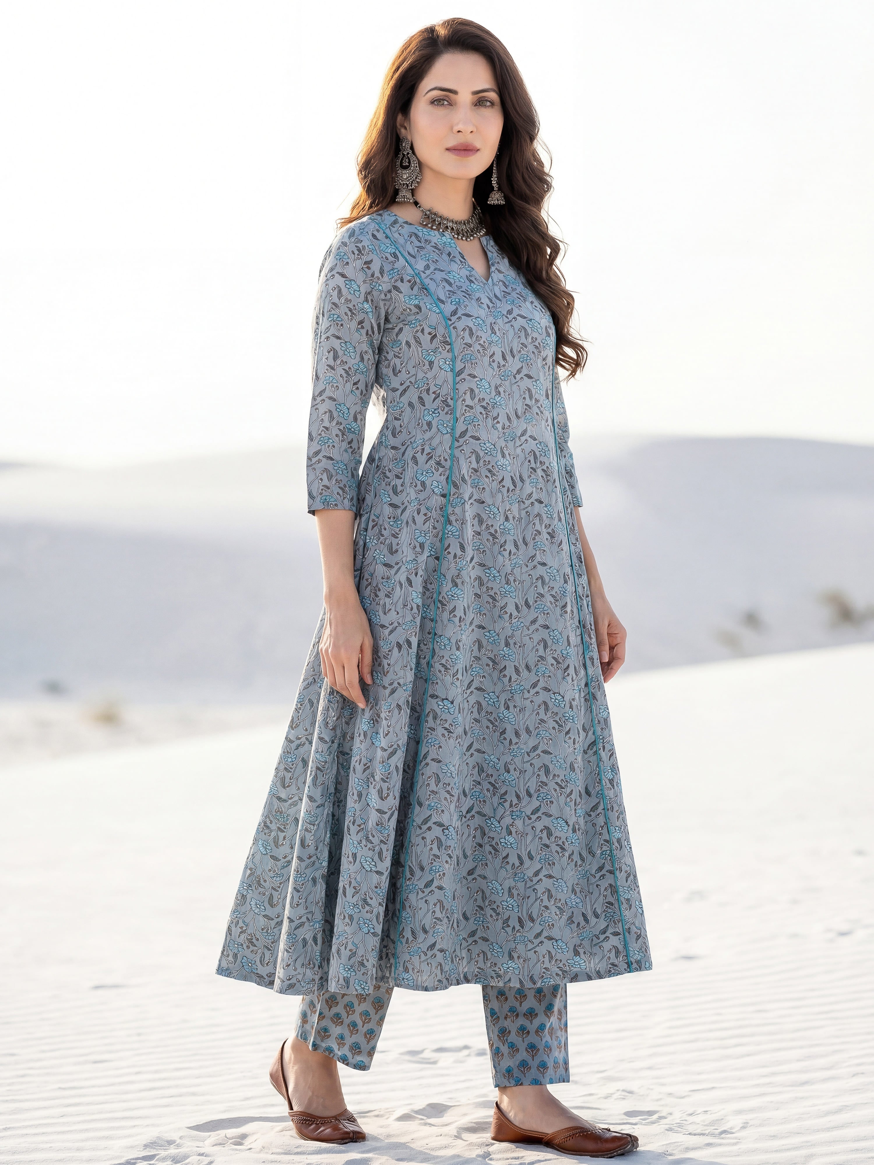 Product: This set contains Hand Block Printed Premium Cotton Kurta, 100% Cotton Pants and Kota Doria Dupatta.