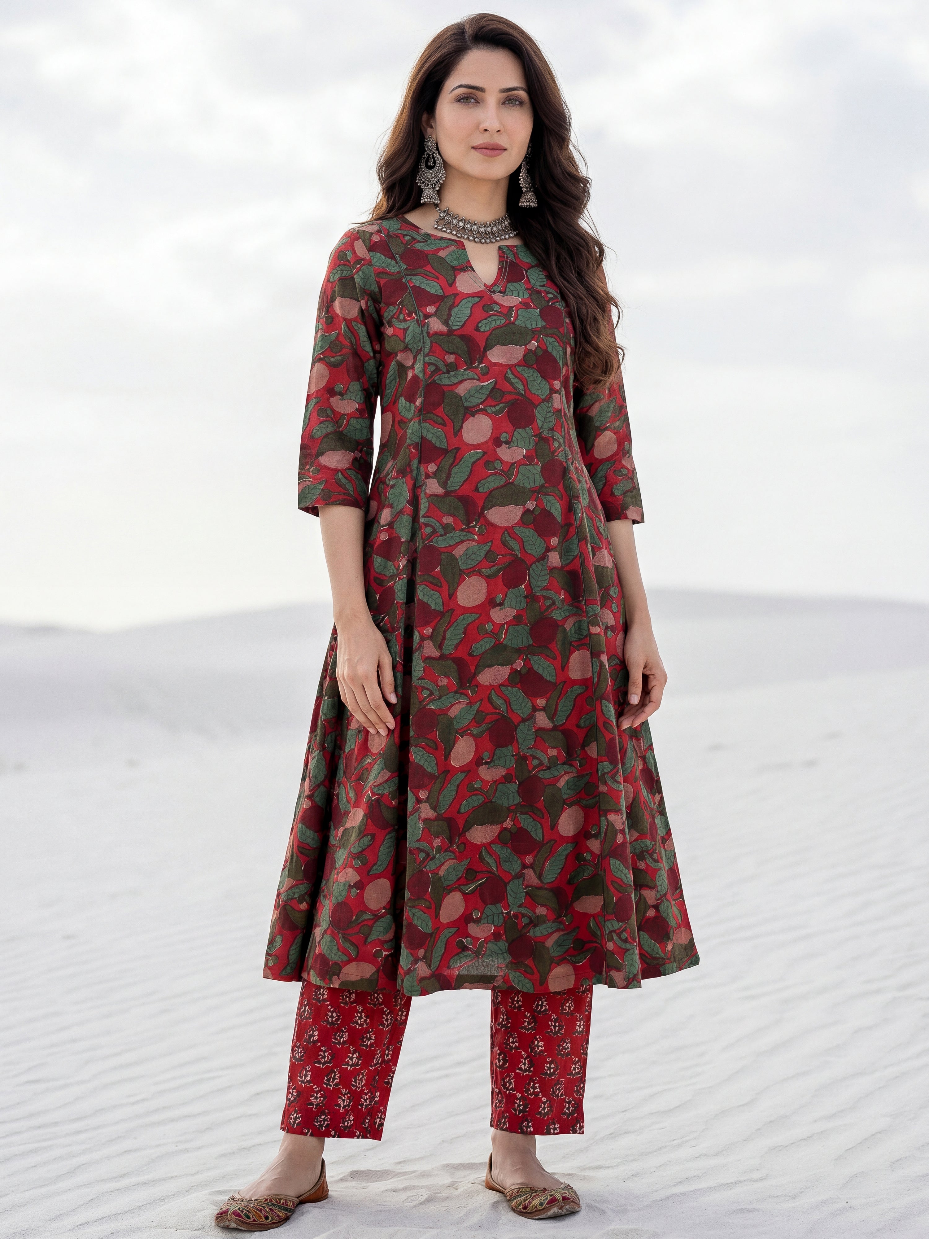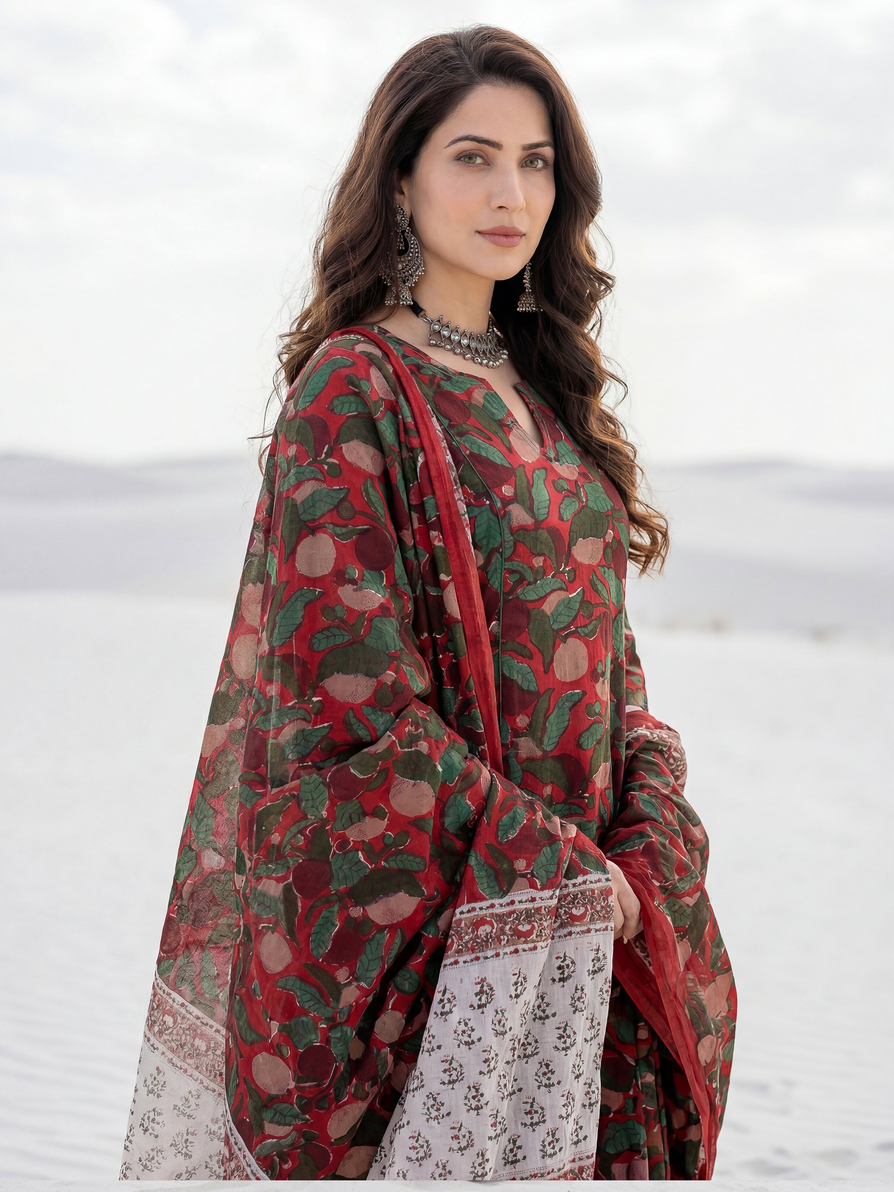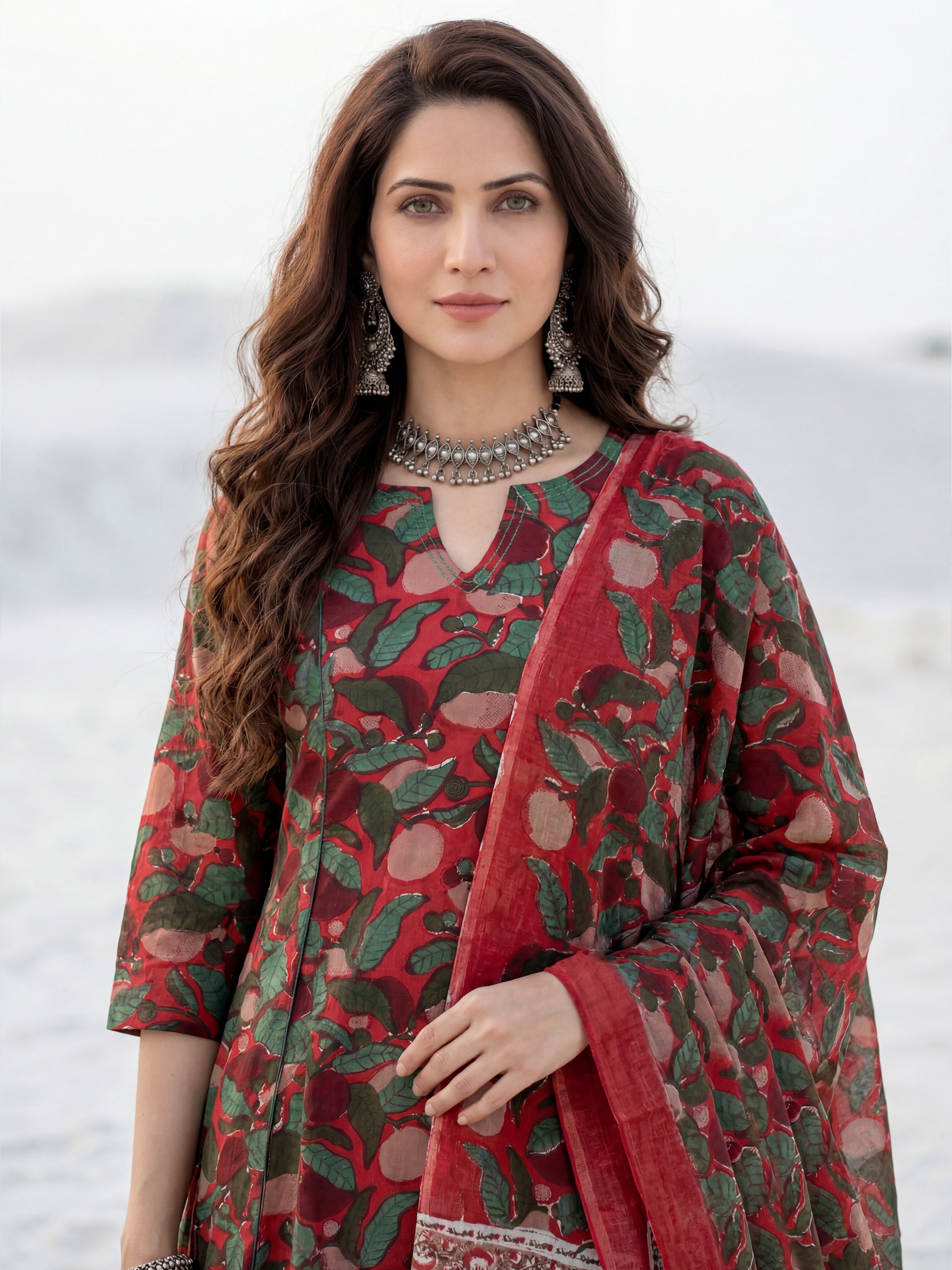 Product: This set contains Hand Block Printed Premium Cotton Kurta, 100% Cotton Pants and Cotton Dupatta.