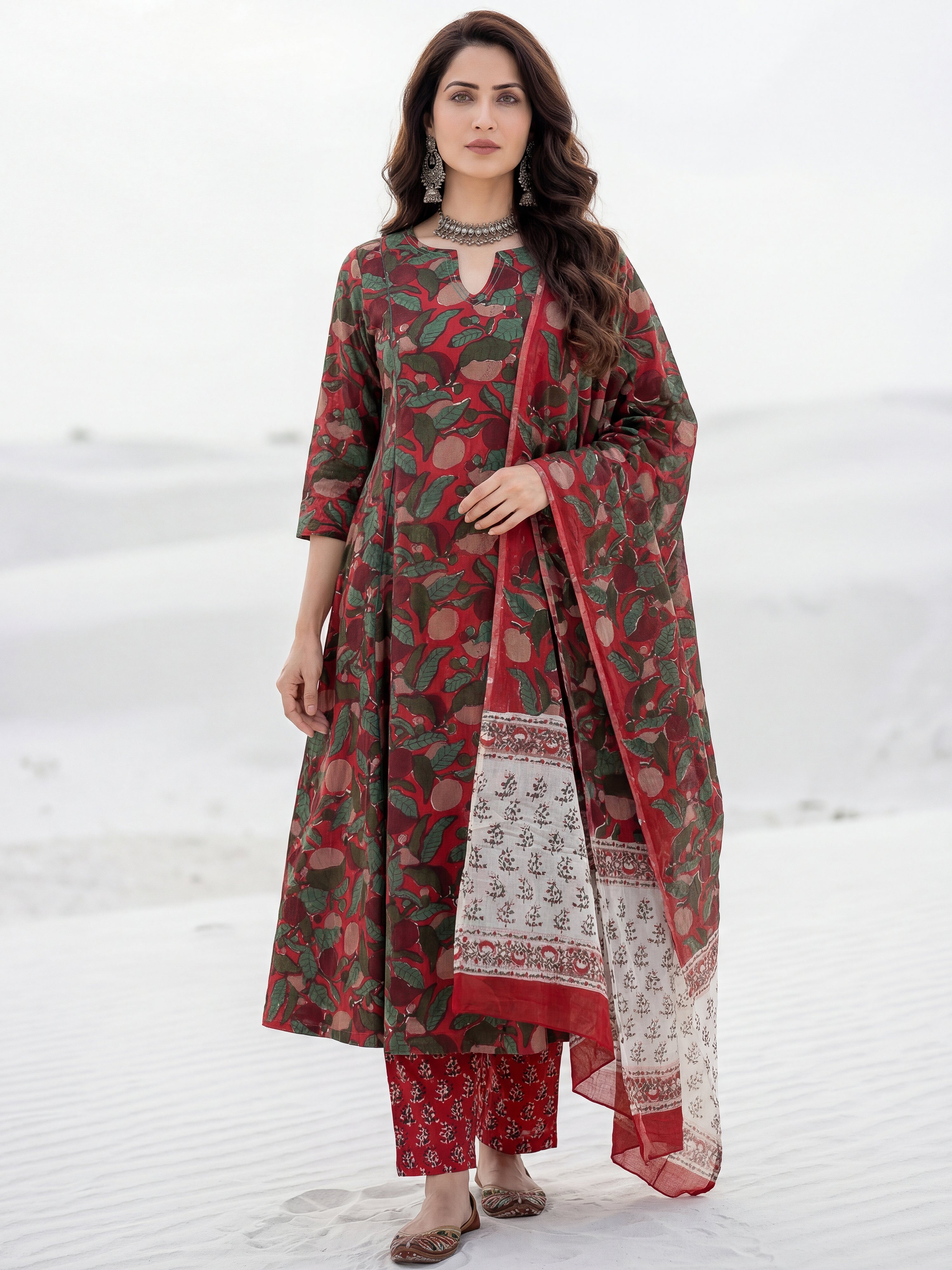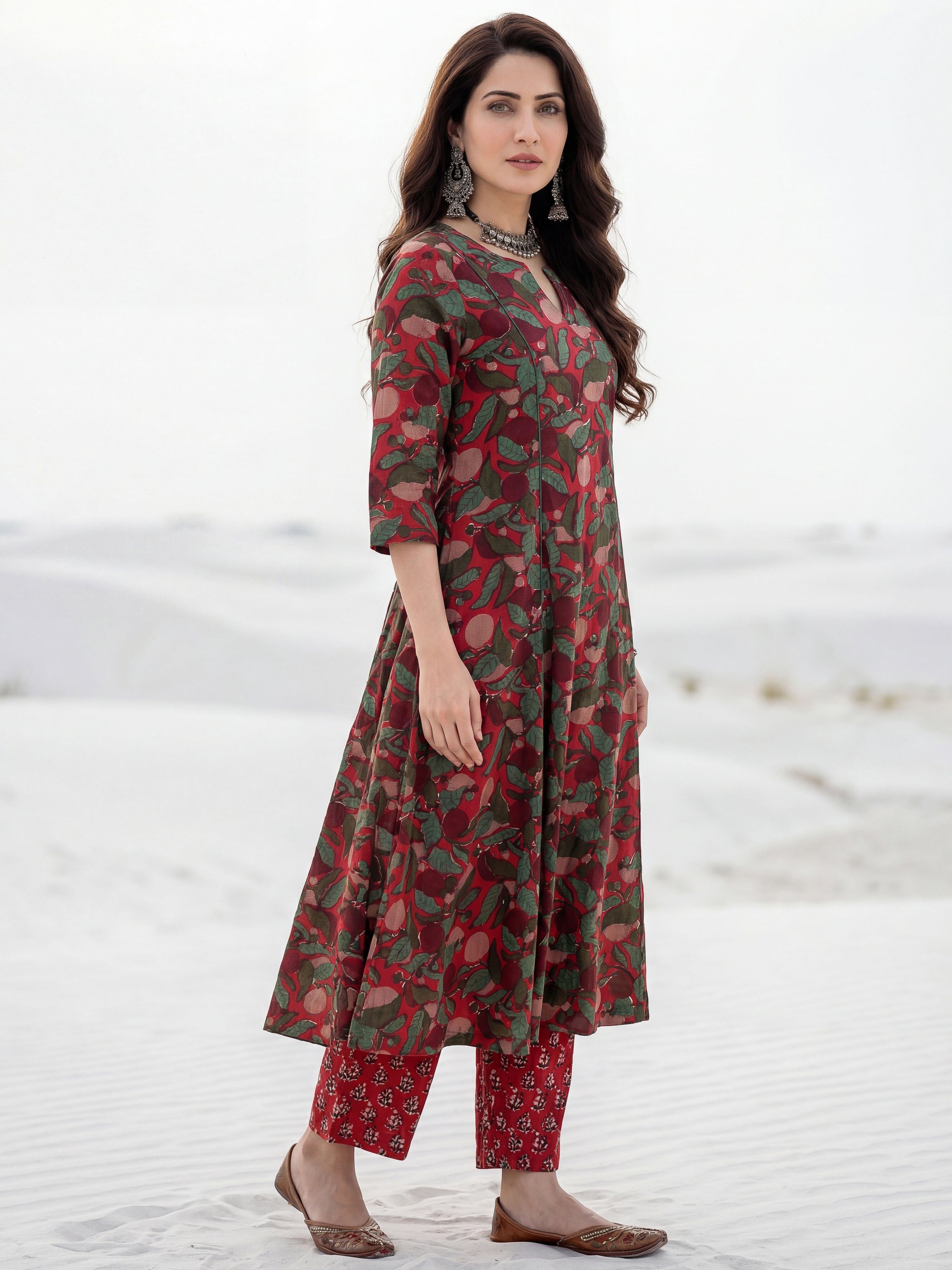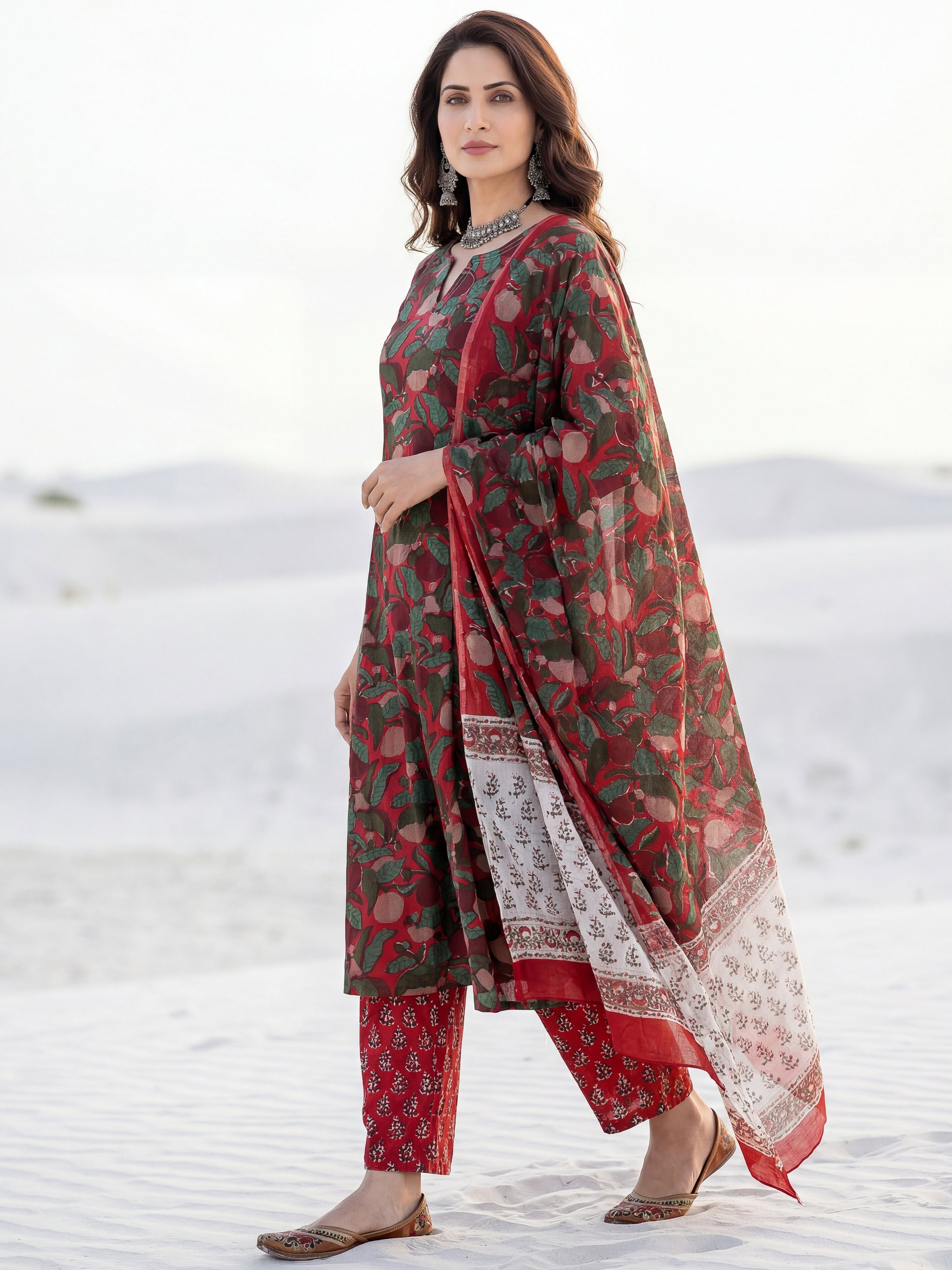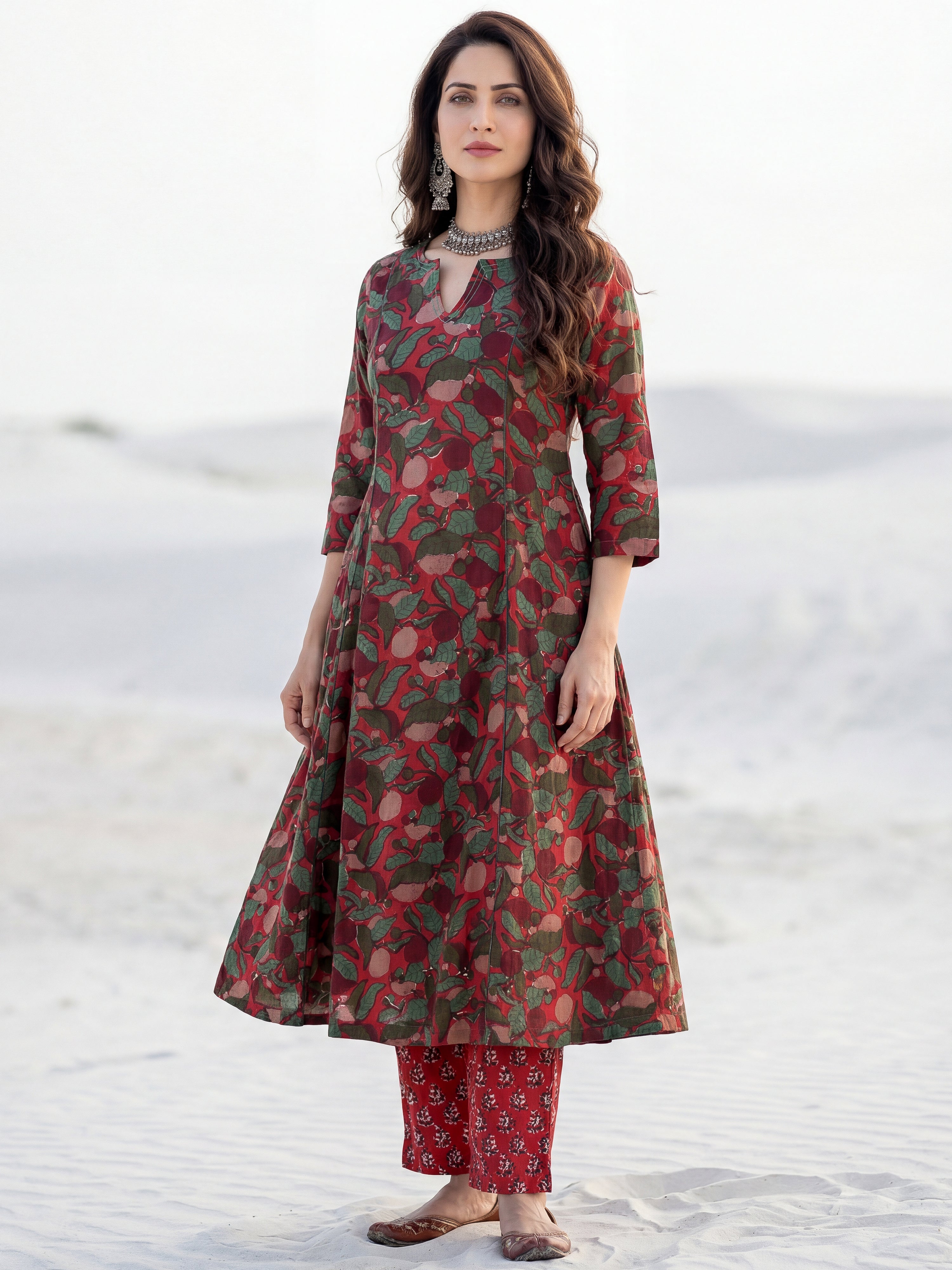 Product: This set contains Hand Block Printed Premium Cotton Kurta, 100% Cotton Pants and Cotton Dupatta.